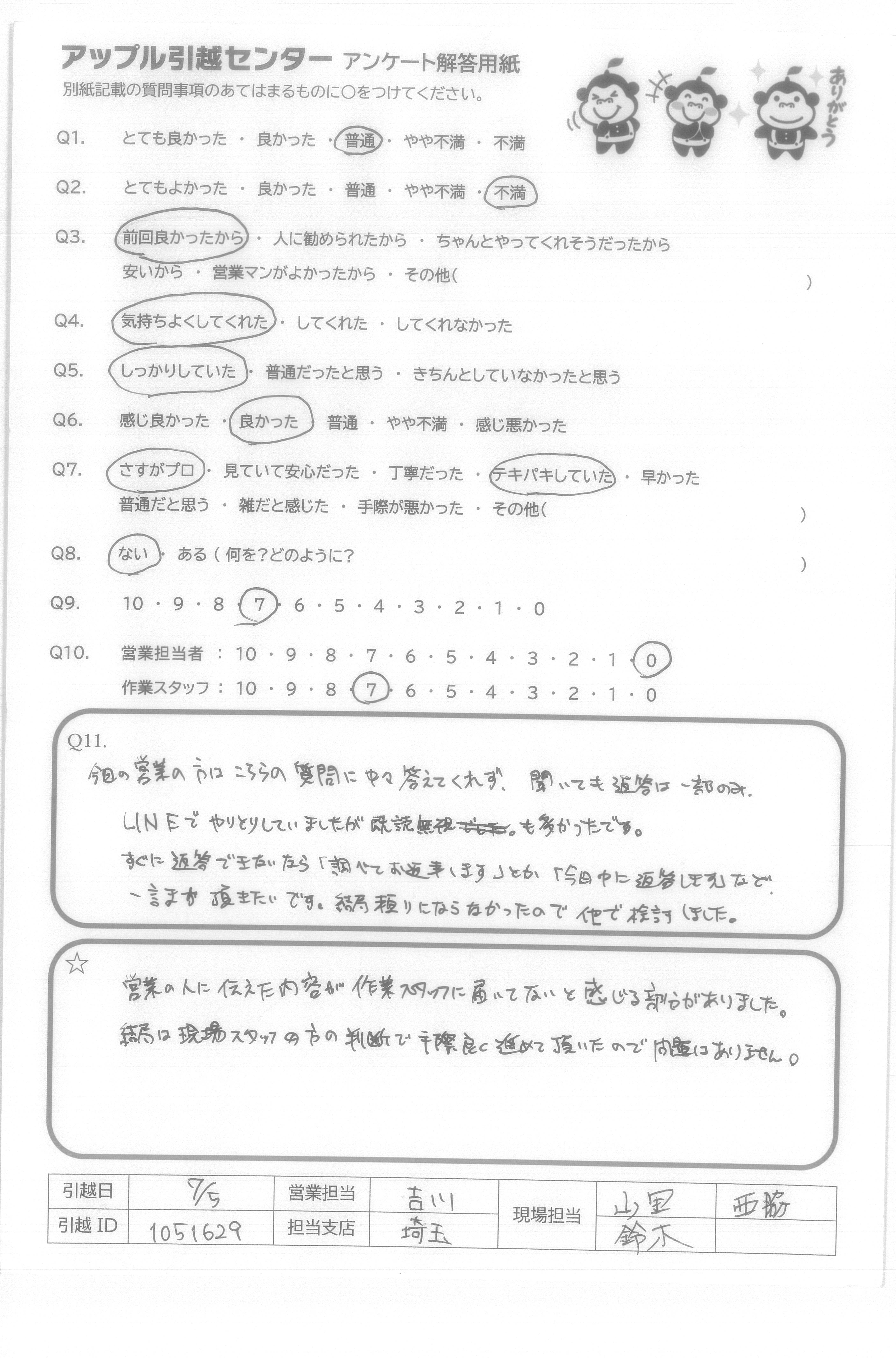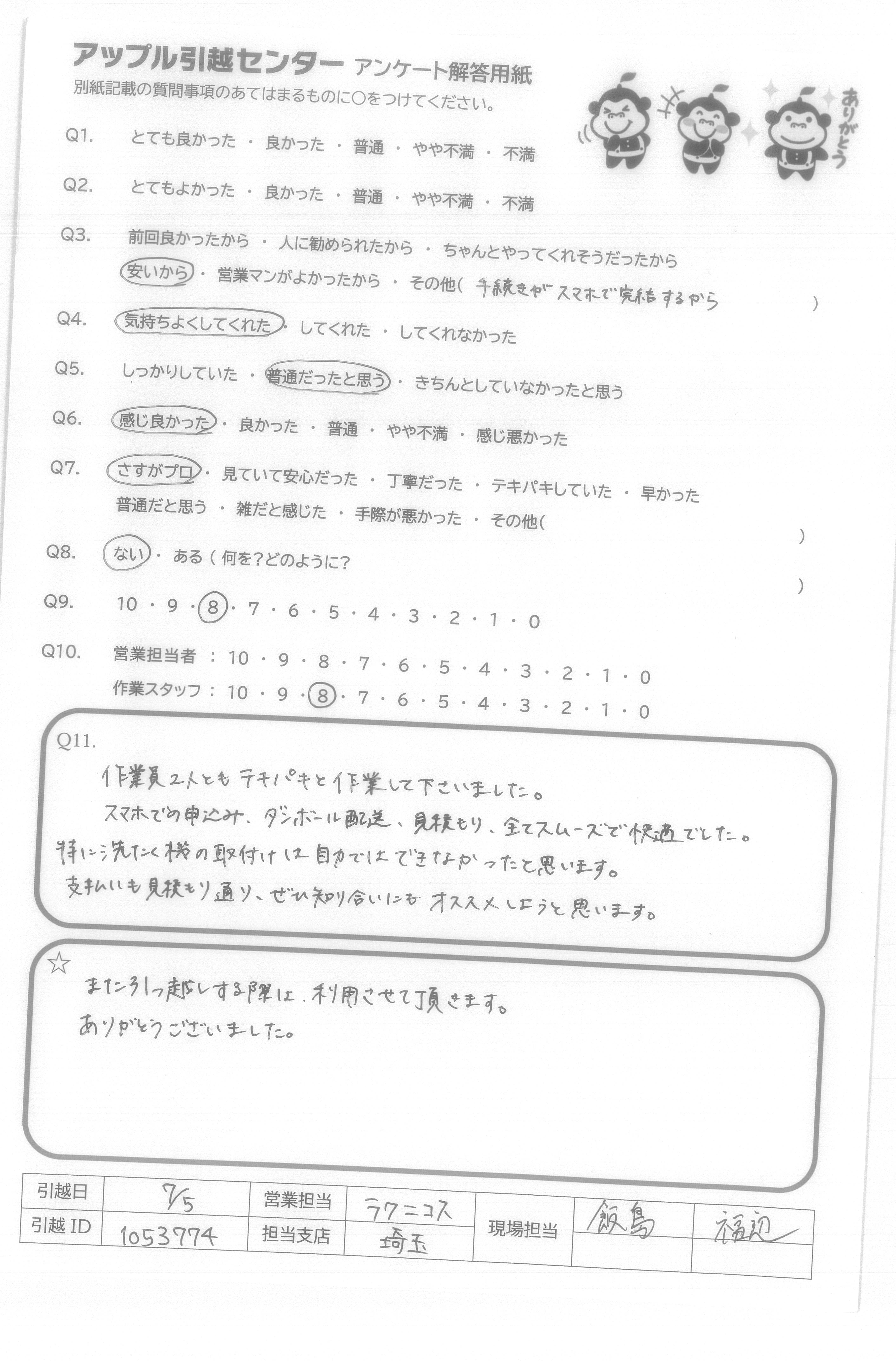 引越し日:2021年07月05日 エリア:埼玉県さいたま市浦和区