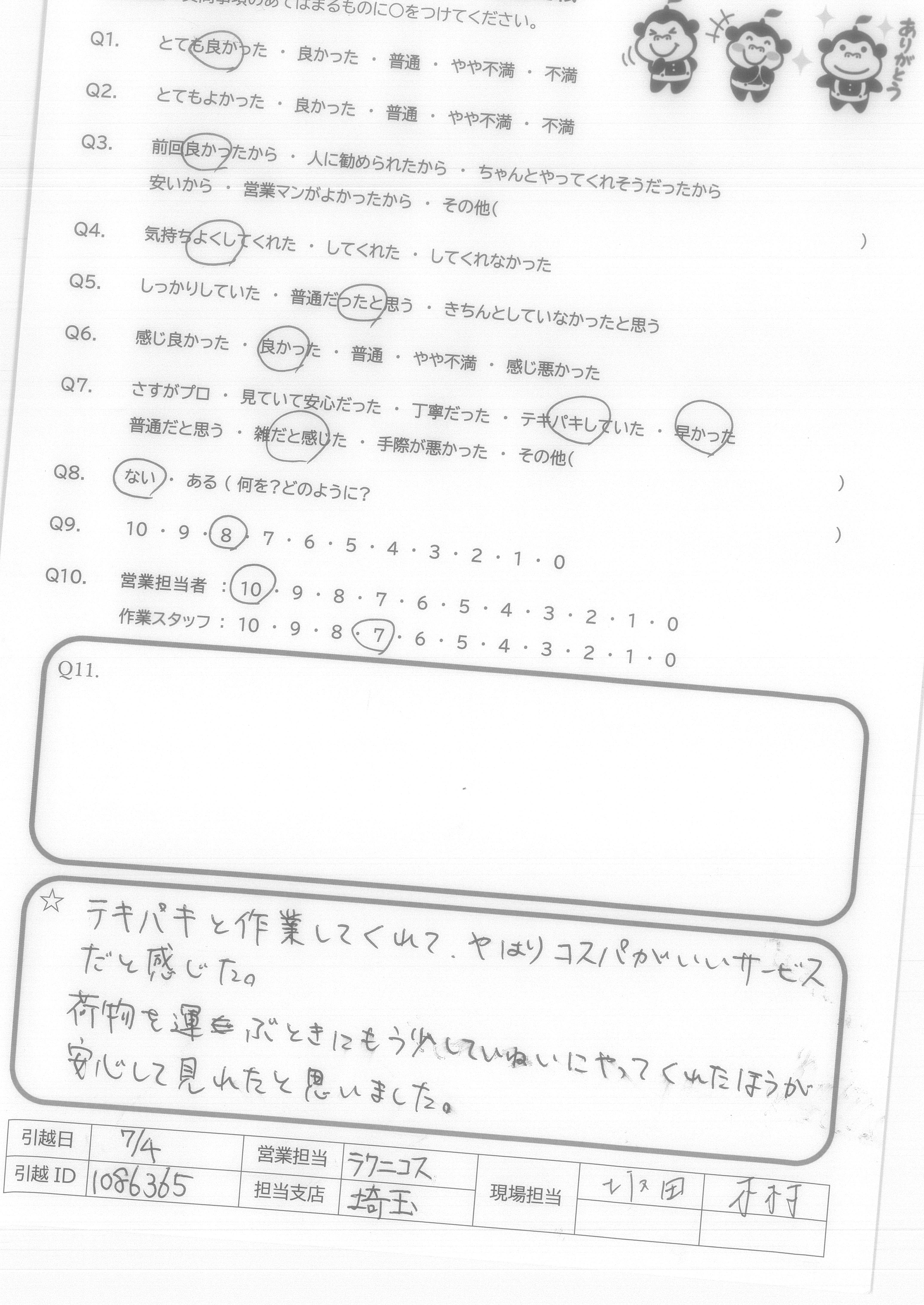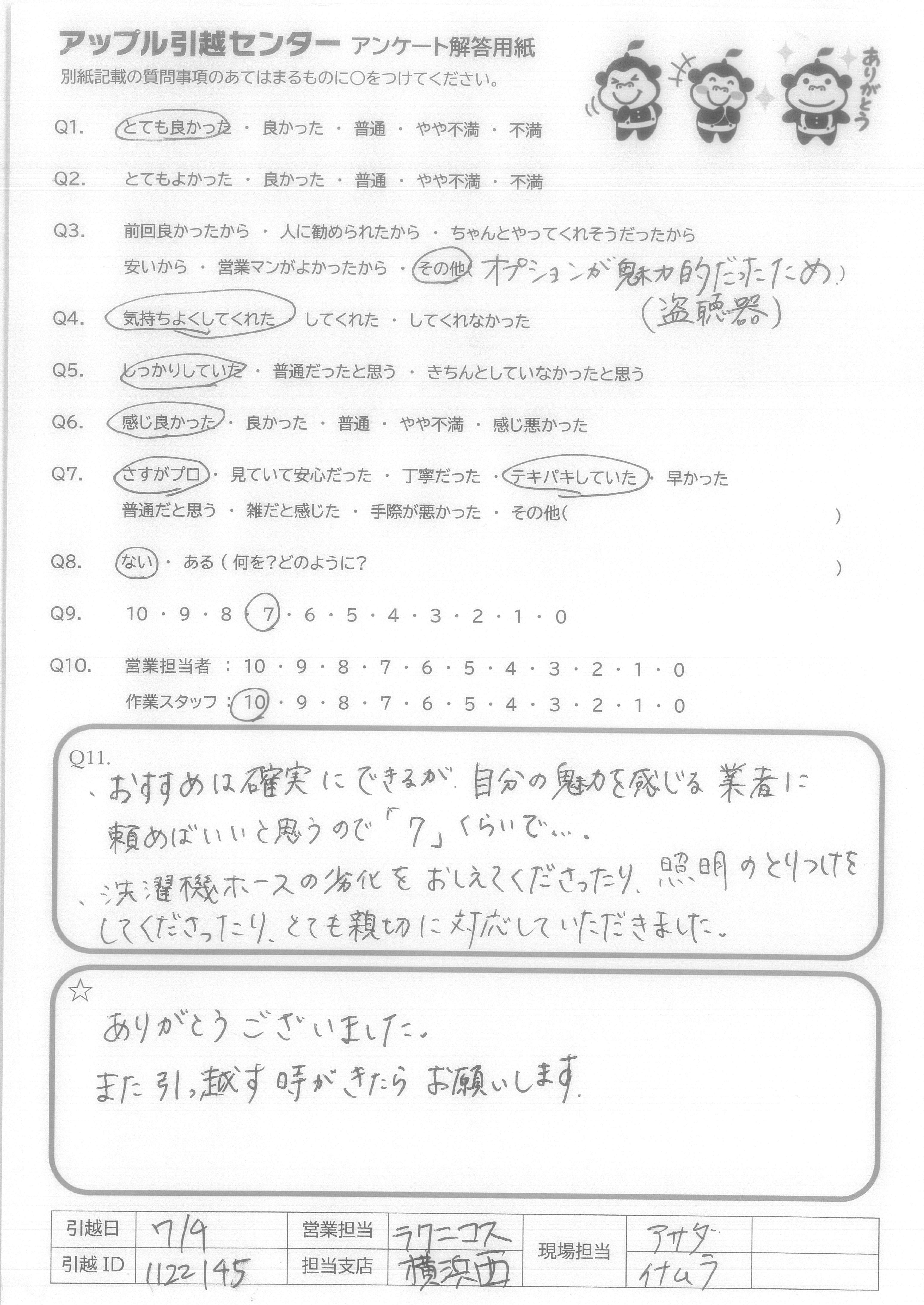 A.また引っ越しする際は、利用させて頂きます。ありがとうございました。