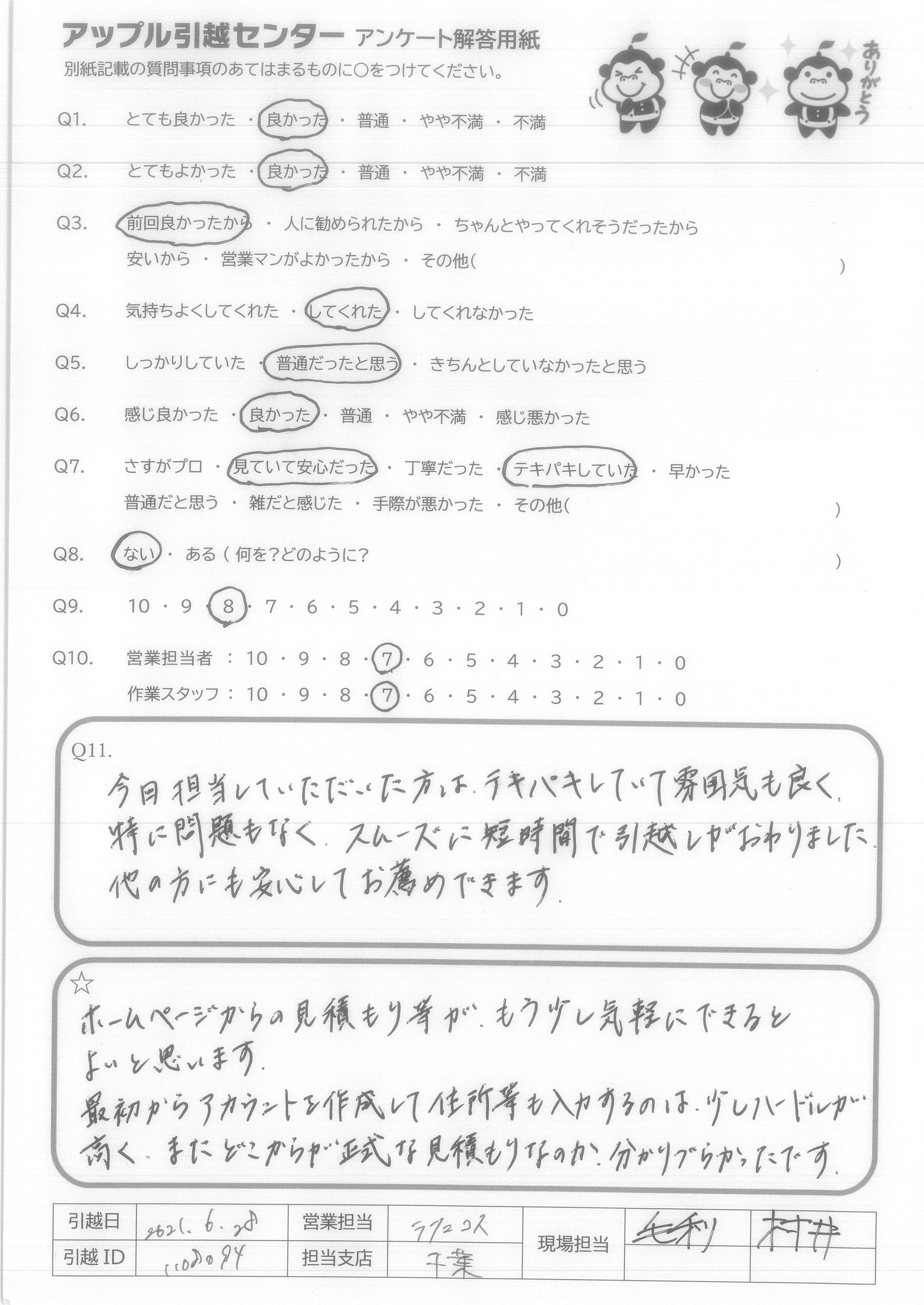 引越し日:2021年06月28日 エリア:千葉県船橋市