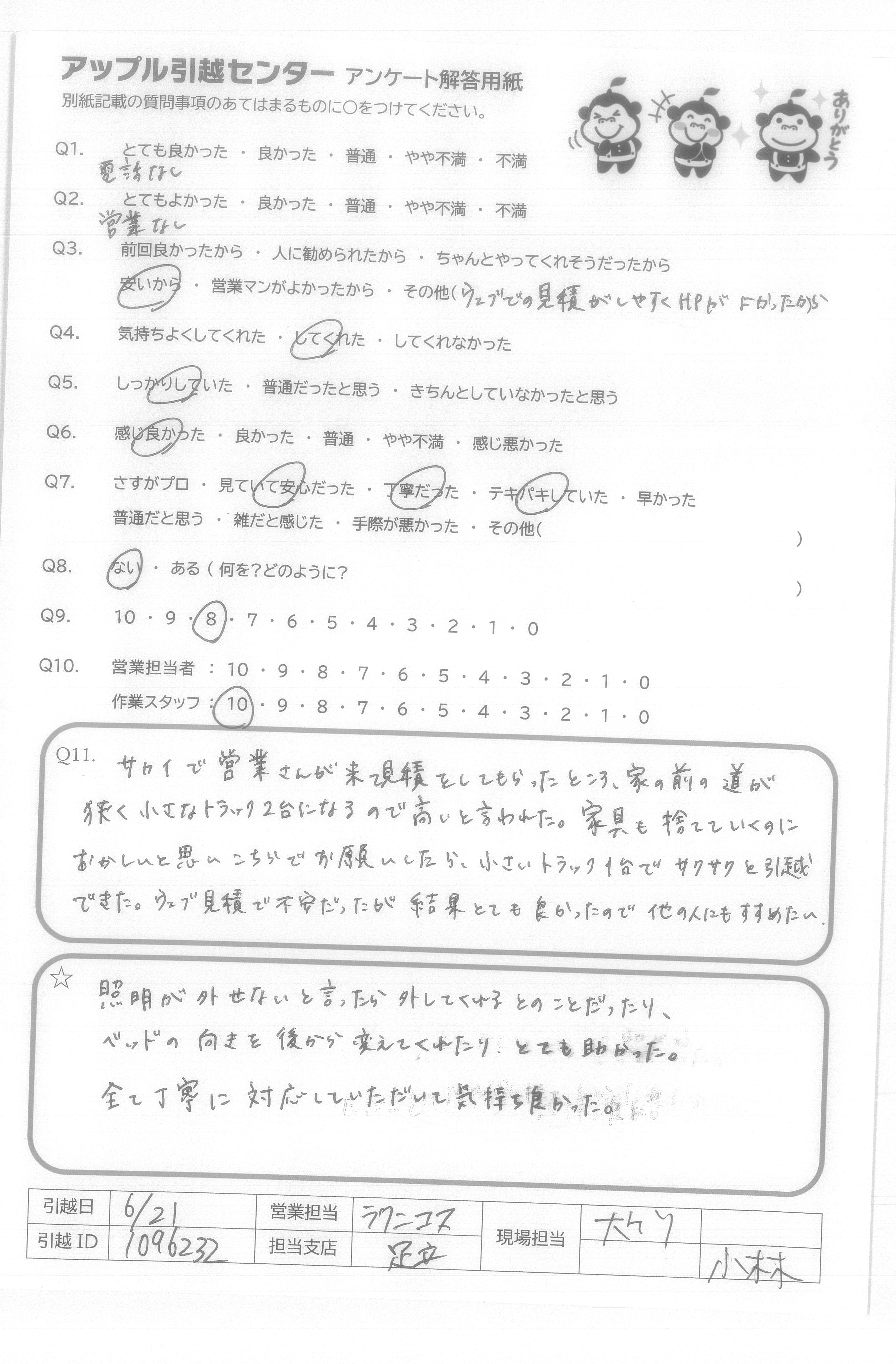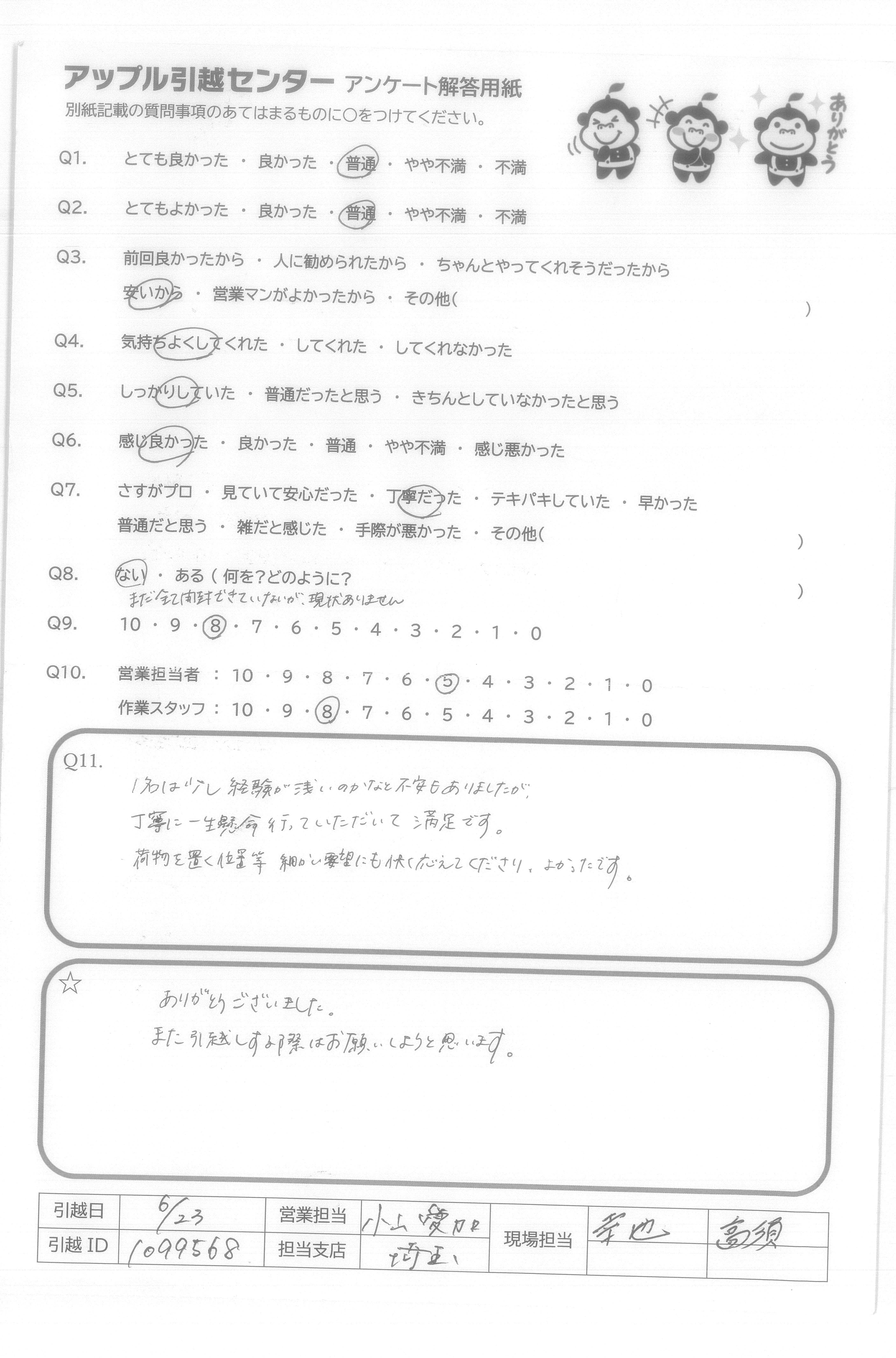 引越し日:2021年06月21日 エリア:埼玉県川越市