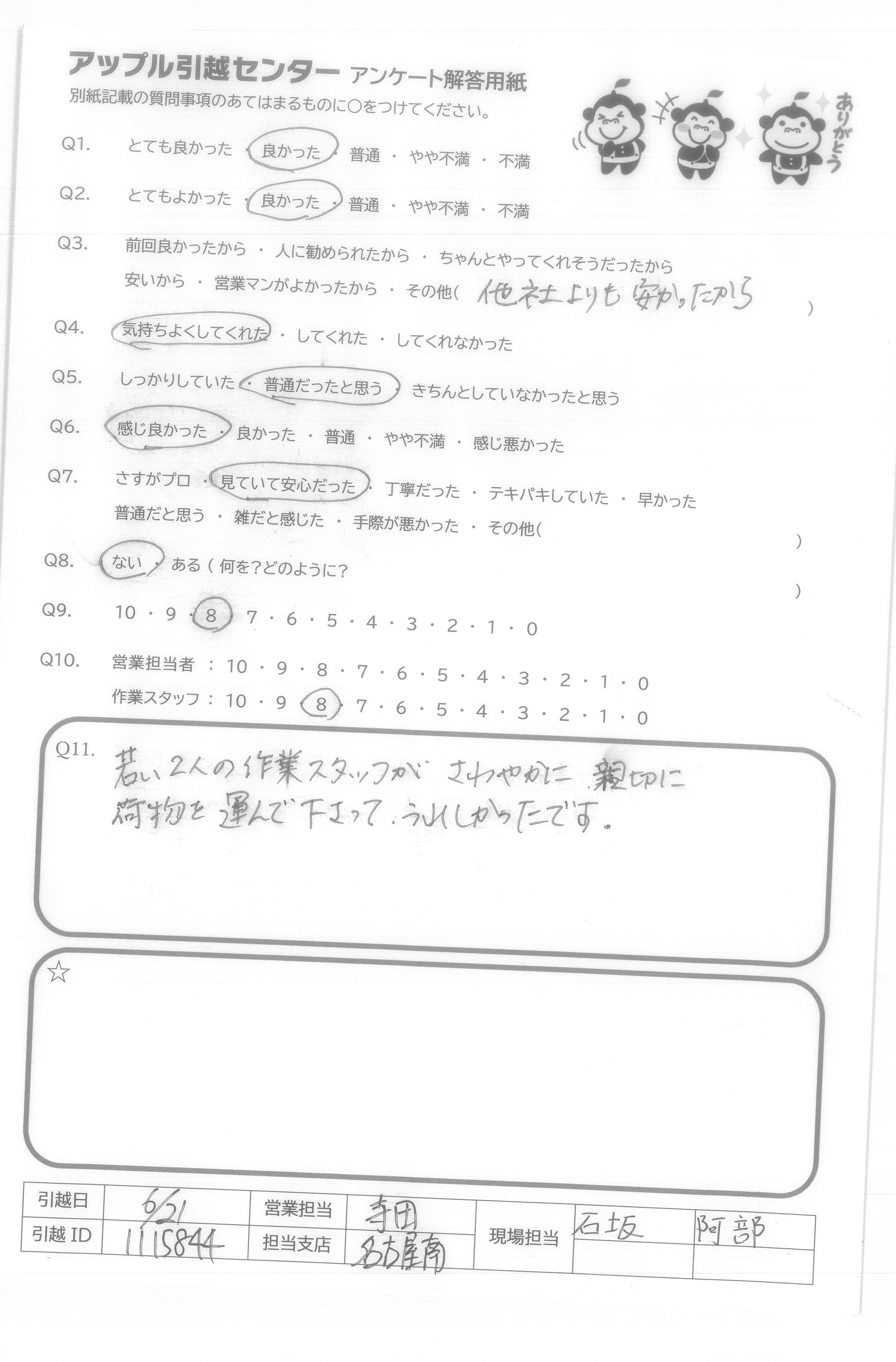 引越し日:2021年06月22日 エリア:大阪府大阪市平野区