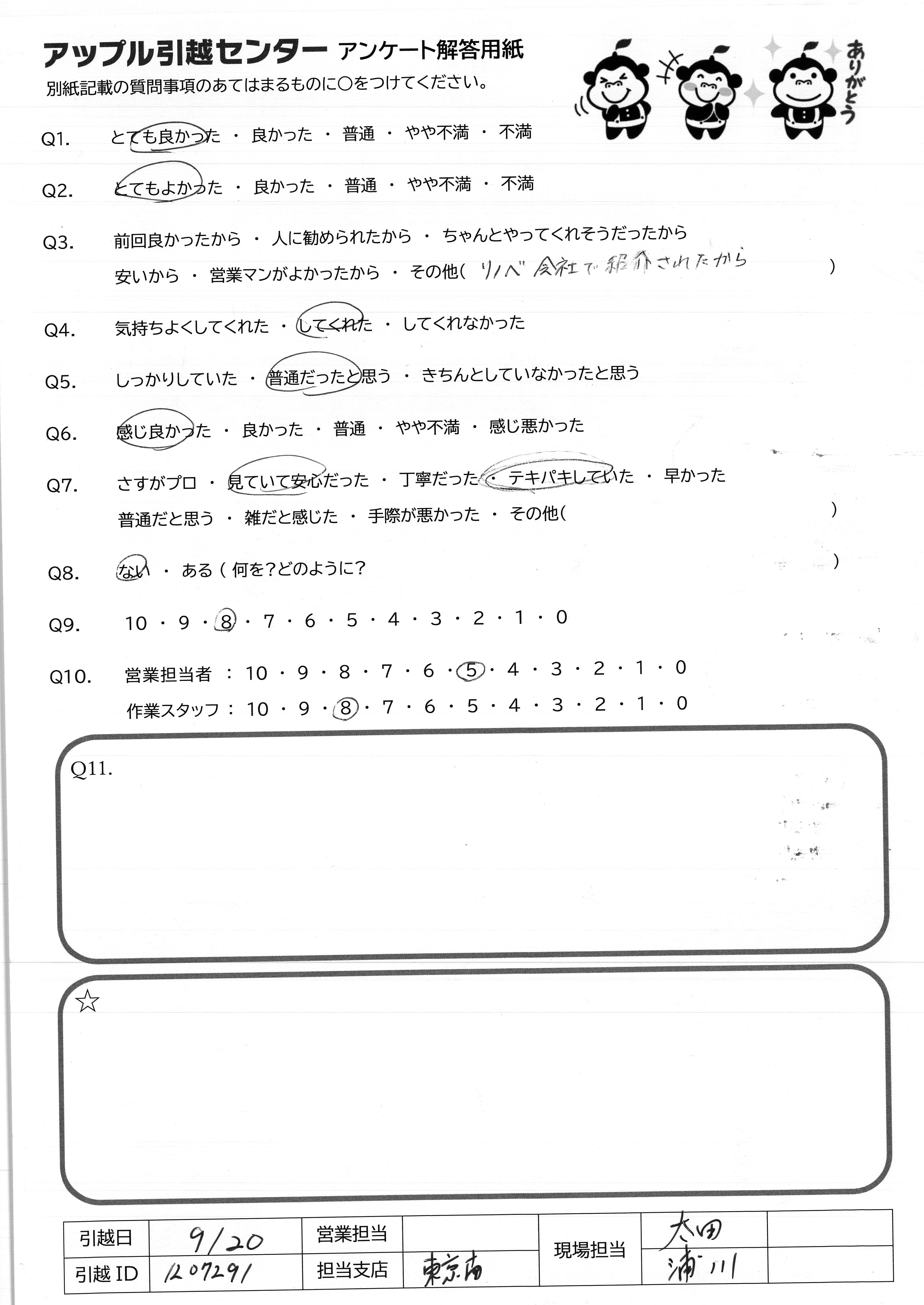 引越し日:2021年09月20日 エリア:東京都品川区
