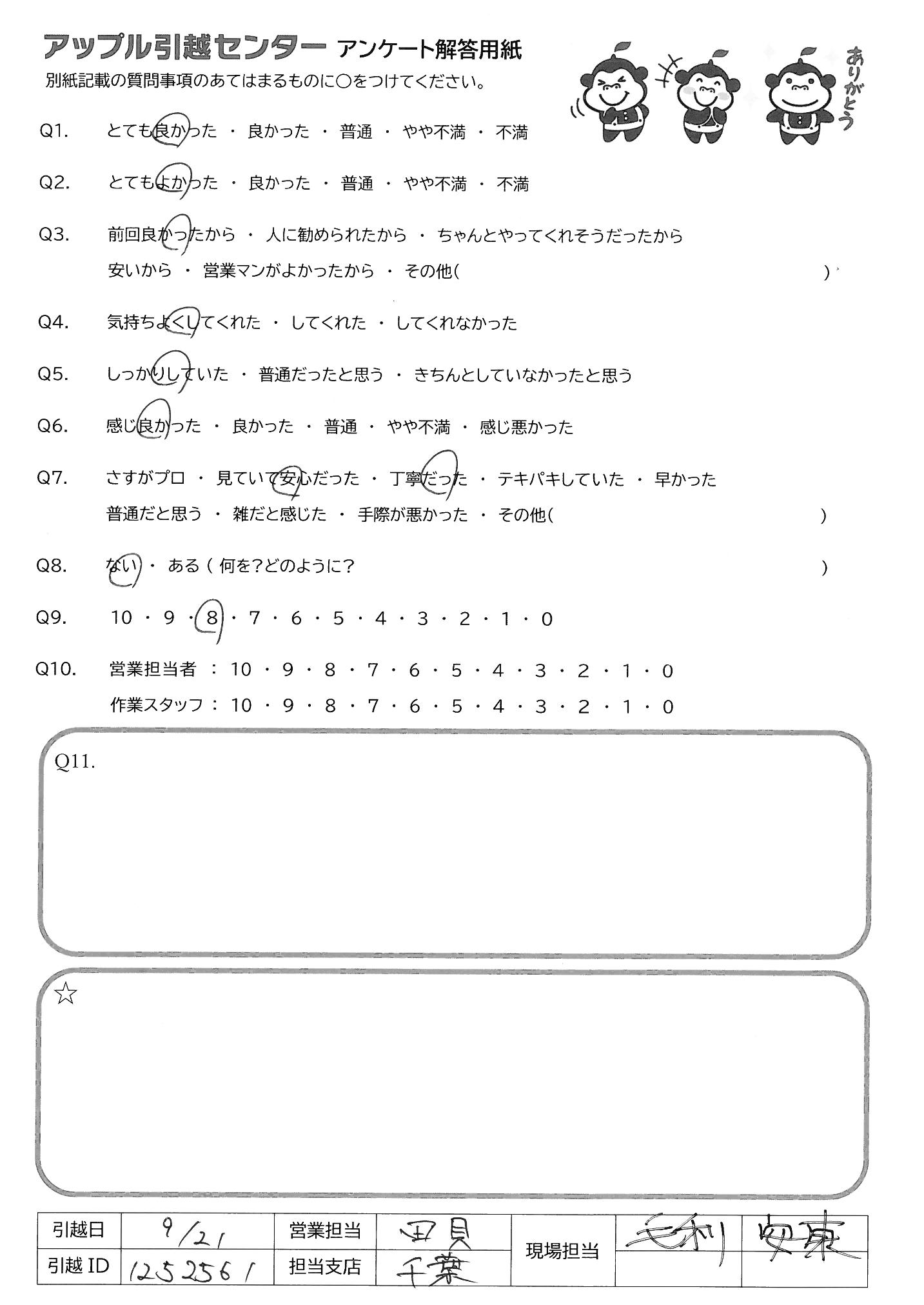 引越し日:2021年09月21日 エリア:千葉県千葉市中央区