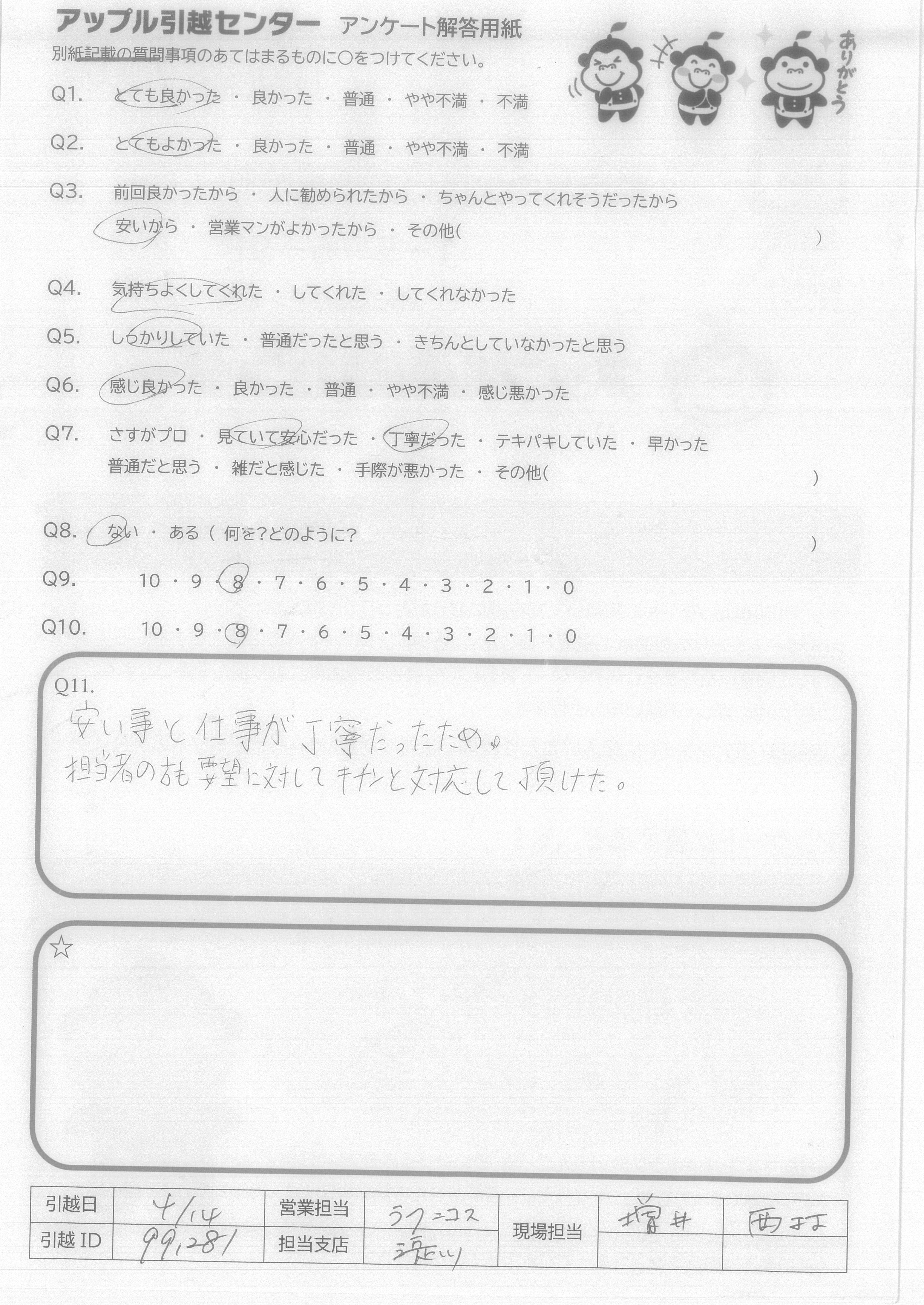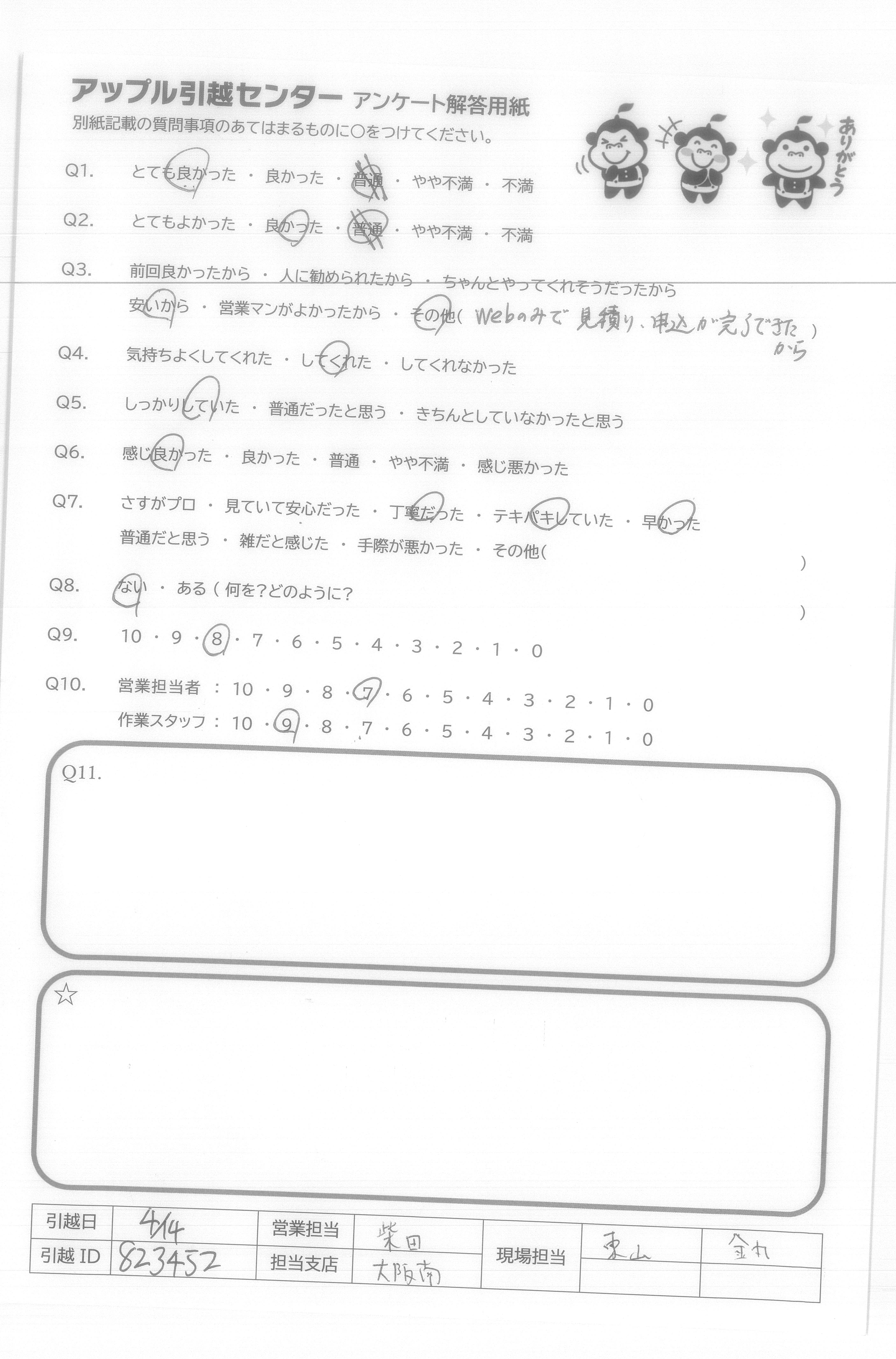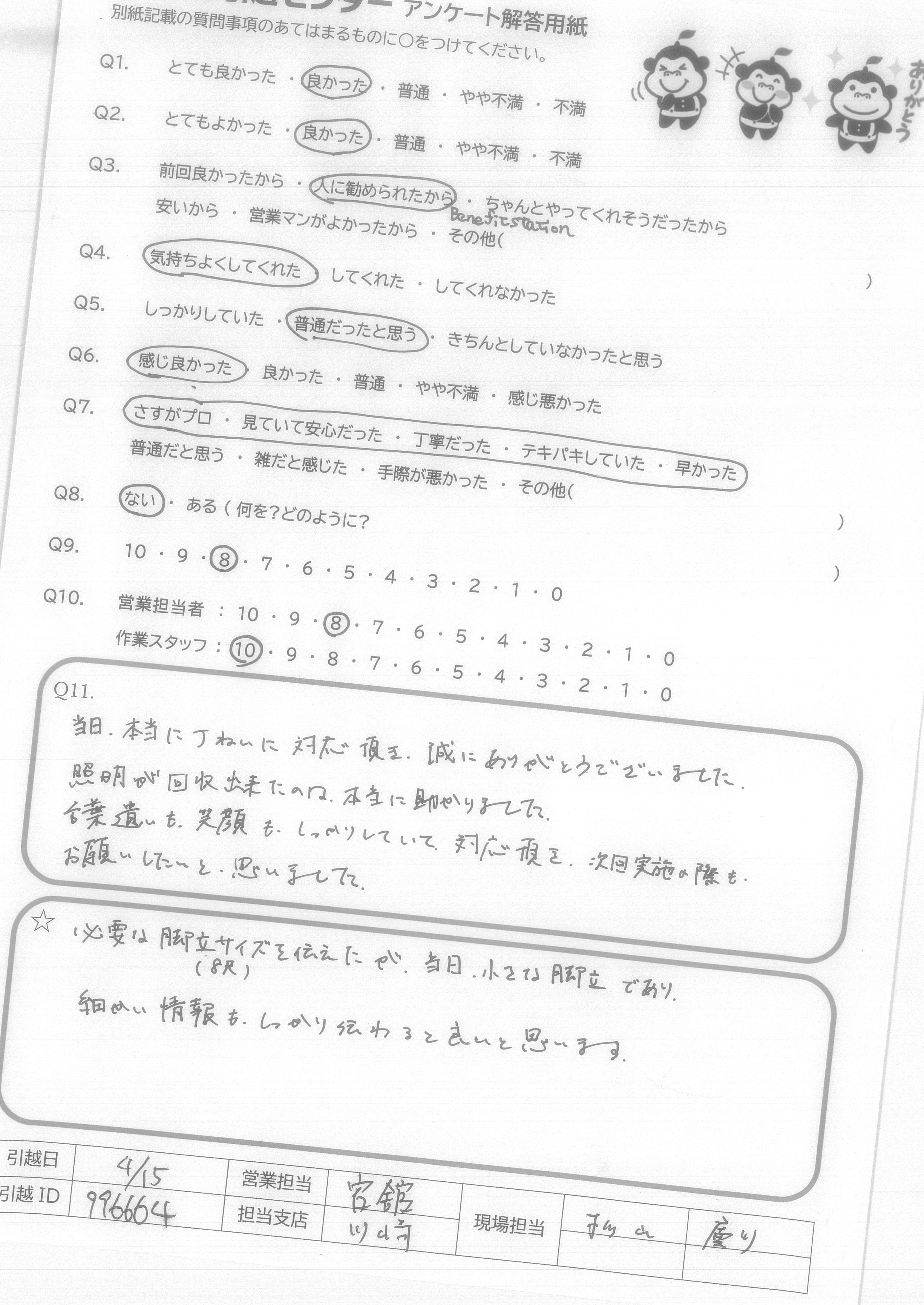 A.搬出搬入も素早く終わり、助かりました。ありがとございます。