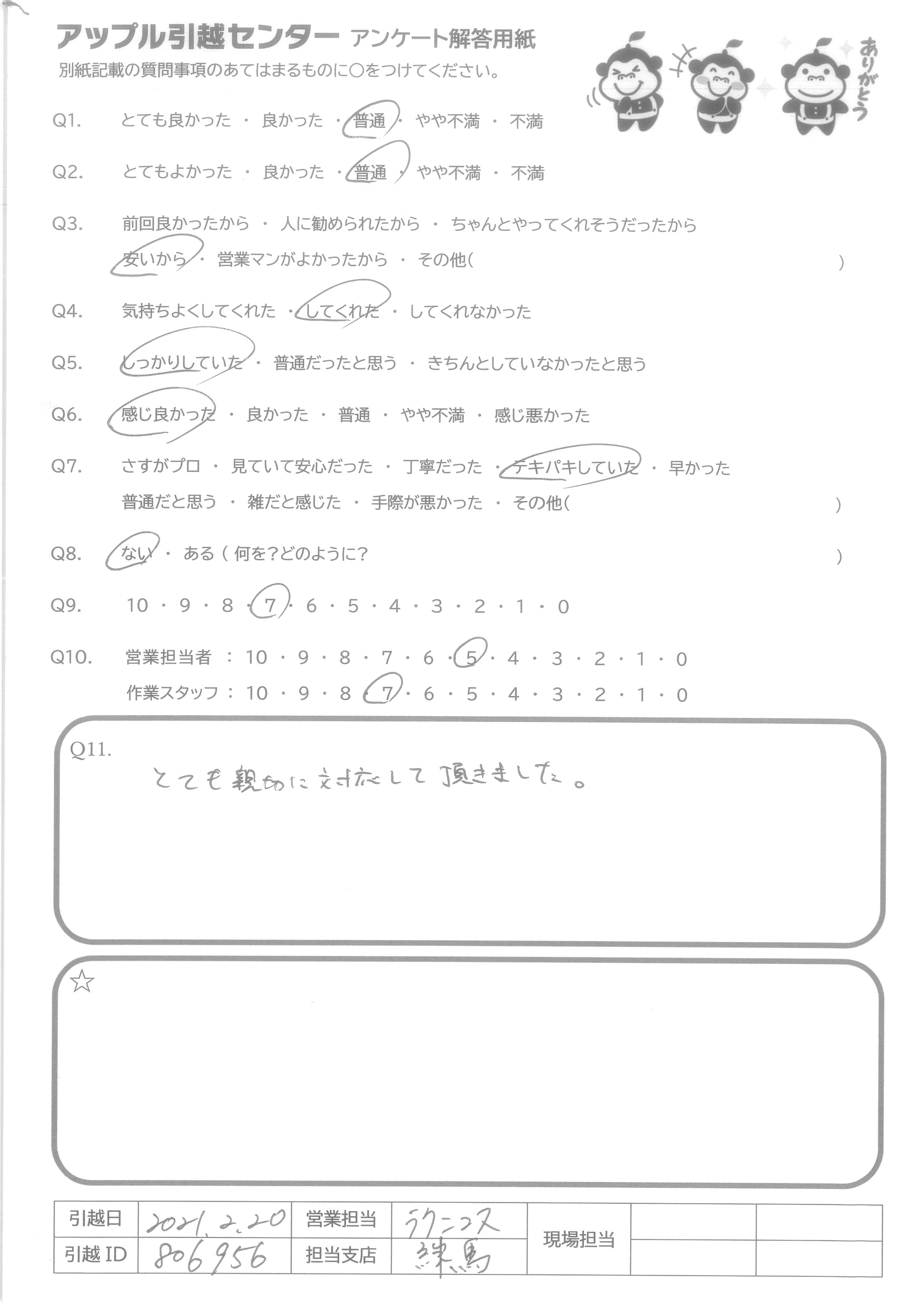 A.ありがとうございました。また引っ越しの機会があればお願いします。 りんごり君かわいくて、梱包中いやされました