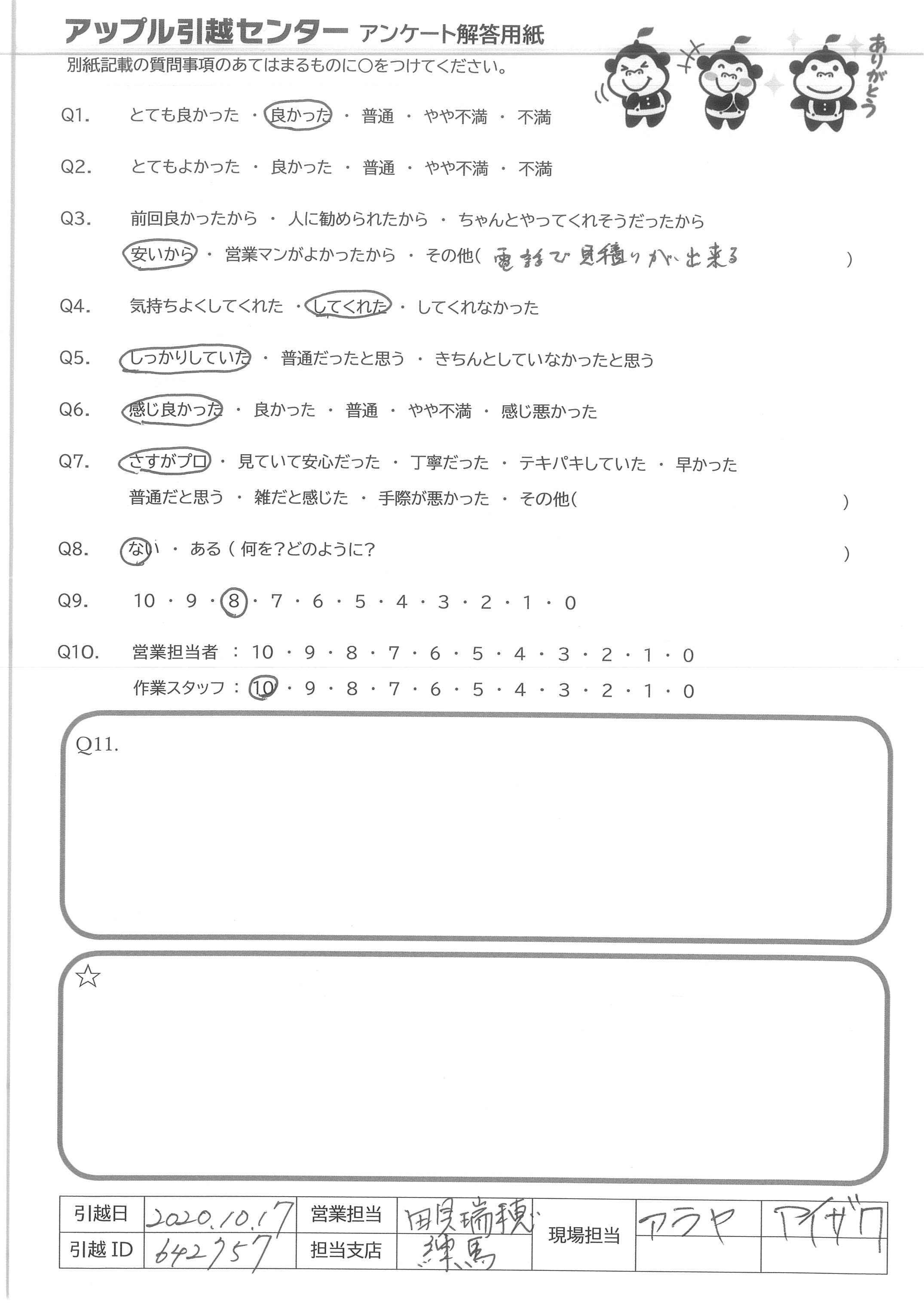 引越し日:2020年10月17日 エリア:愛知県清須市