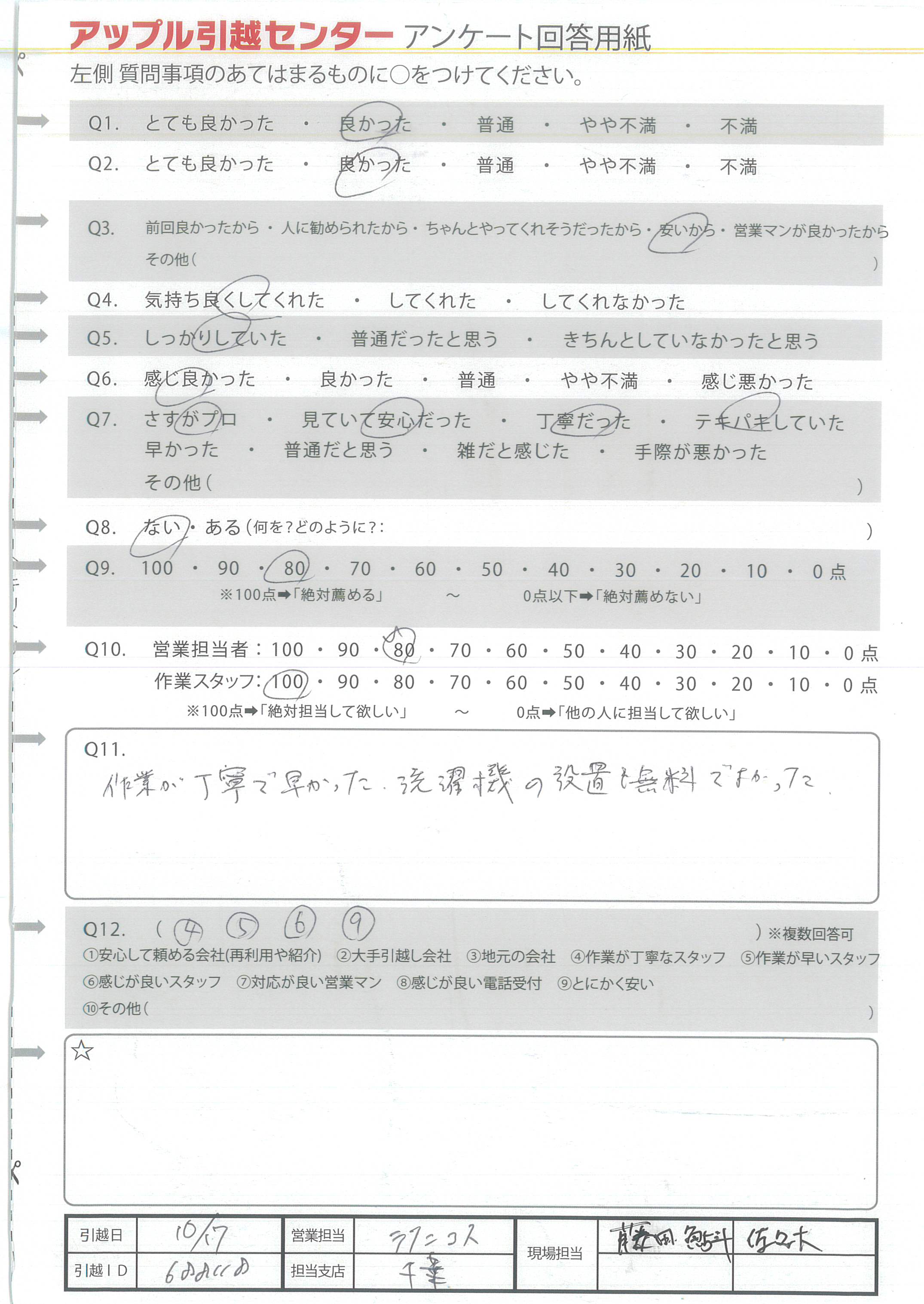 引越し日:2020年10月17日 エリア:千葉県船橋市