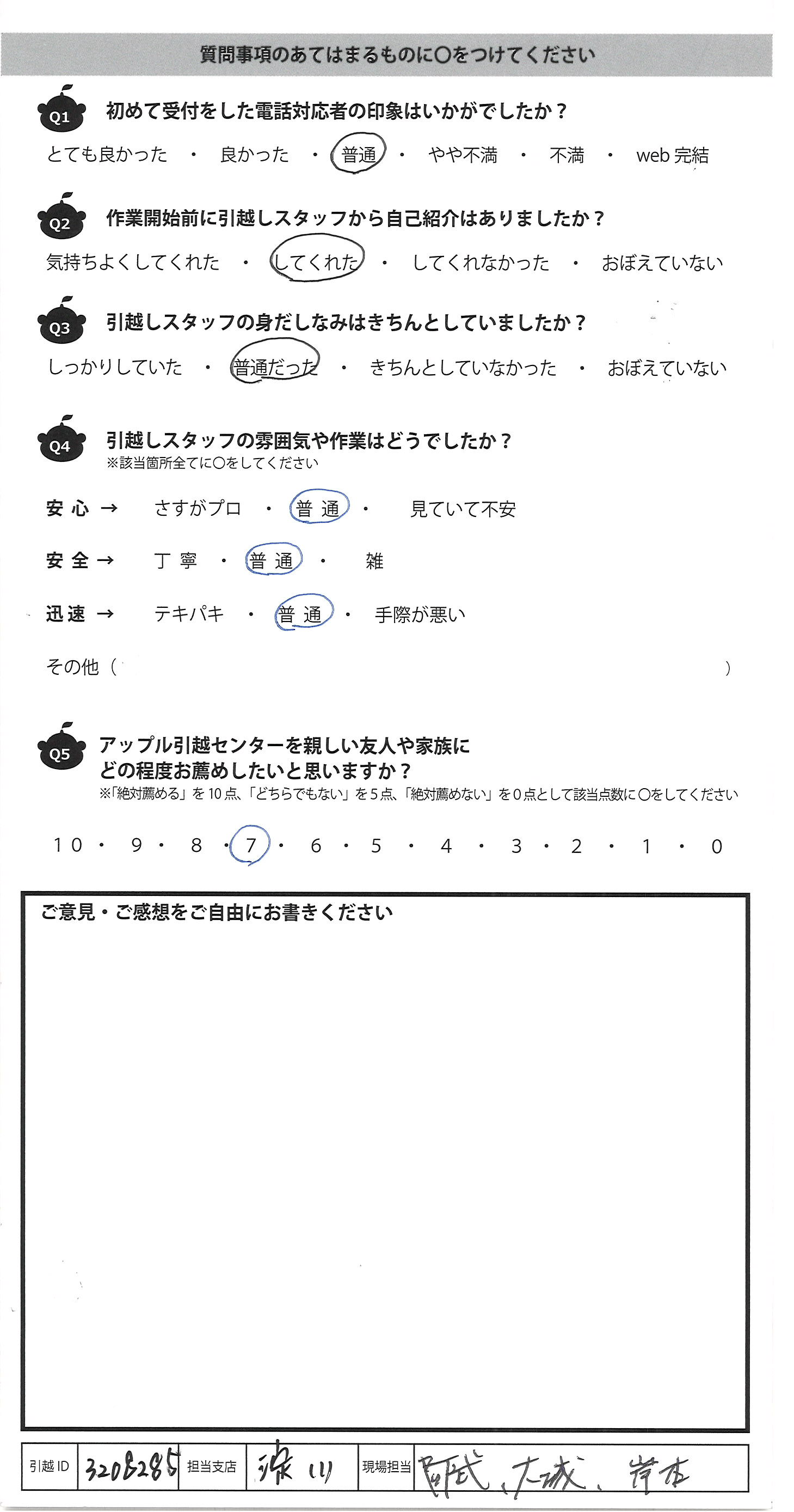 アップル引越センターでは、面映いお褒めの言葉も、胸に突き刺さるお叱りのコメントも、
