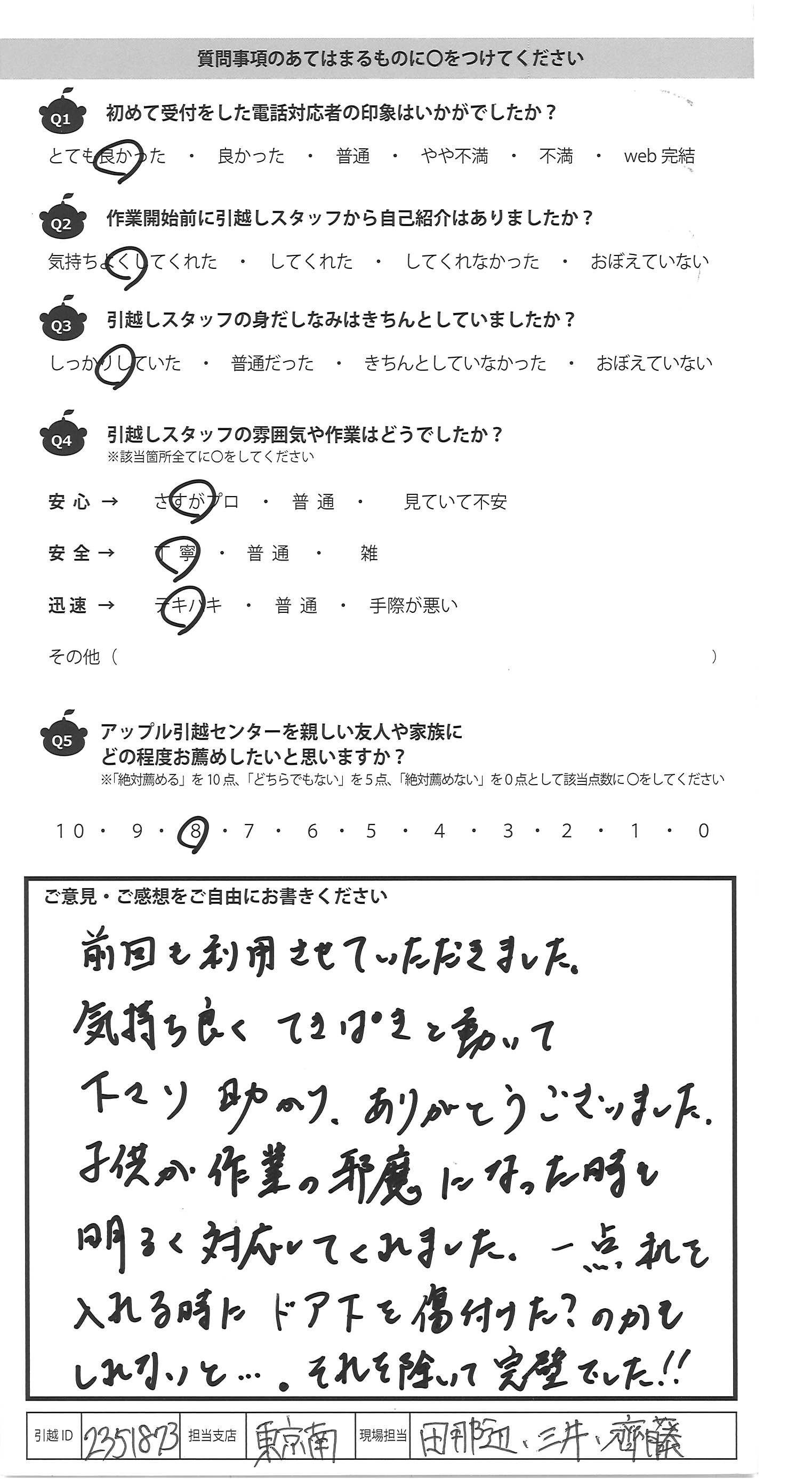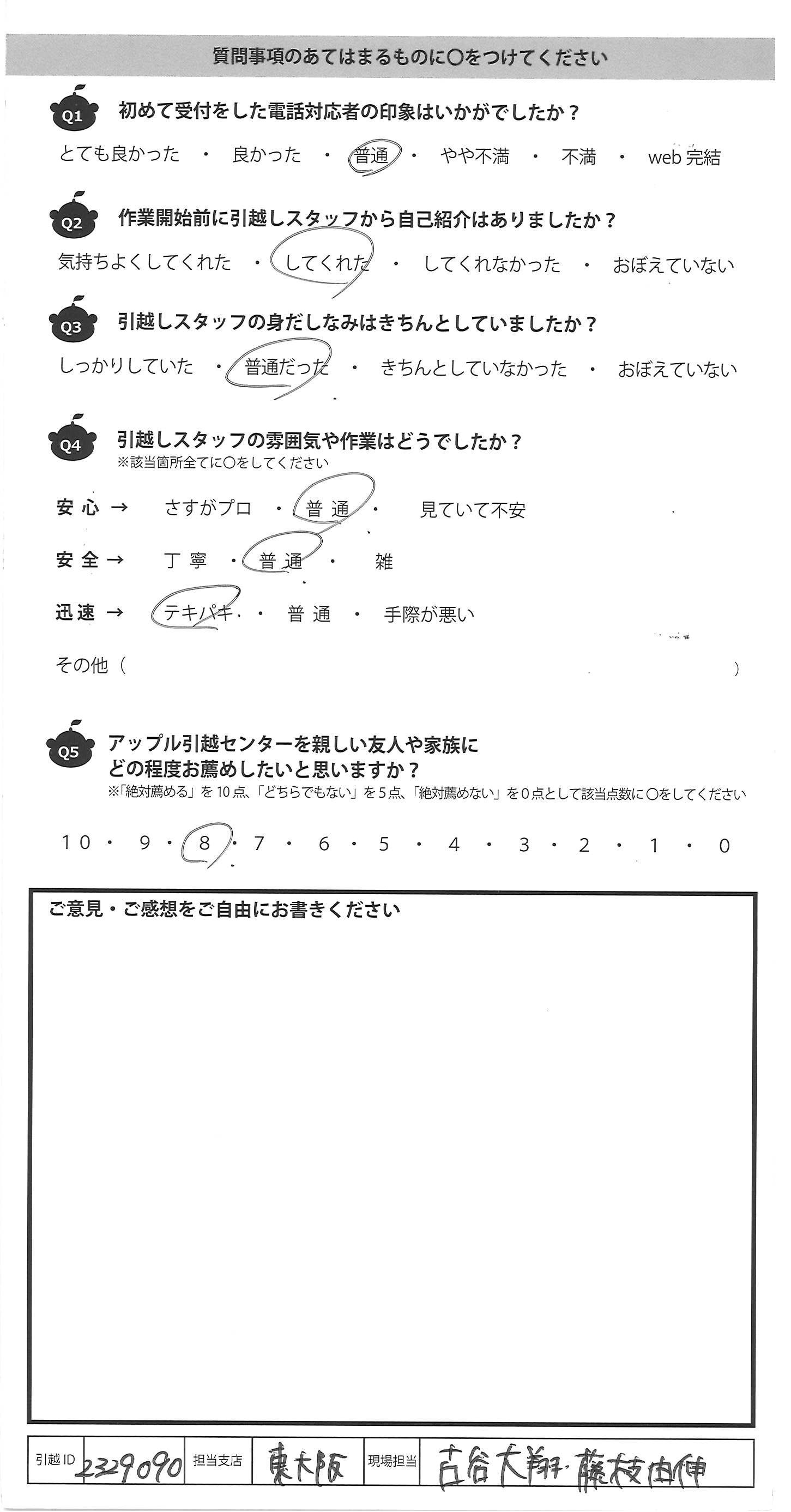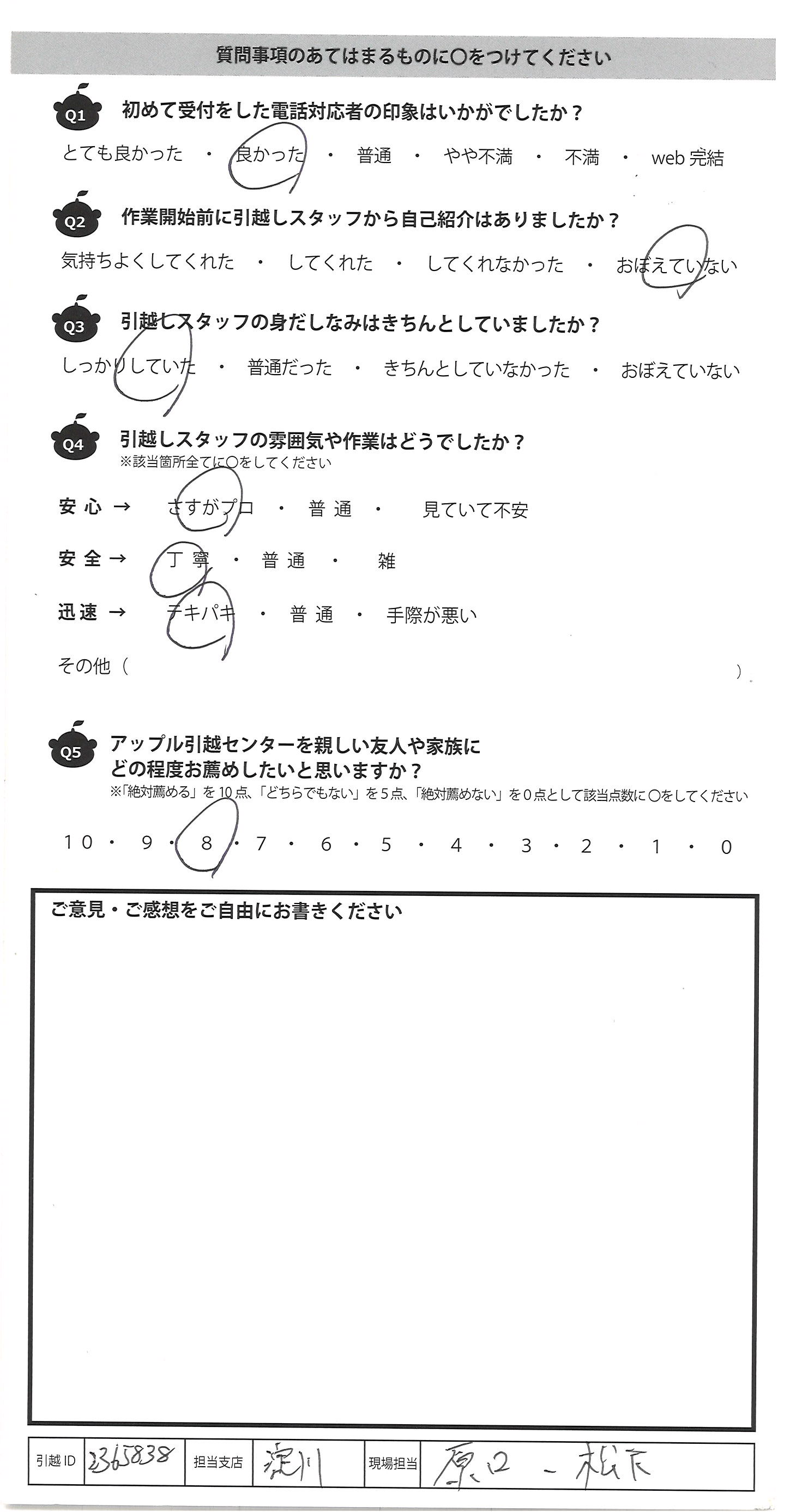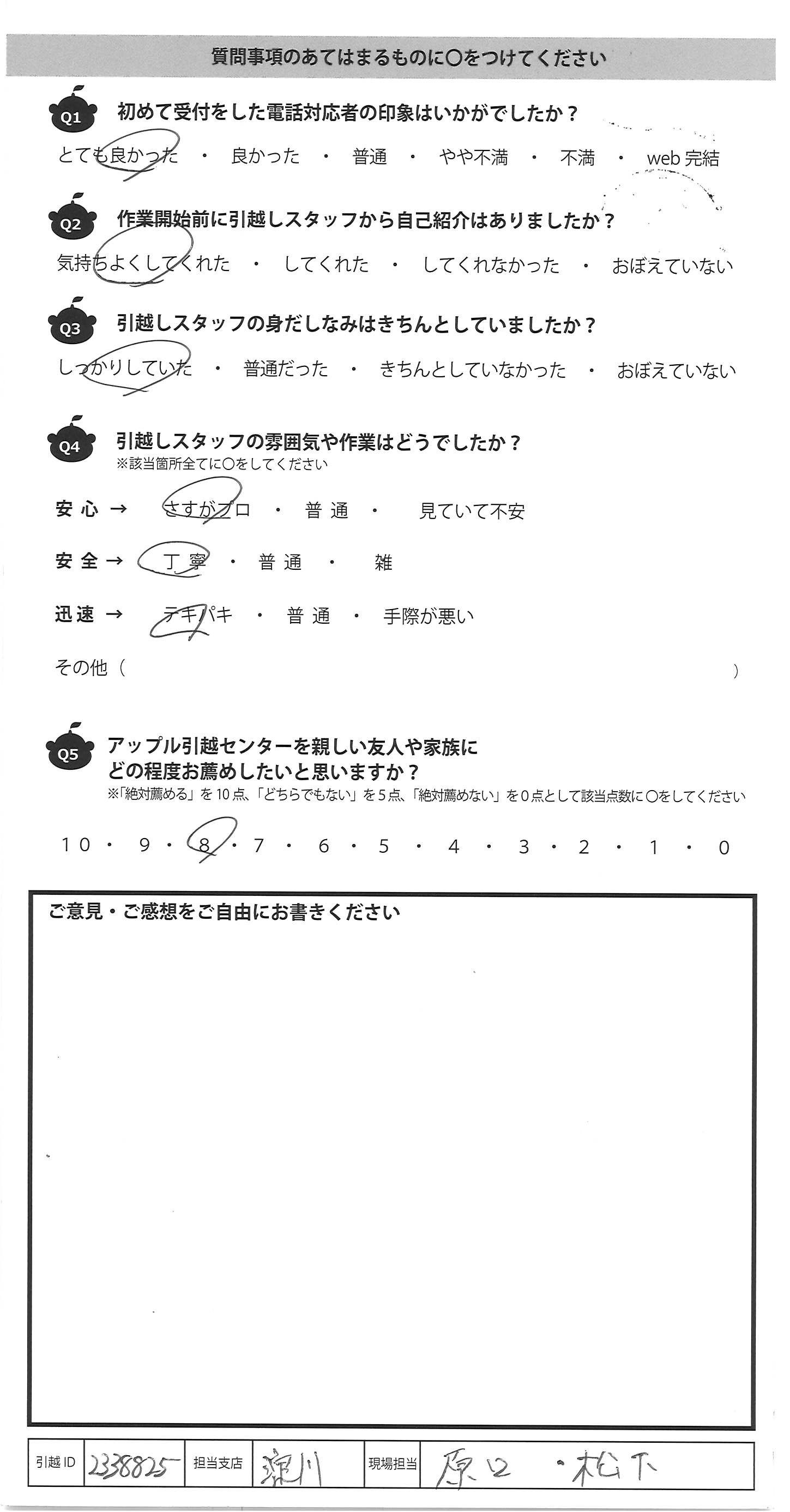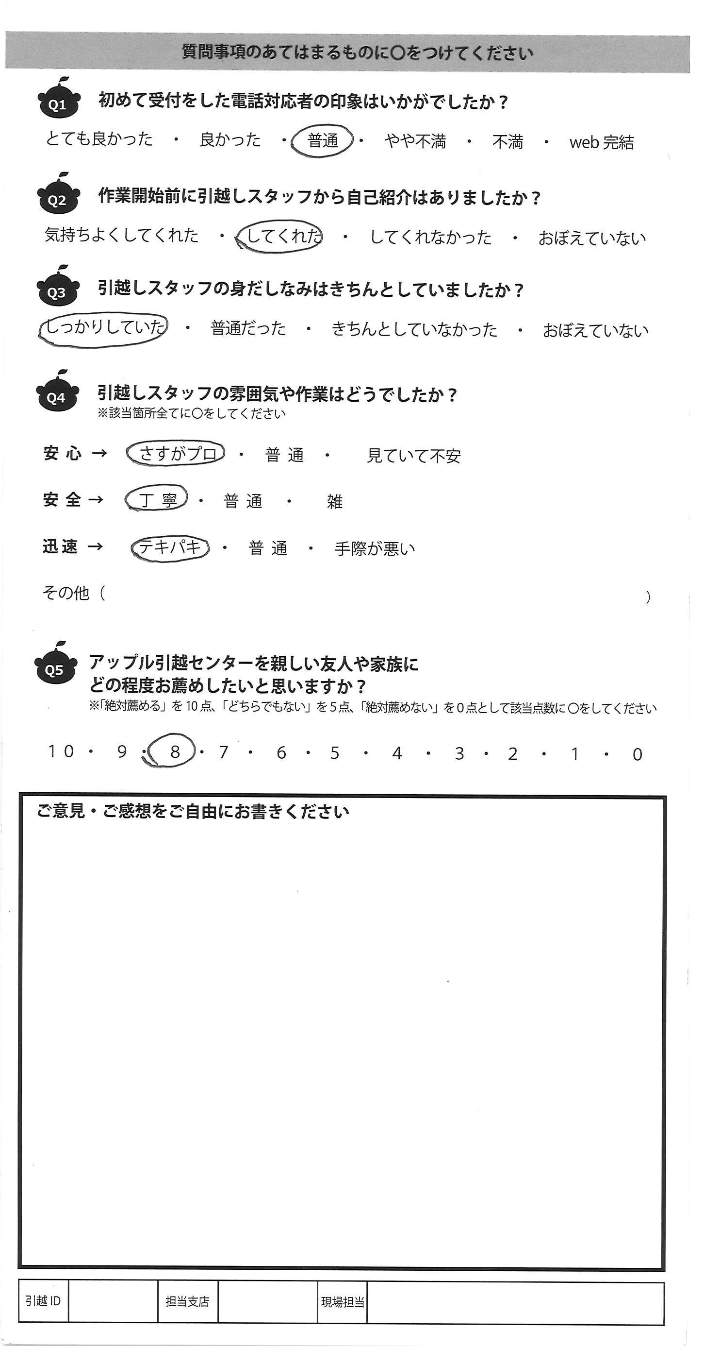 アップル引越センターでは、面映いお褒めの言葉も、胸に突き刺さるお叱りのコメントも、