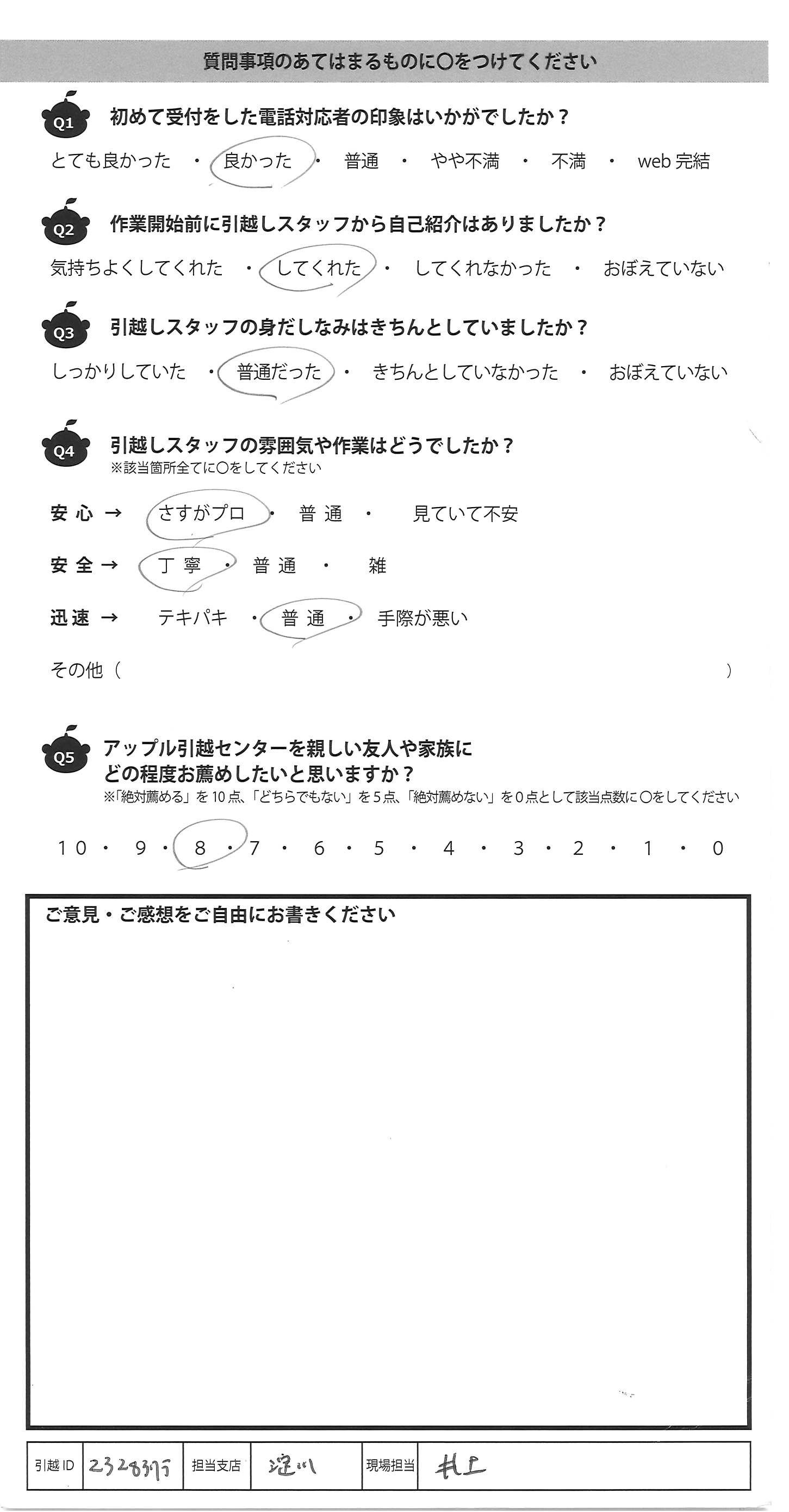 アップル引越センターでは、面映いお褒めの言葉も、胸に突き刺さるお叱りのコメントも、