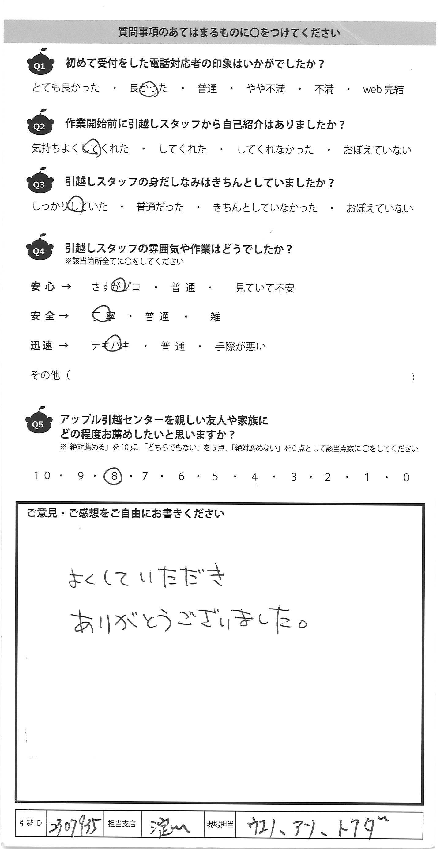 アップル引越センターでは、面映いお褒めの言葉も、胸に突き刺さるお叱りのコメントも、