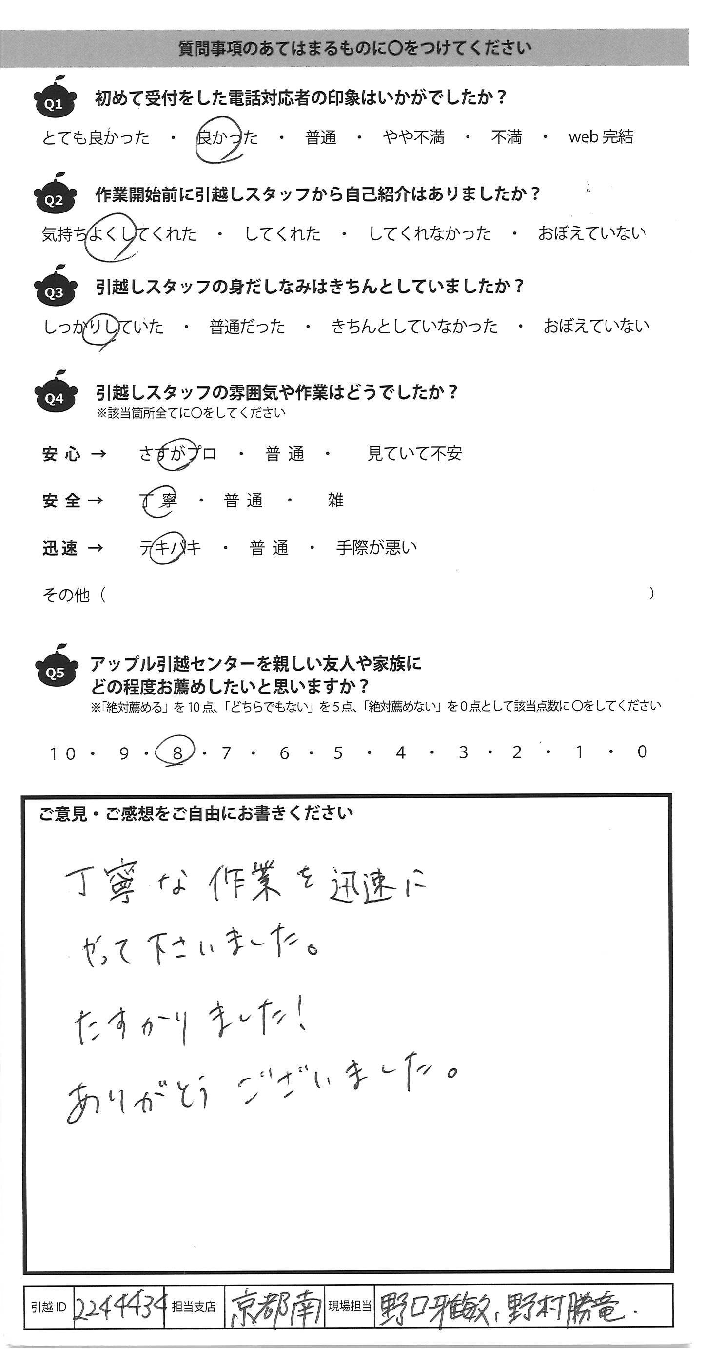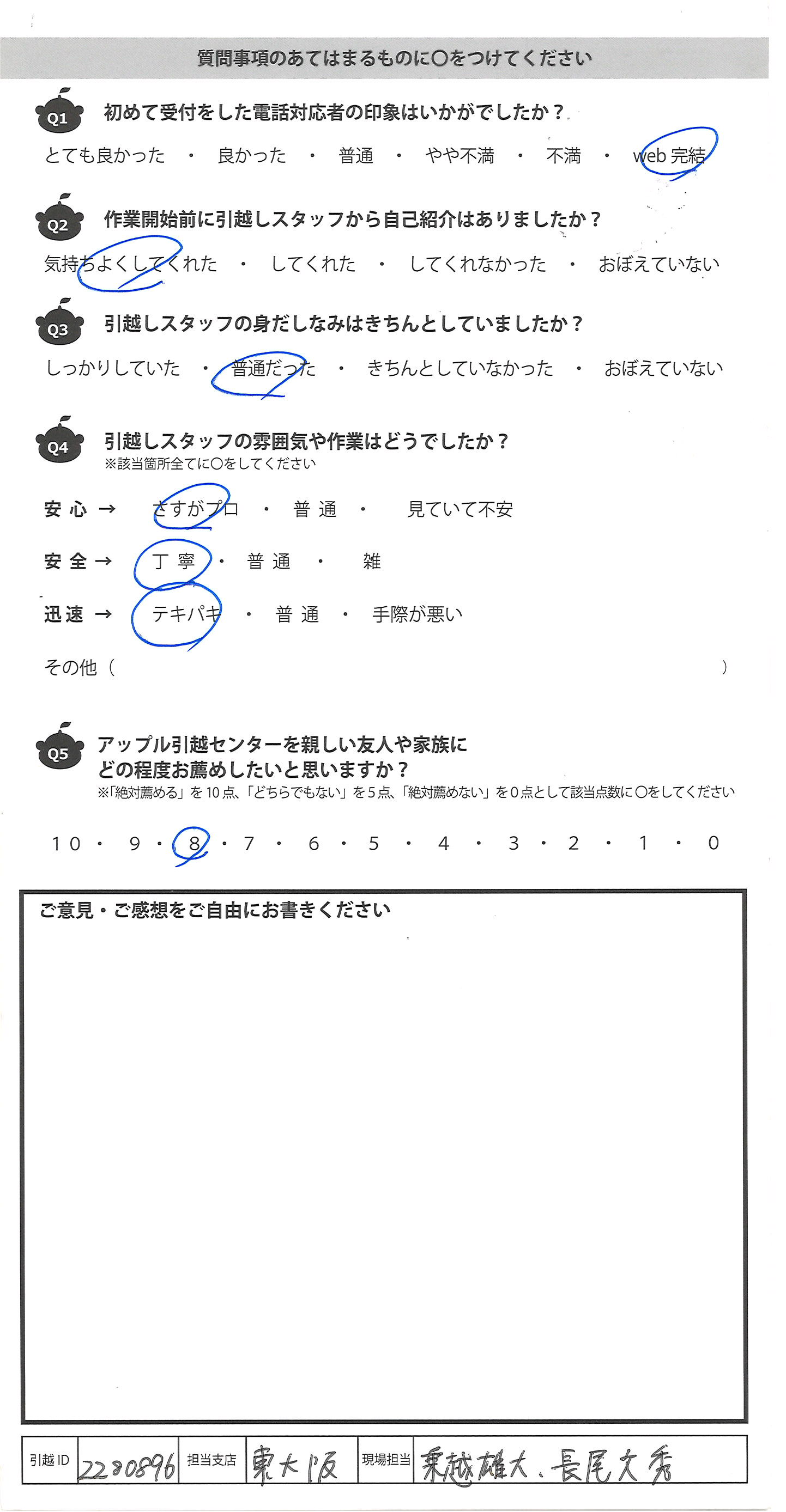 アップル引越センターでは、面映いお褒めの言葉も、胸に突き刺さるお叱りのコメントも、