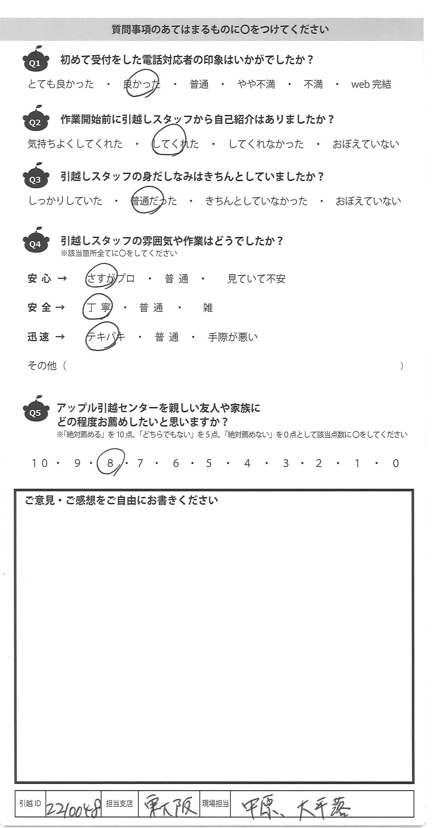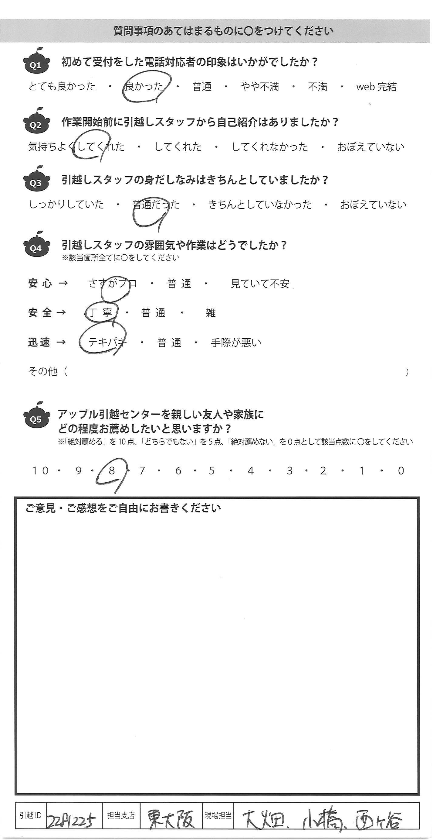 アップル引越センターでは、面映いお褒めの言葉も、胸に突き刺さるお叱りのコメントも、