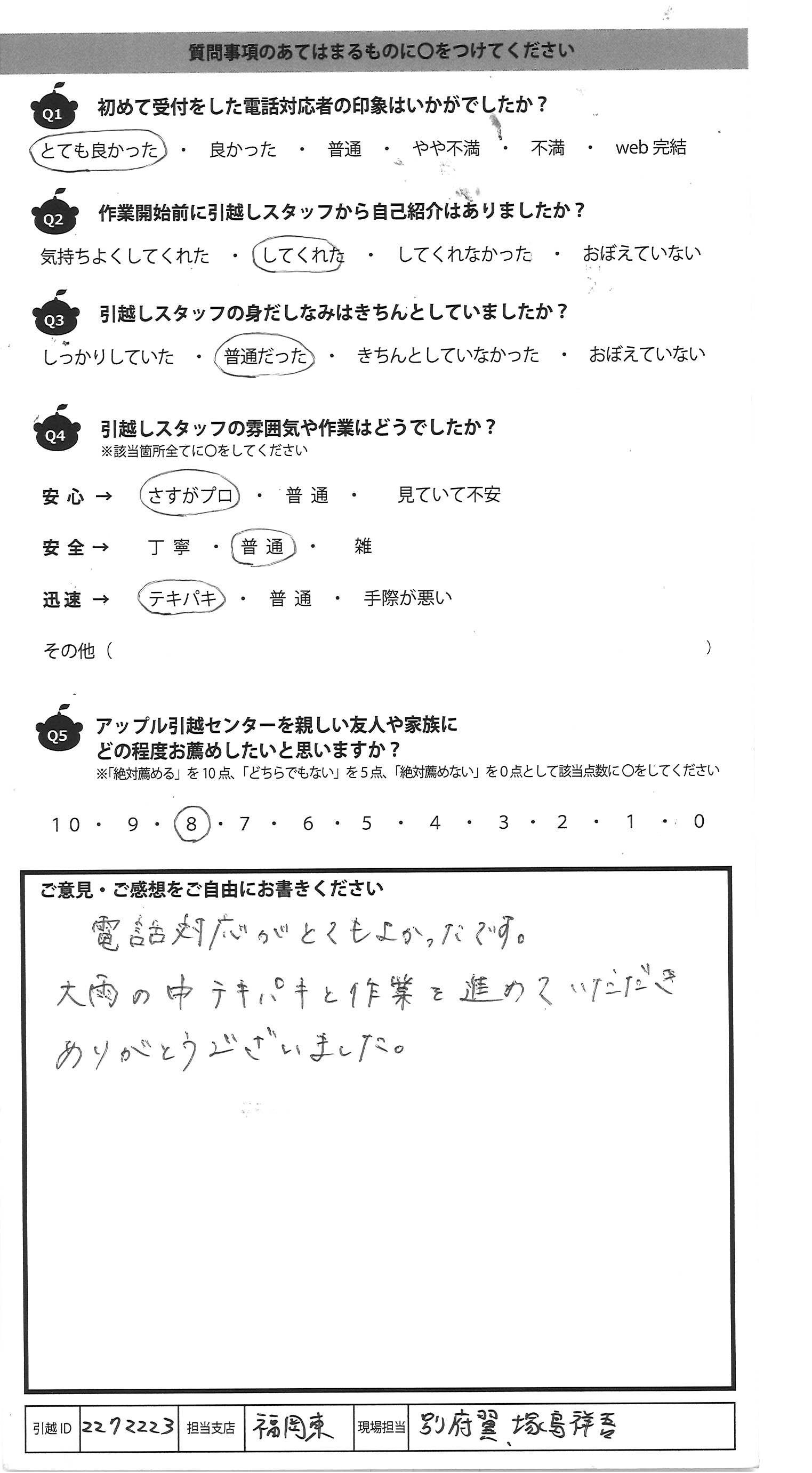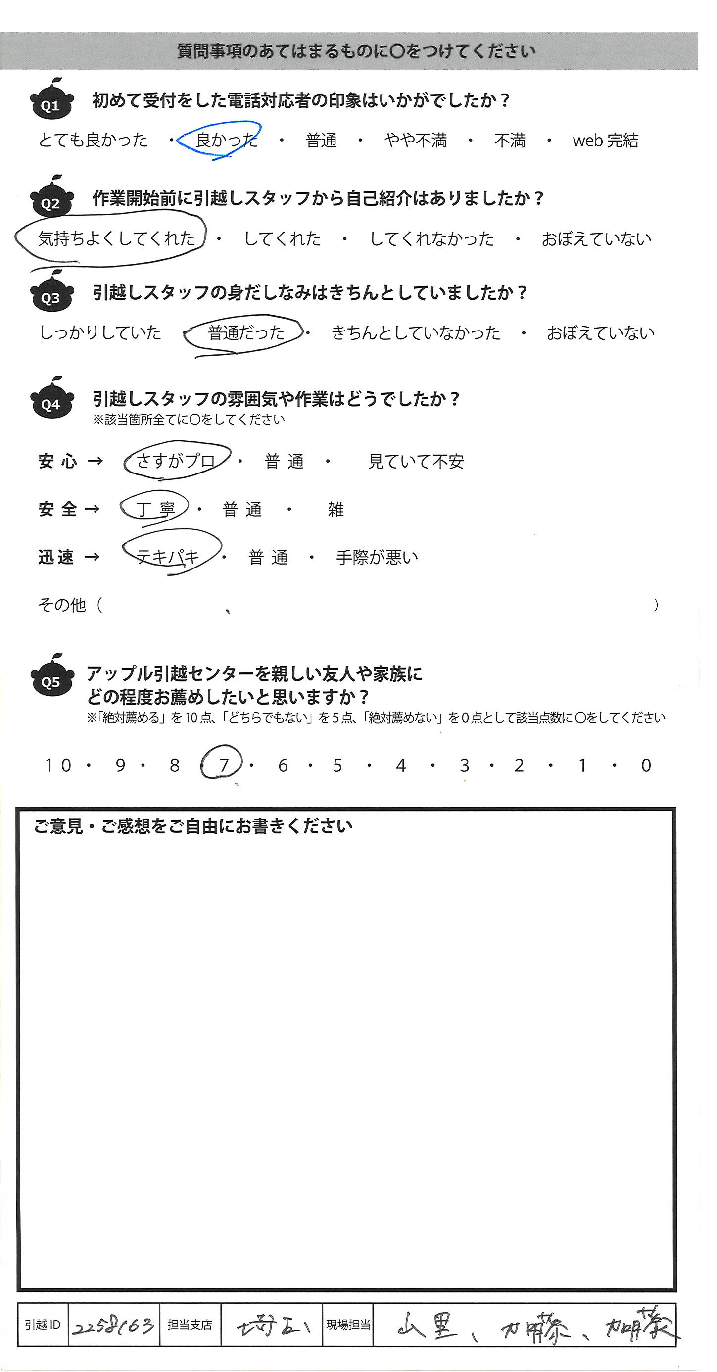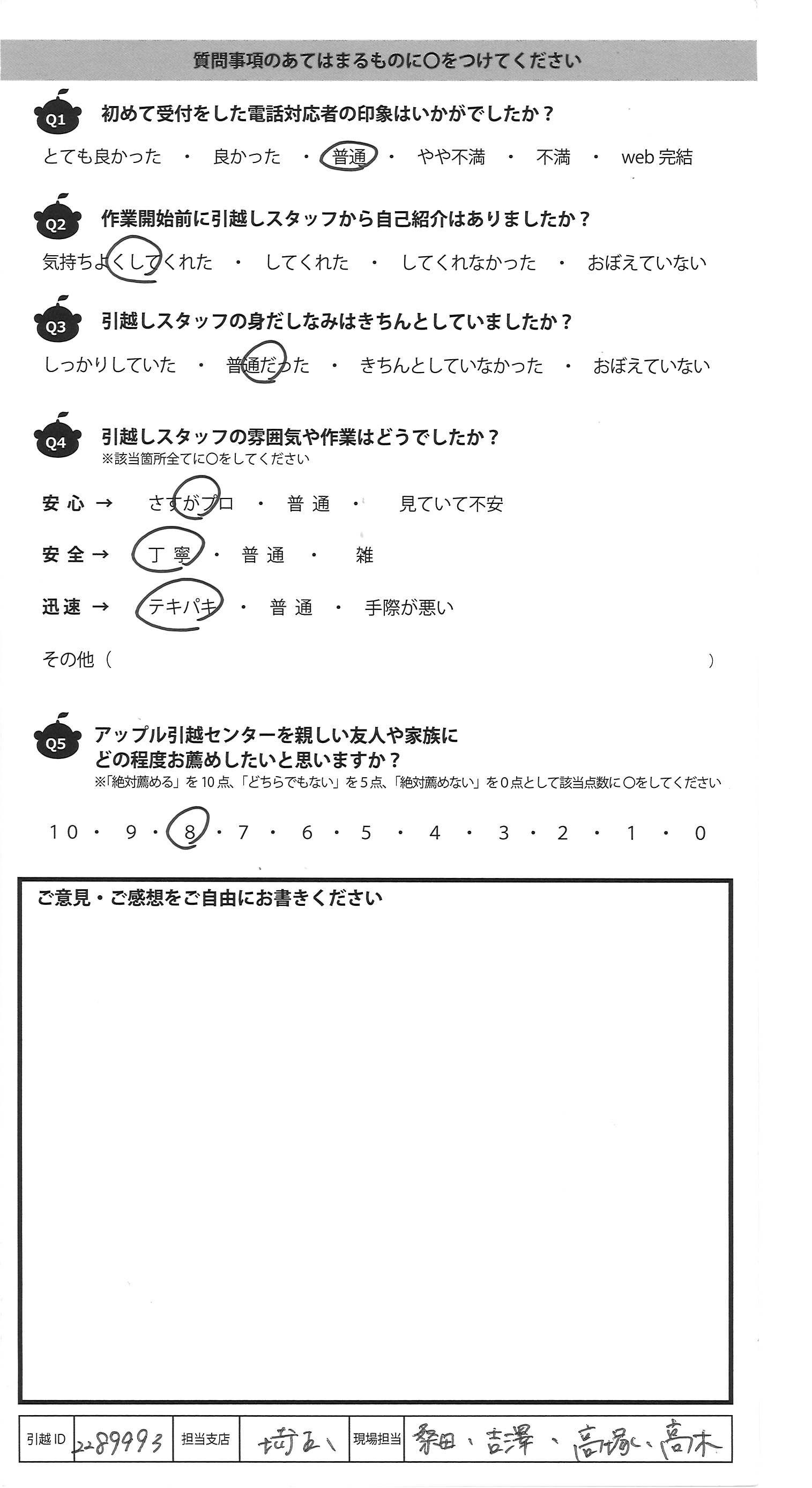 アップル引越センターでは、面映いお褒めの言葉も、胸に突き刺さるお叱りのコメントも、