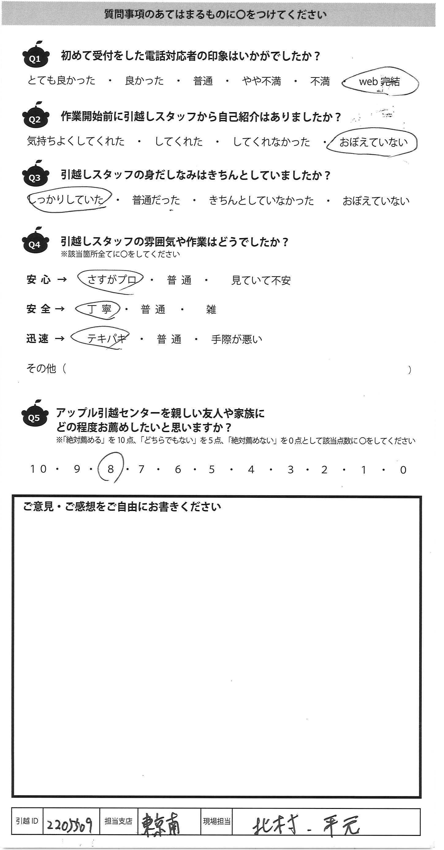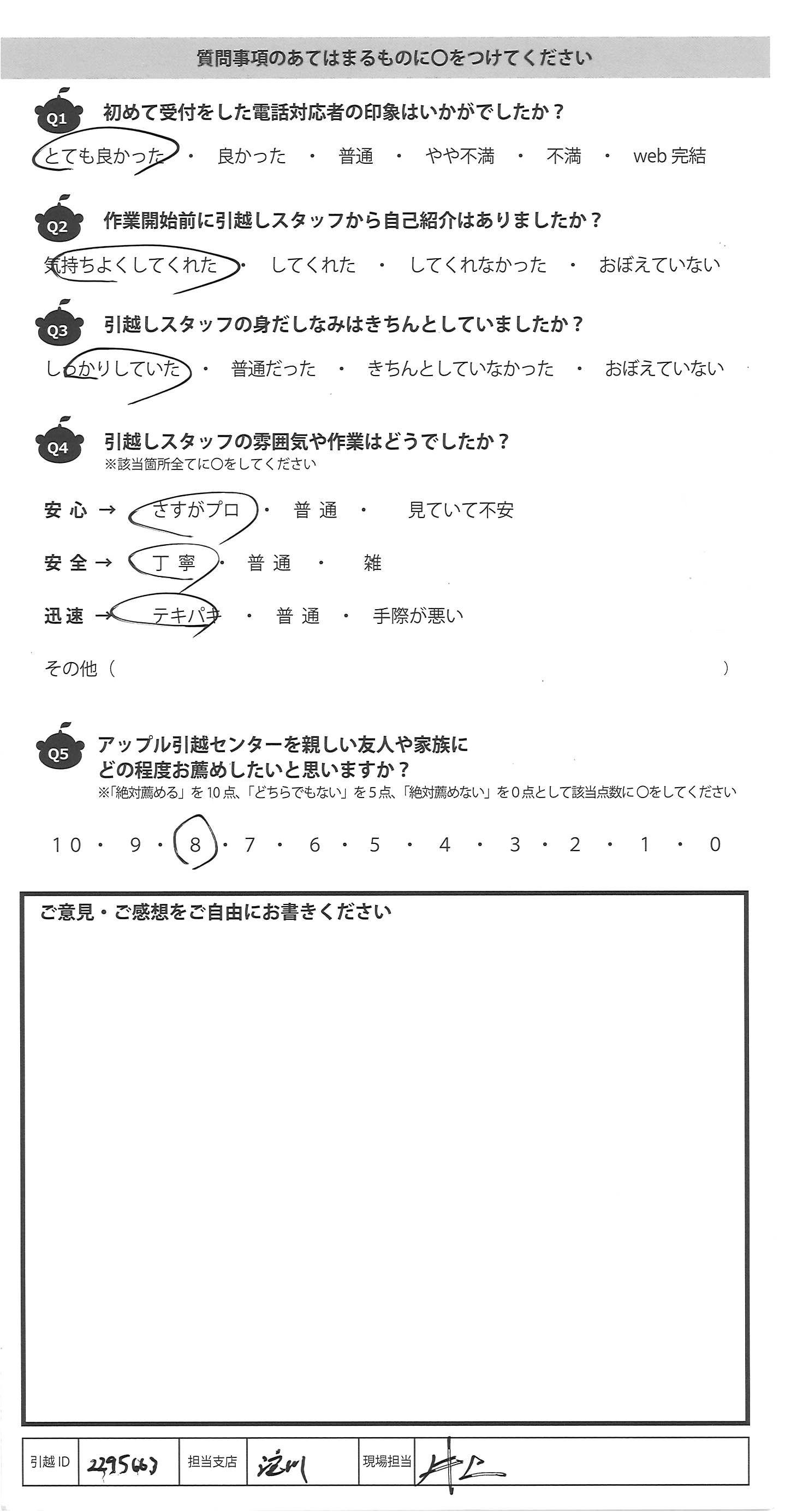 アップル引越センターでは、面映いお褒めの言葉も、胸に突き刺さるお叱りのコメントも、