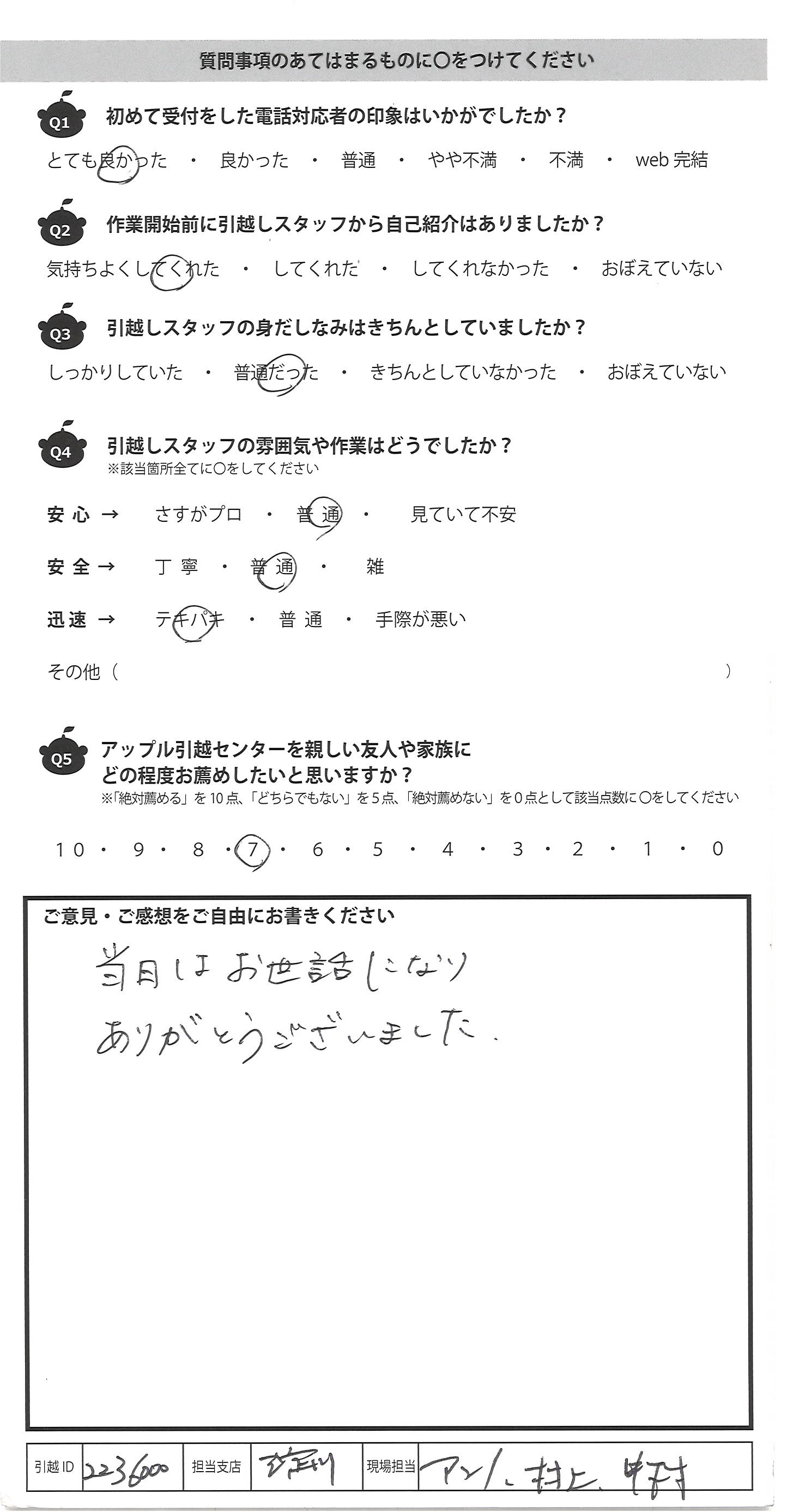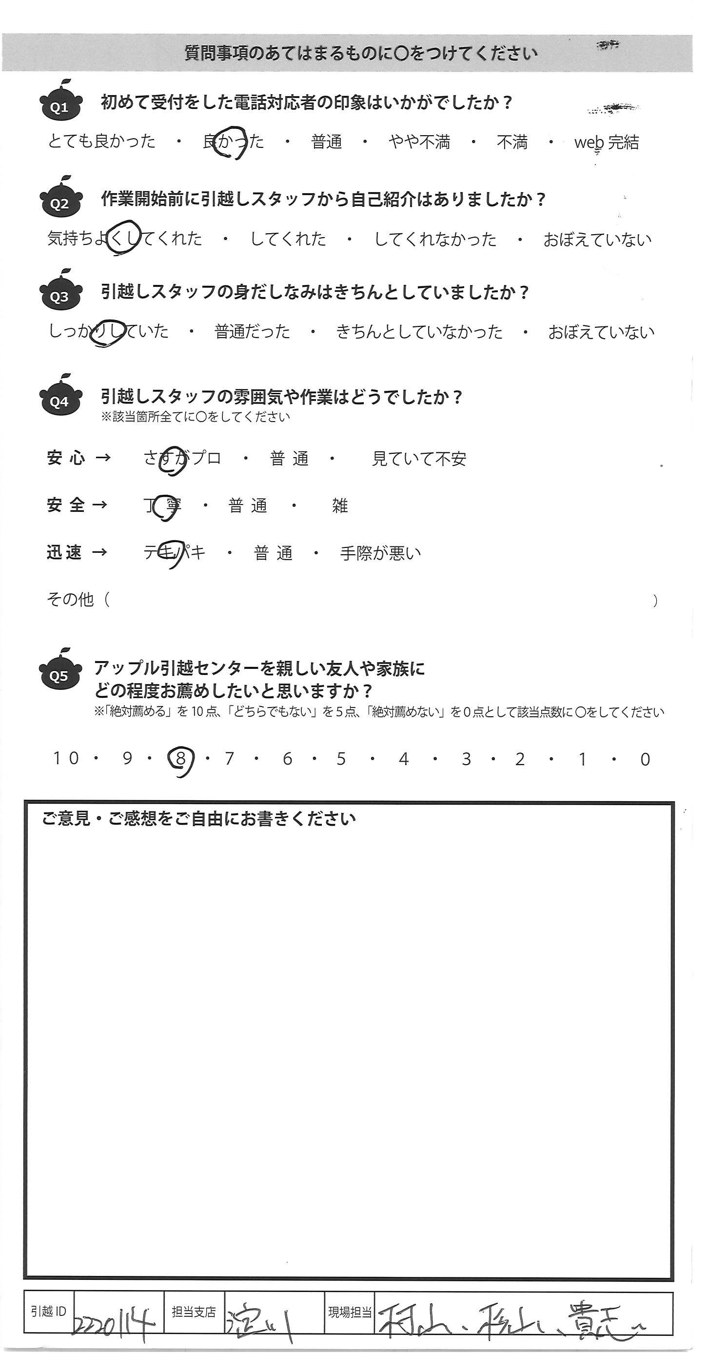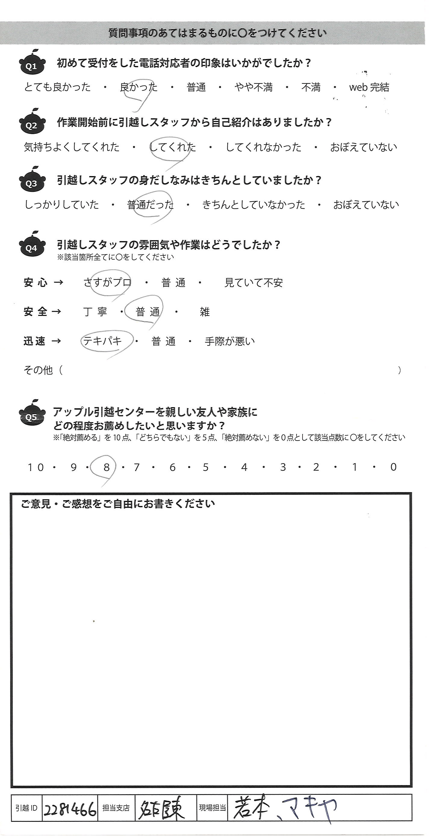 アップル引越センターでは、面映いお褒めの言葉も、胸に突き刺さるお叱りのコメントも、