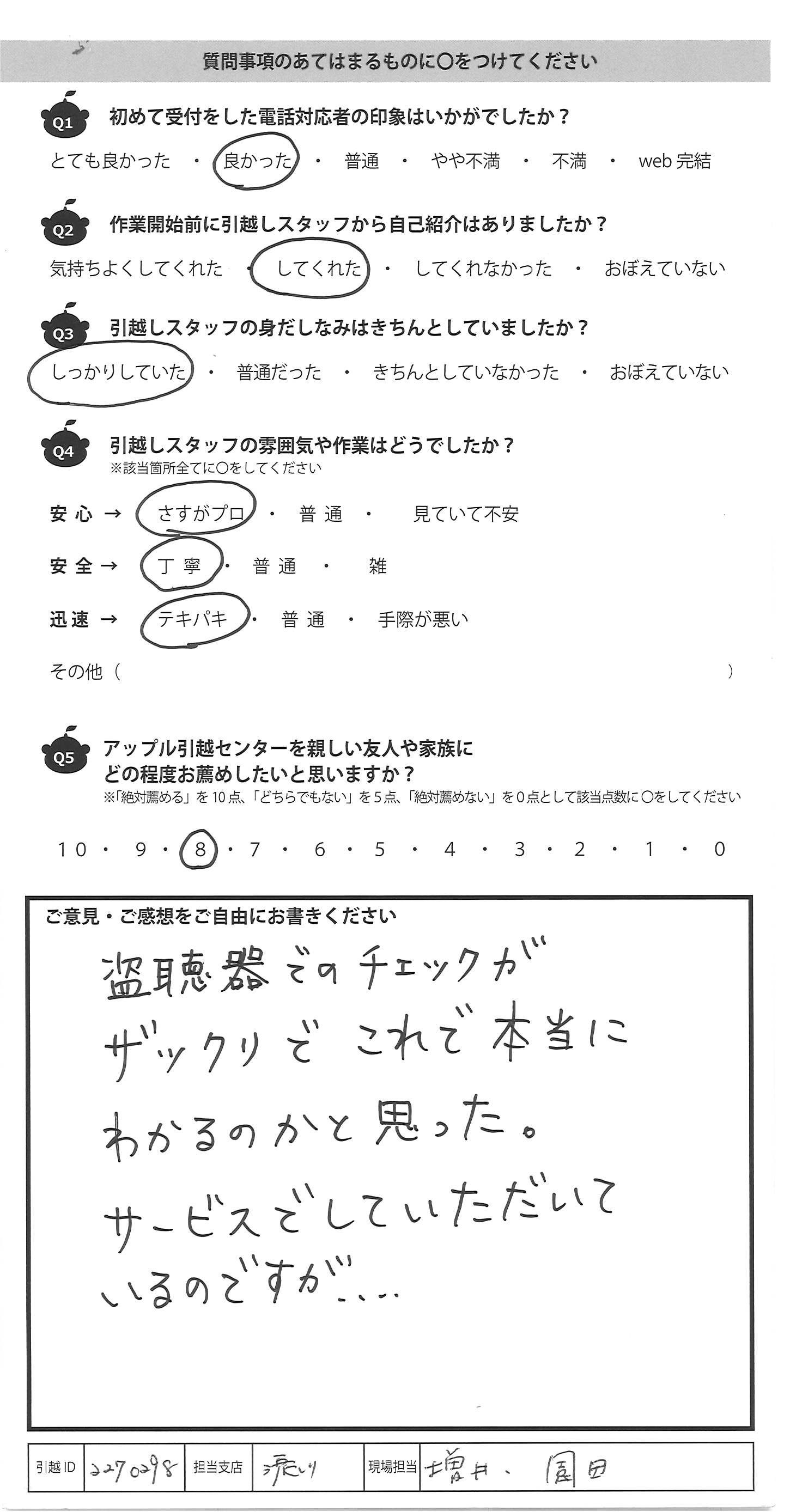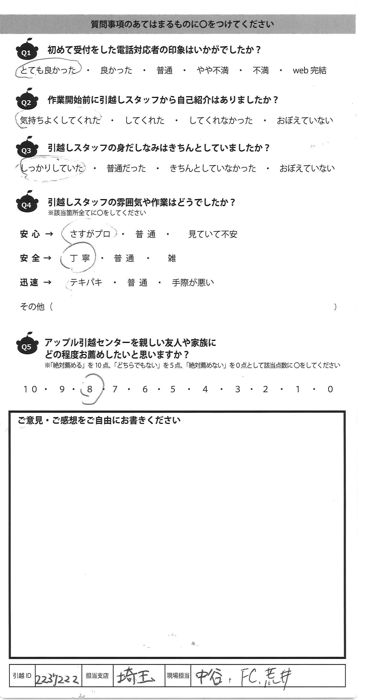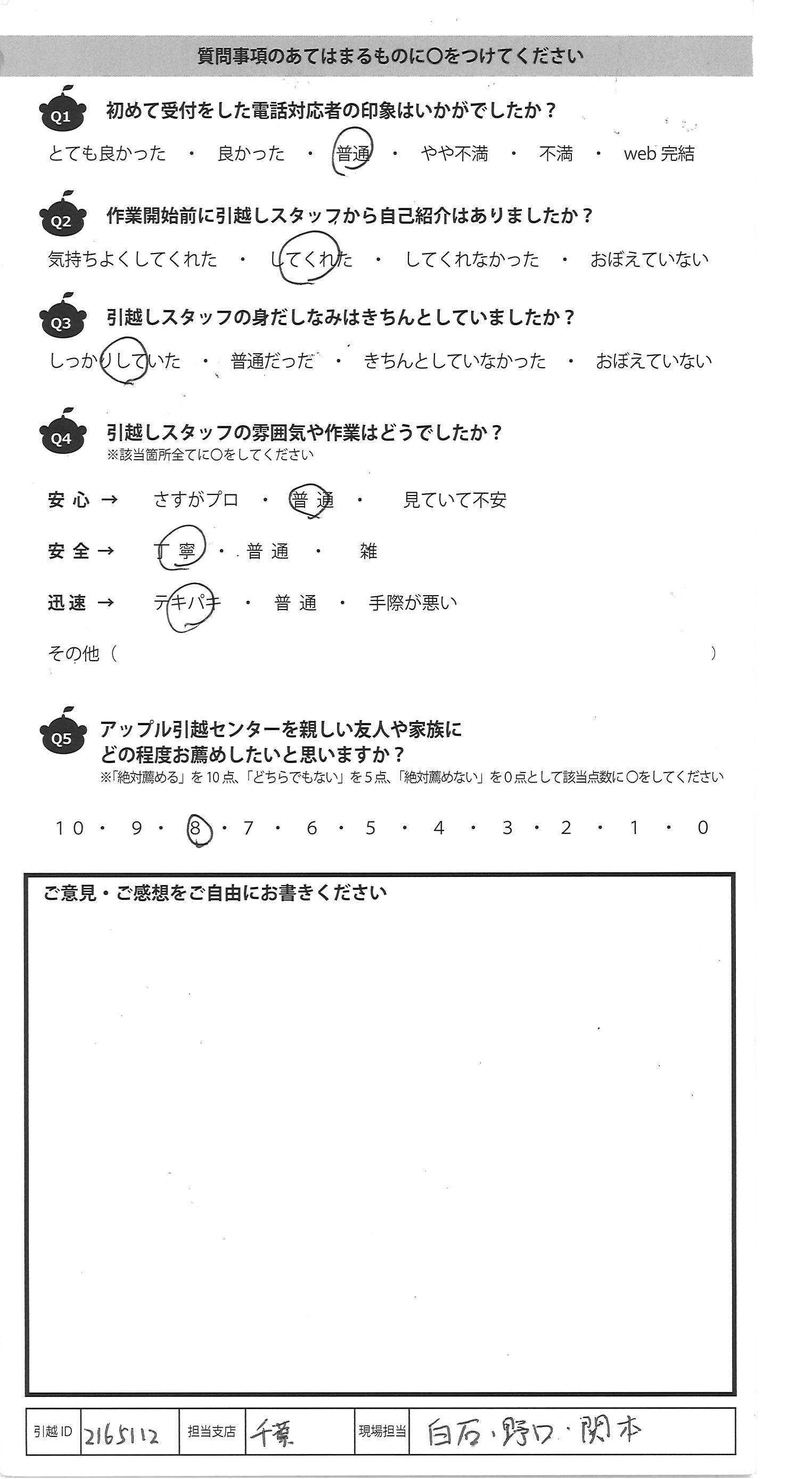 アップル引越センターでは、面映いお褒めの言葉も、胸に突き刺さるお叱りのコメントも、