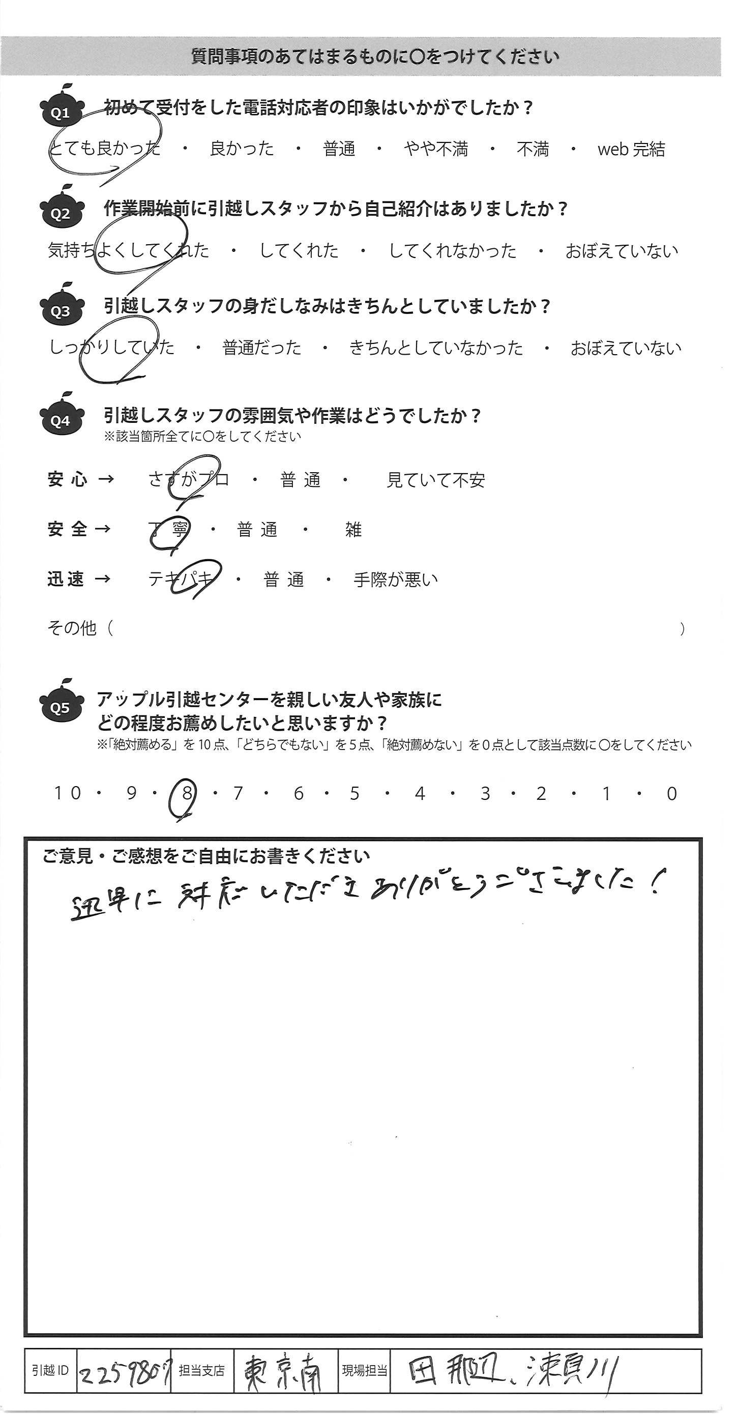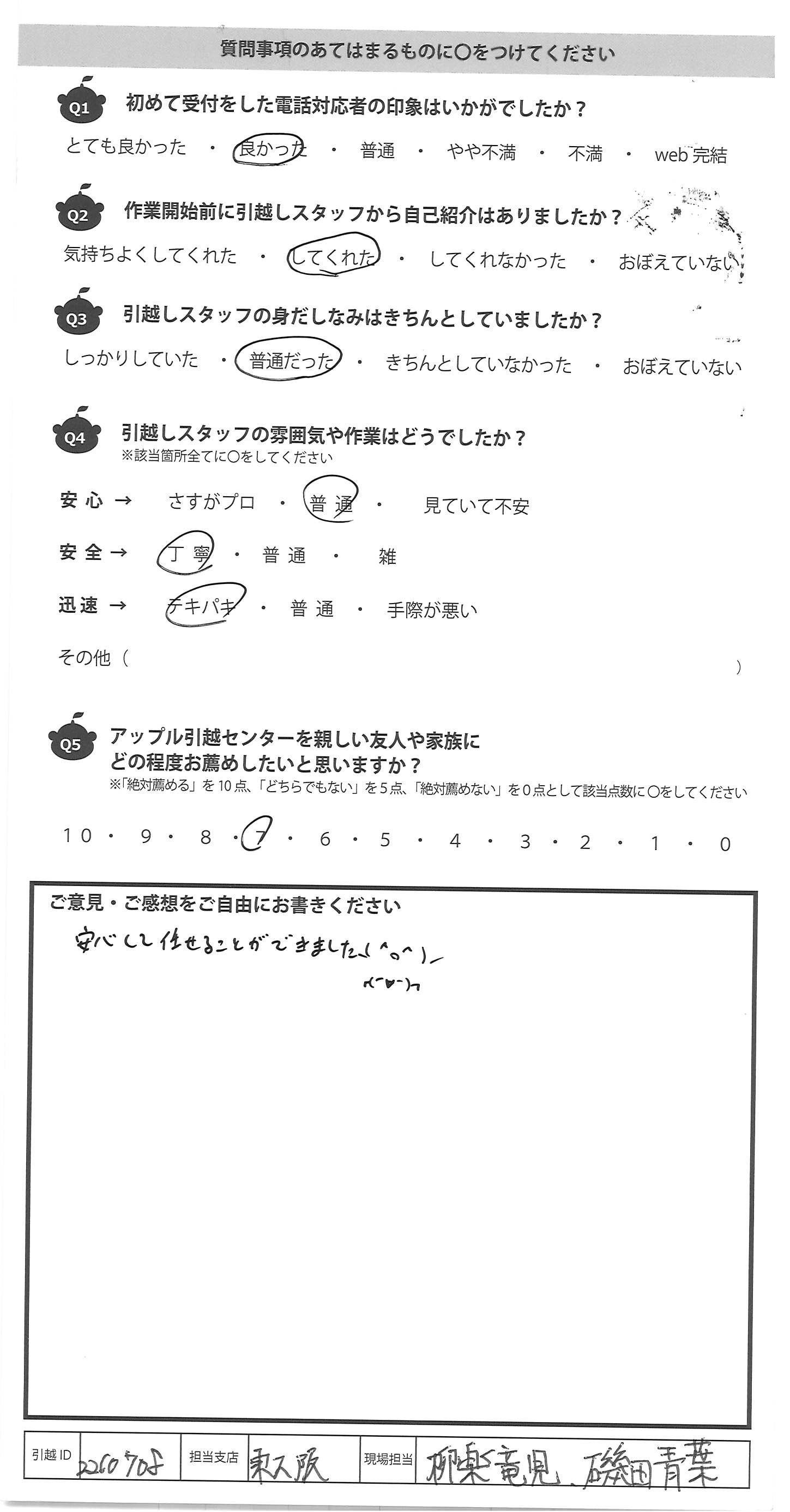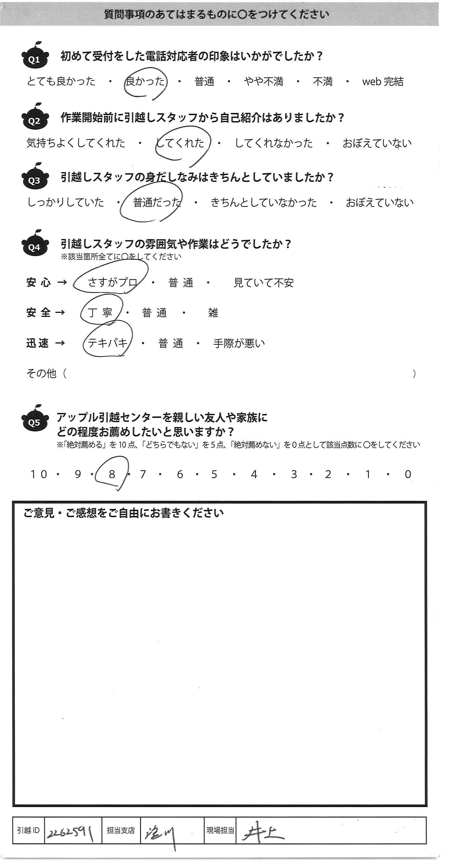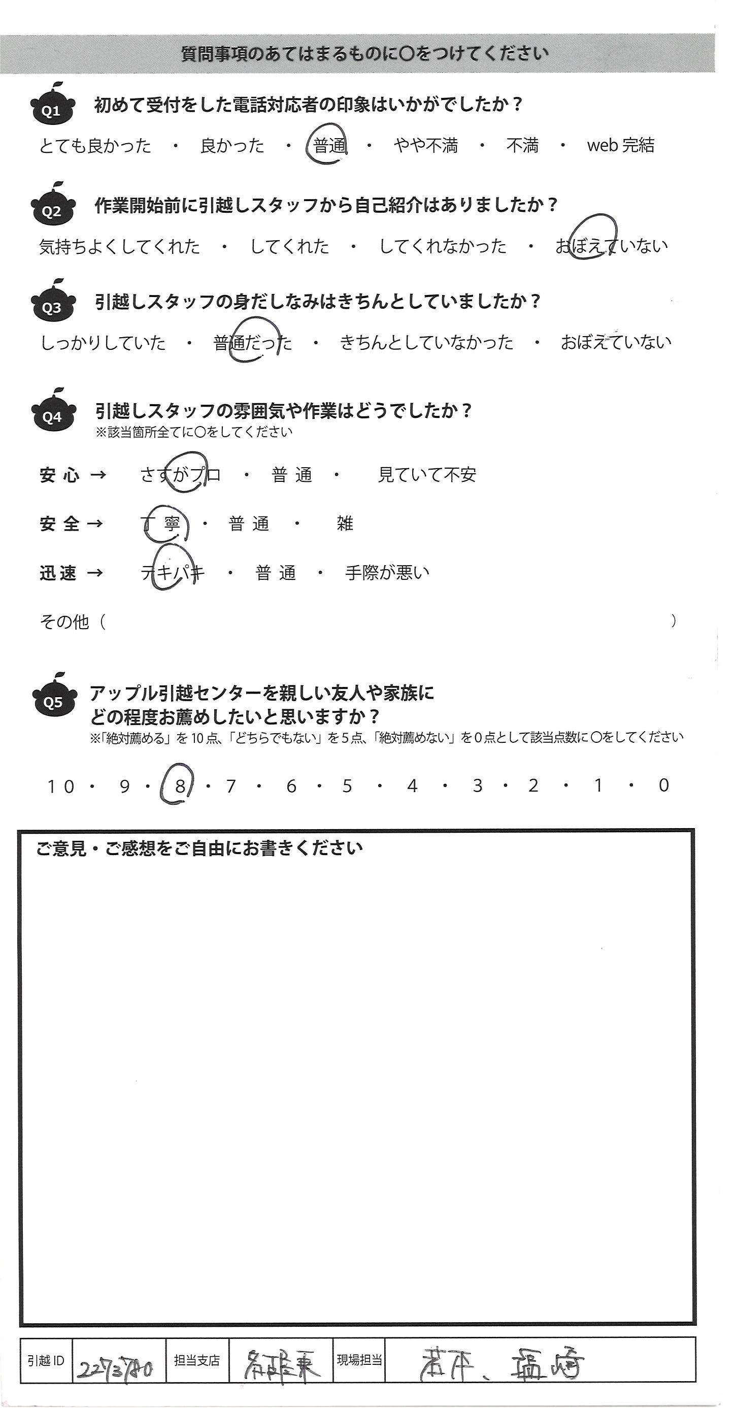 A.態度や仕事どちらも丁寧でした。 今度の引越もお願いしたいです。