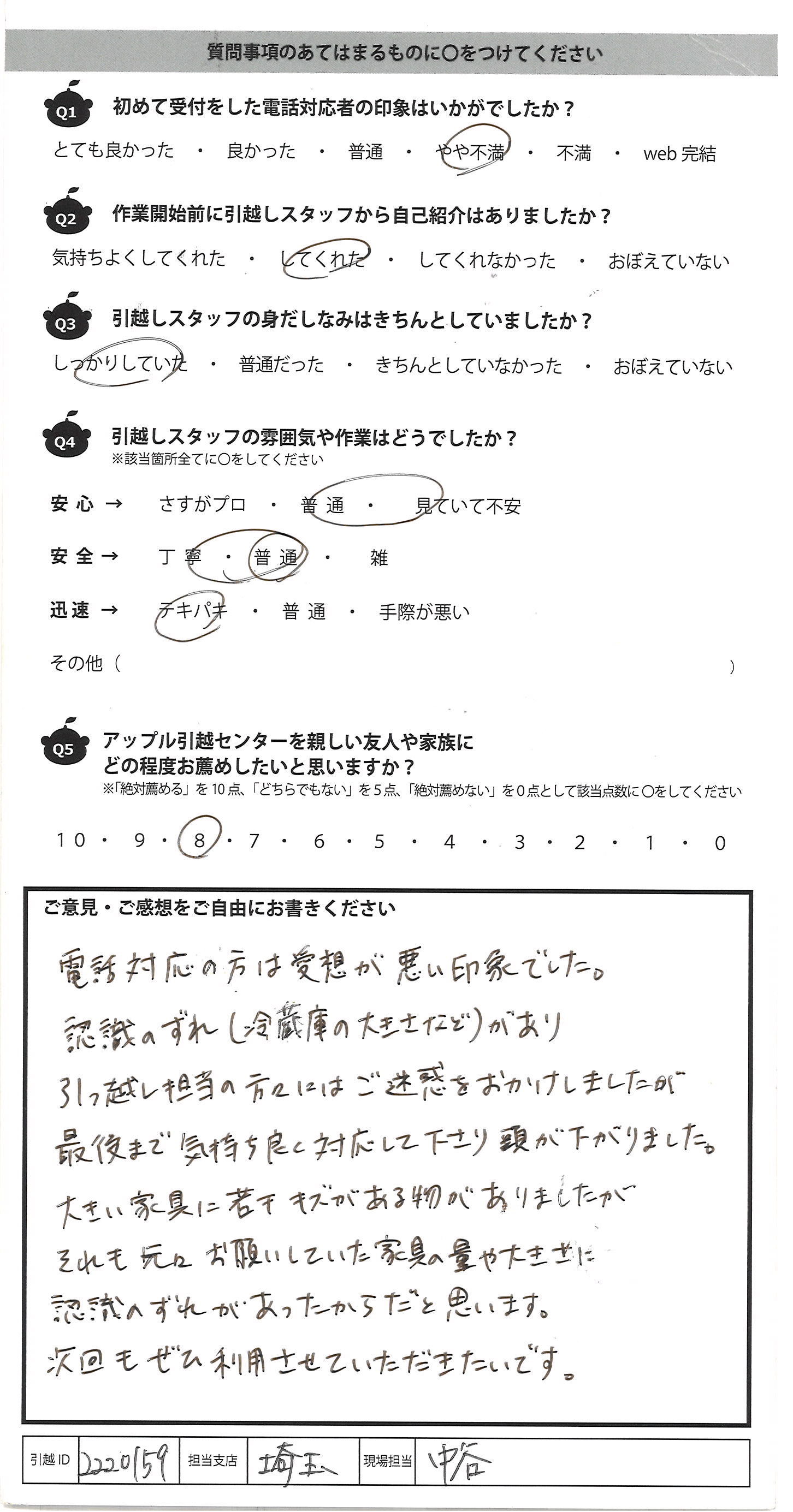 アップル引越センターでは、面映いお褒めの言葉も、胸に突き刺さるお叱りのコメントも、