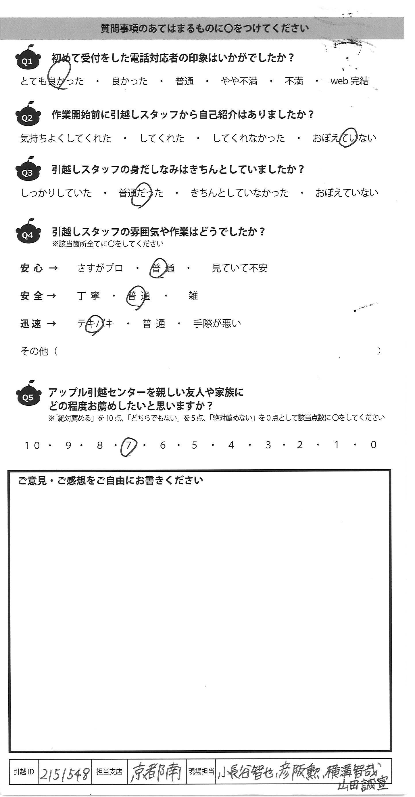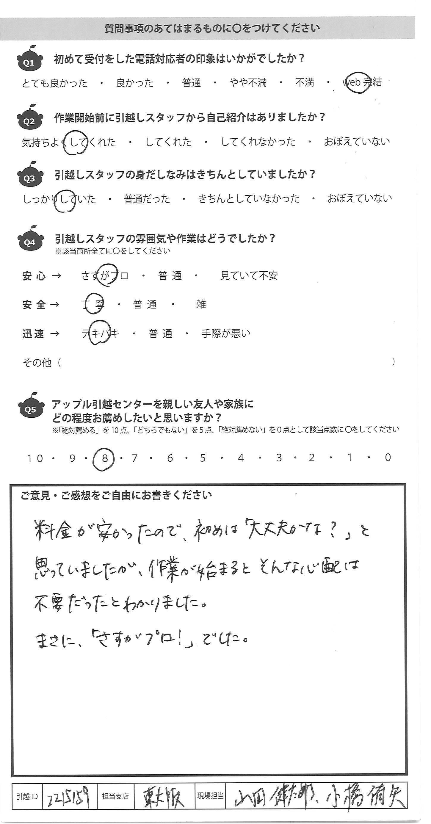 アップル引越センターでは、面映いお褒めの言葉も、胸に突き刺さるお叱りのコメントも、