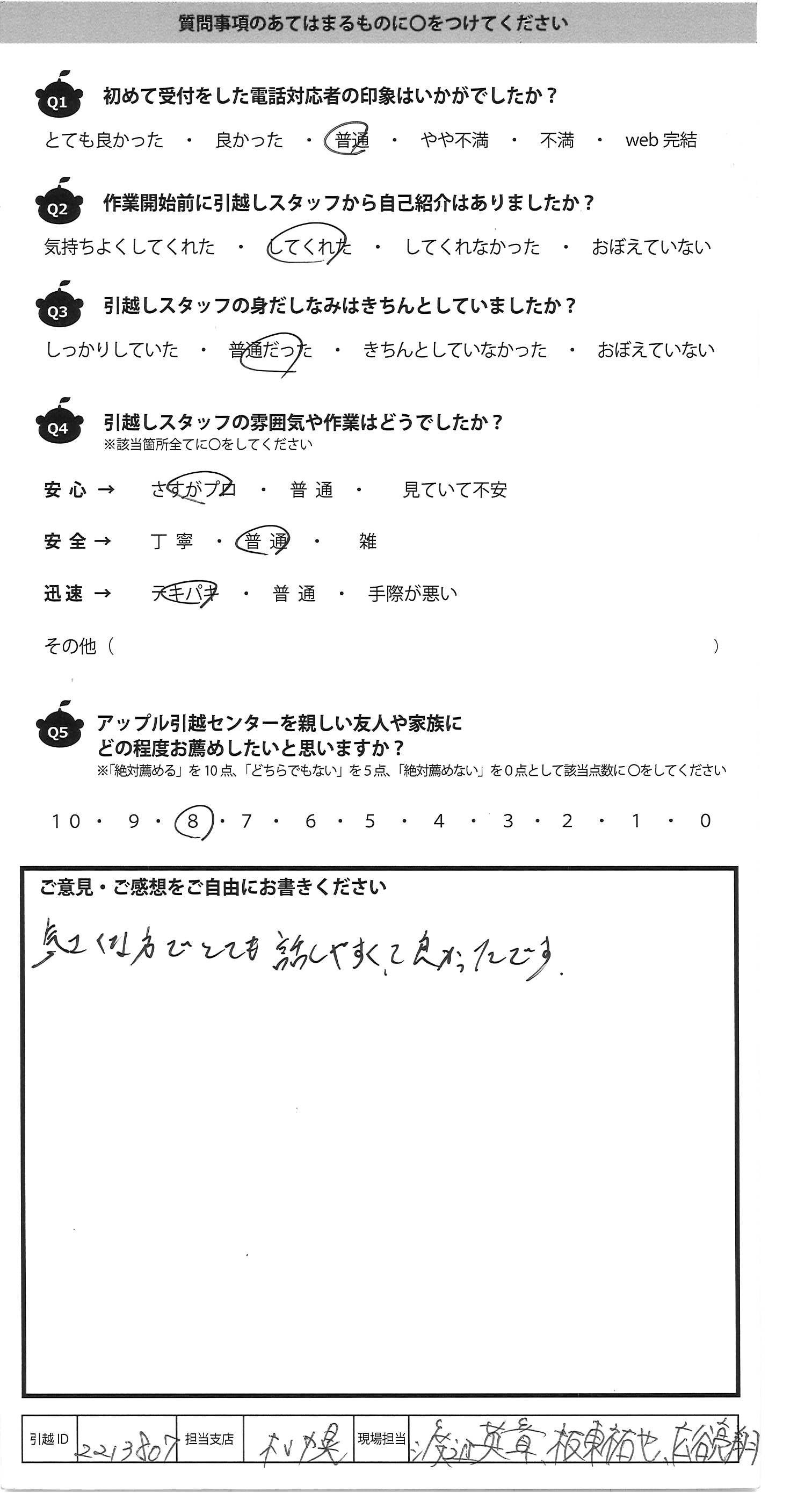 アップル引越センターでは、面映いお褒めの言葉も、胸に突き刺さるお叱りのコメントも、