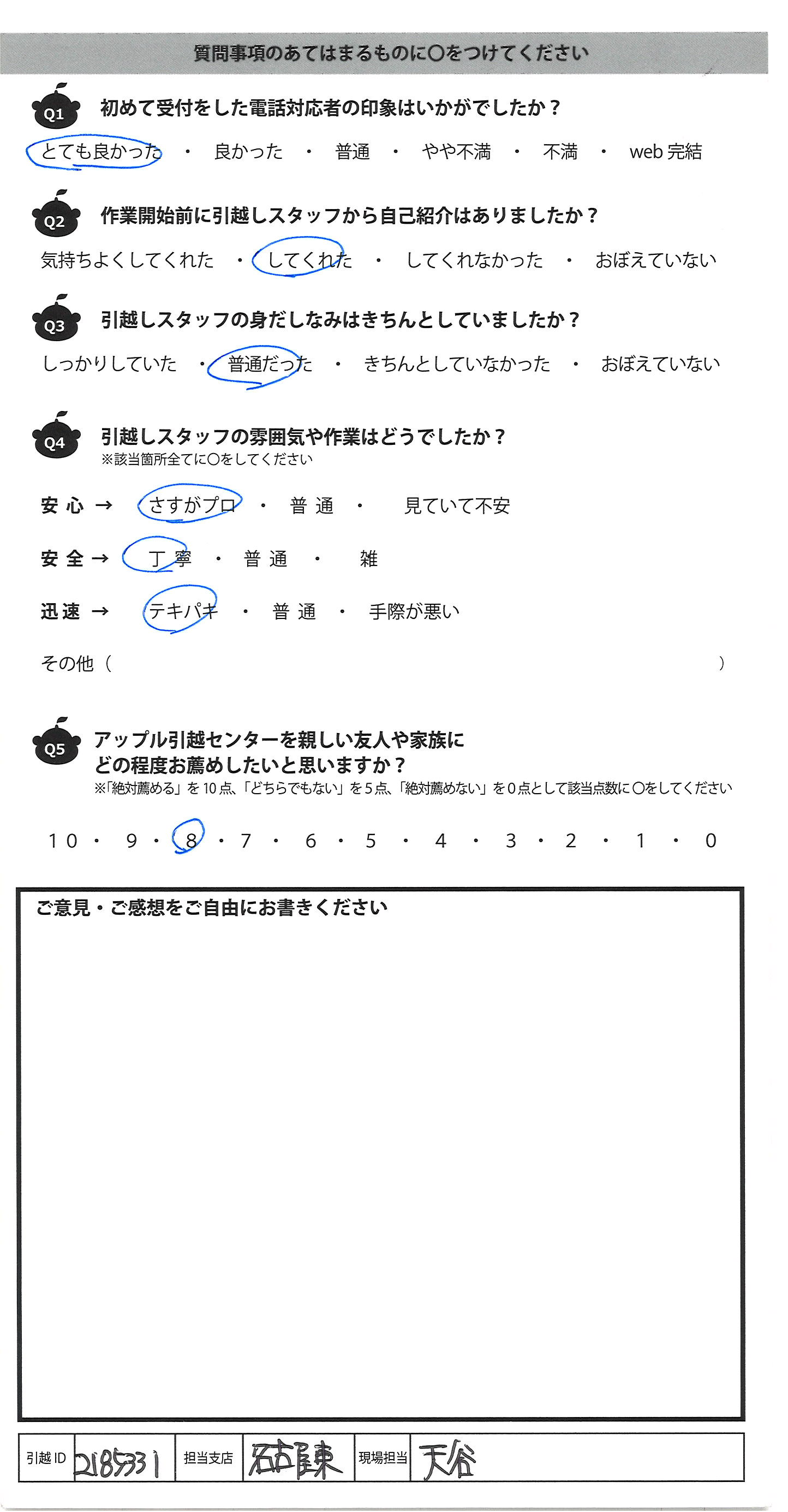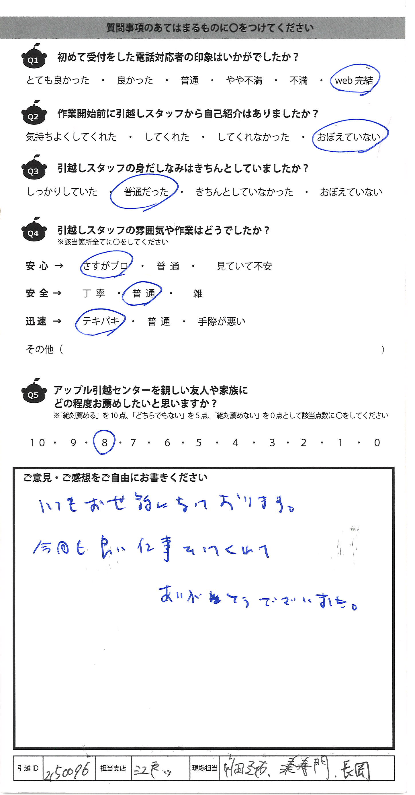 アップル引越センターでは、面映いお褒めの言葉も、胸に突き刺さるお叱りのコメントも、