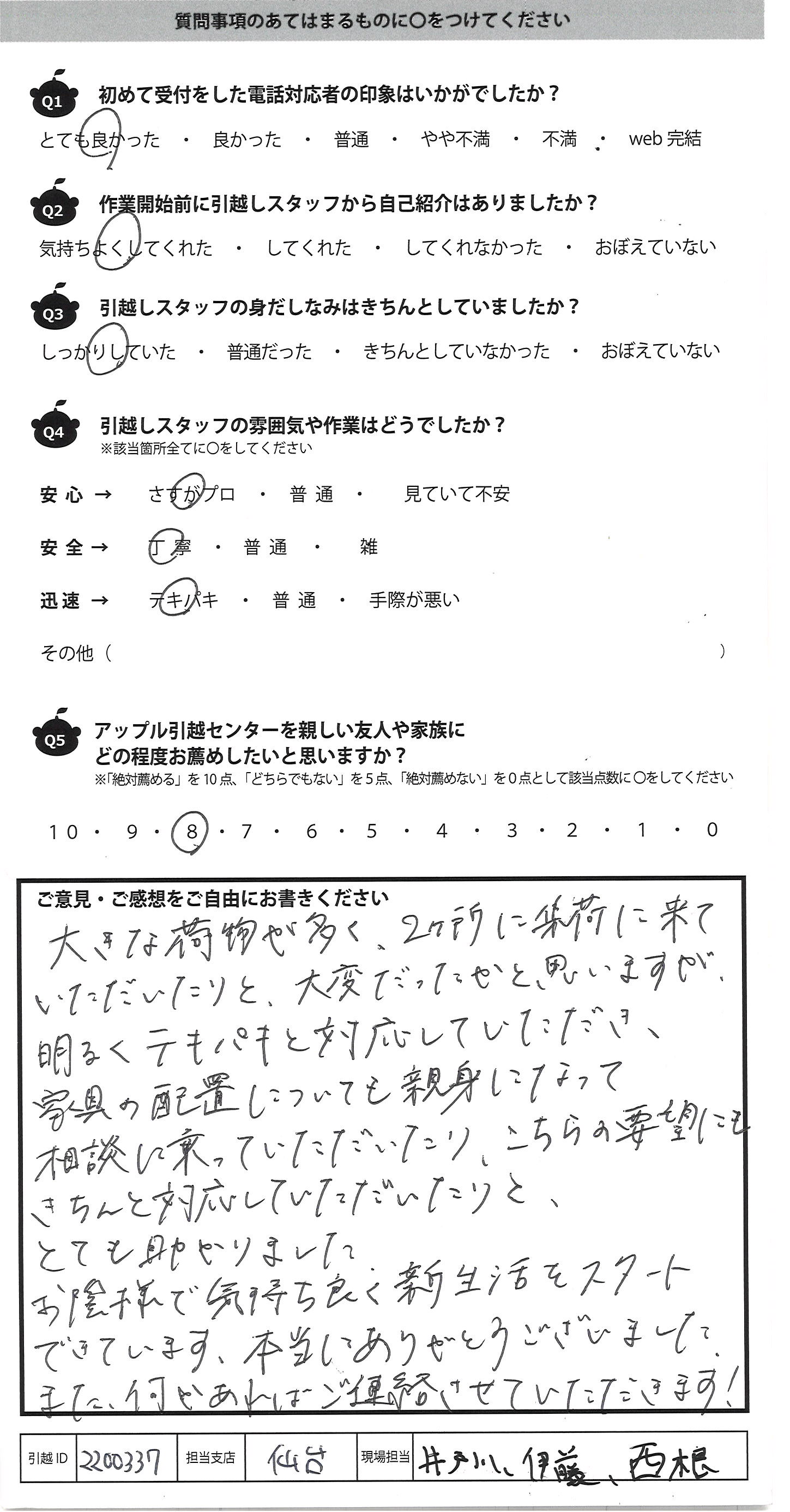 アップル引越センターでは、面映いお褒めの言葉も、胸に突き刺さるお叱りのコメントも、