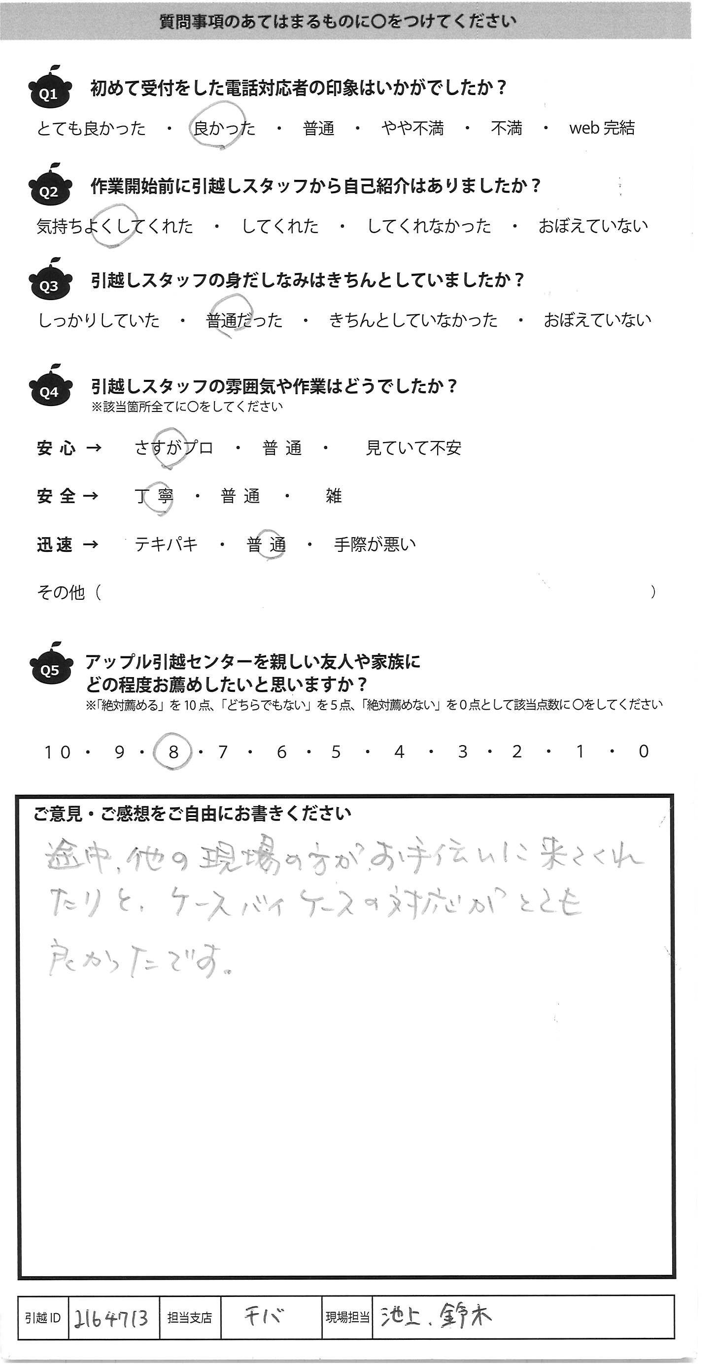 A.途中、他の現場の方がお手伝いに来てくれ たりと、ケースバイケースの対応がとても 良かったです。