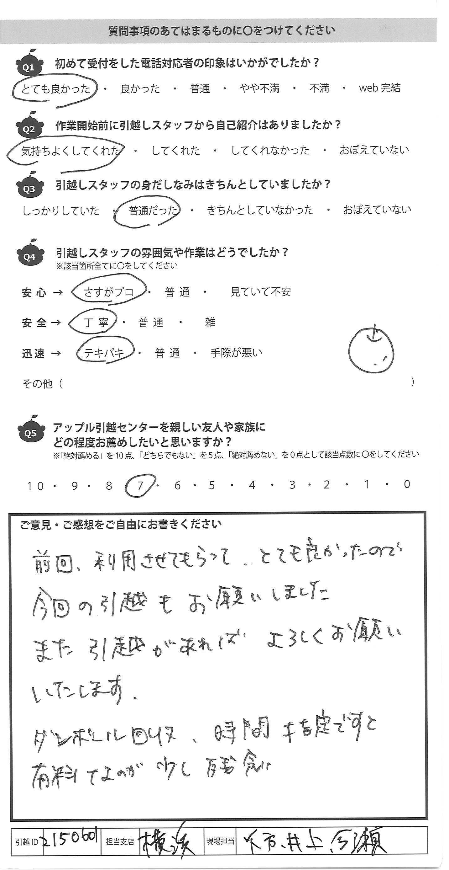 アップル引越センターでは、面映いお褒めの言葉も、胸に突き刺さるお叱りのコメントも、