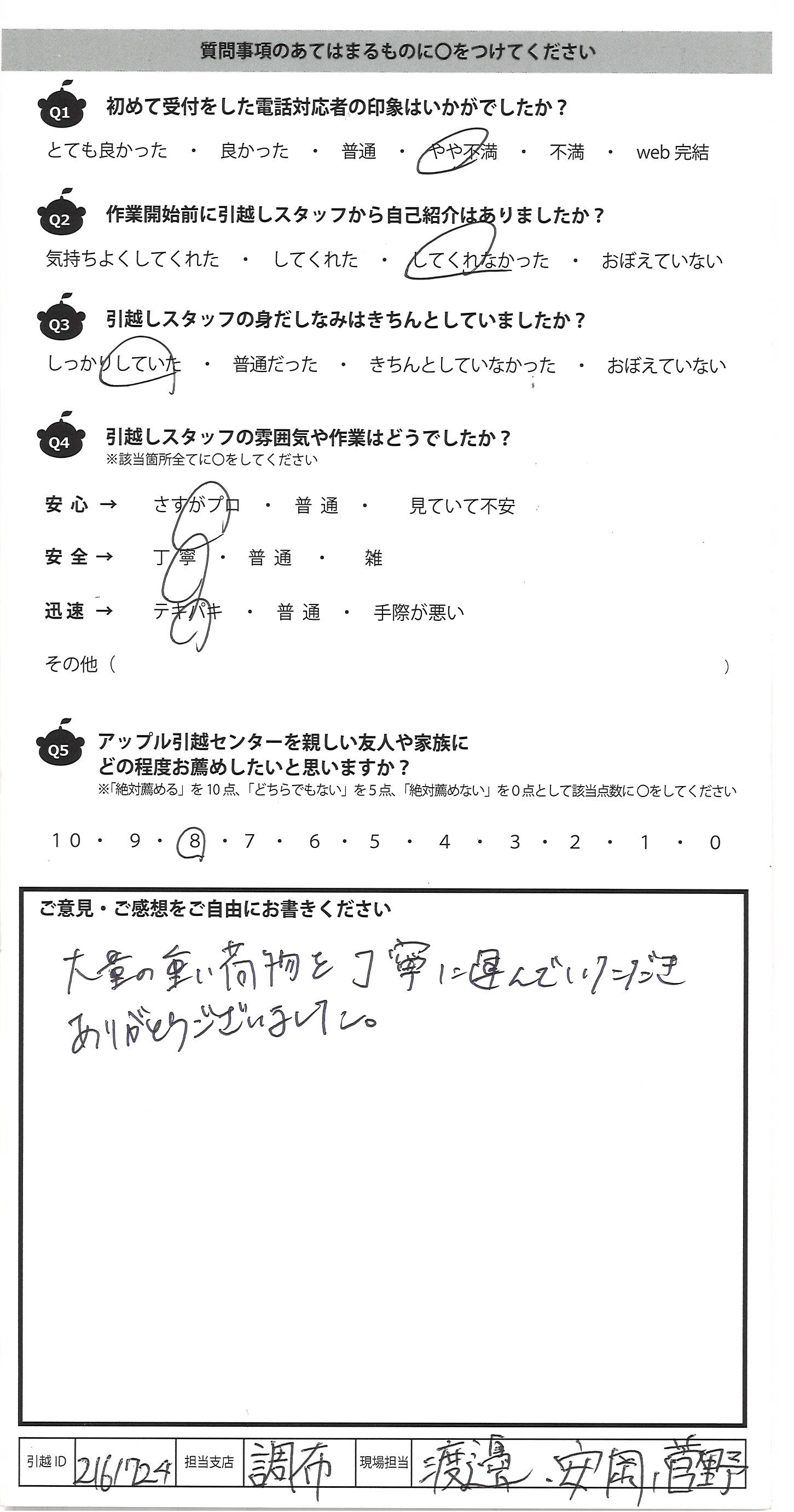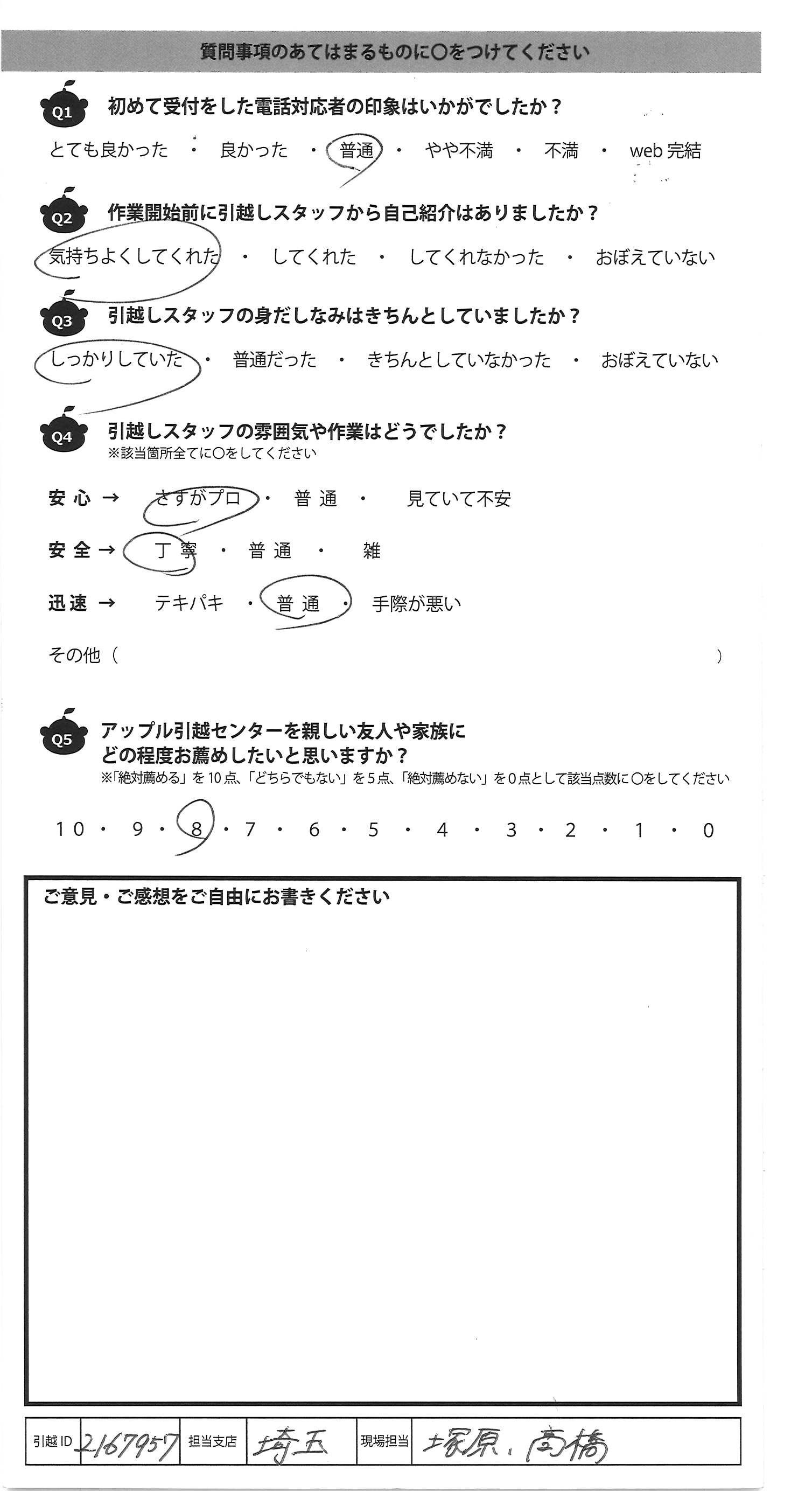アップル引越センターでは、面映いお褒めの言葉も、胸に突き刺さるお叱りのコメントも、