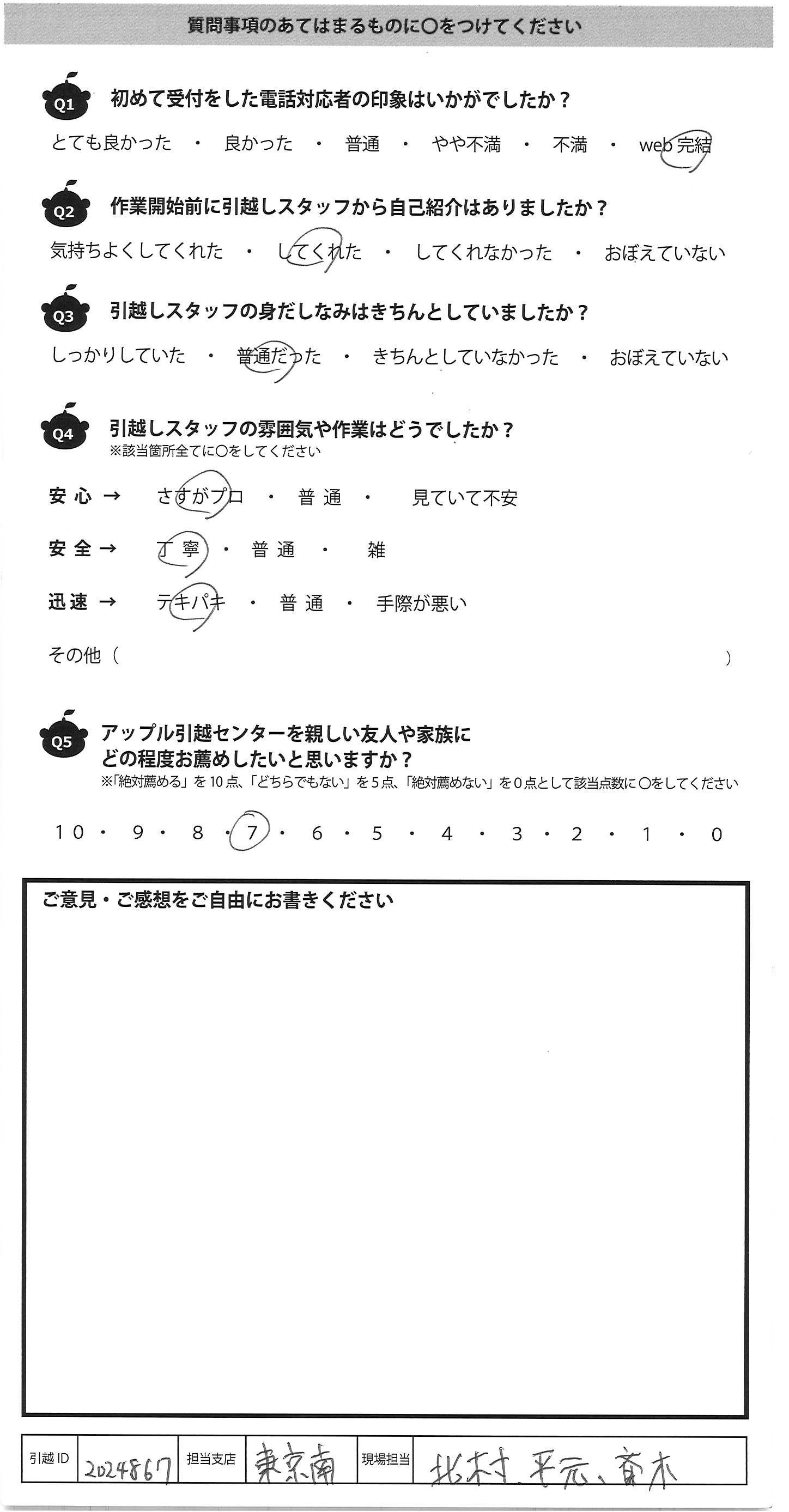 アップル引越センターでは、面映いお褒めの言葉も、胸に突き刺さるお叱りのコメントも、