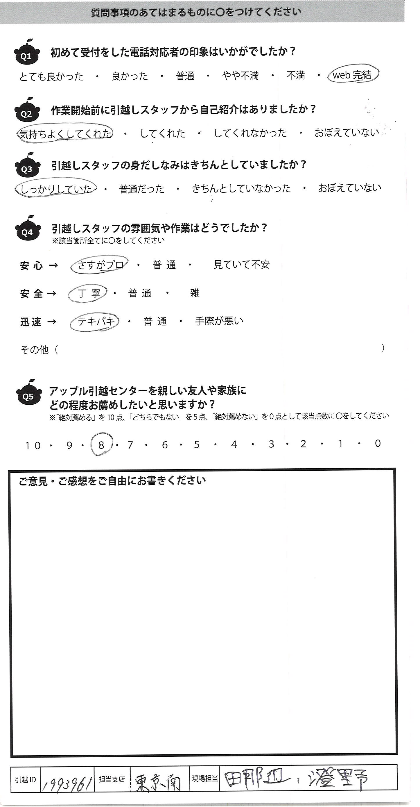 アップル引越センターでは、面映いお褒めの言葉も、胸に突き刺さるお叱りのコメントも、