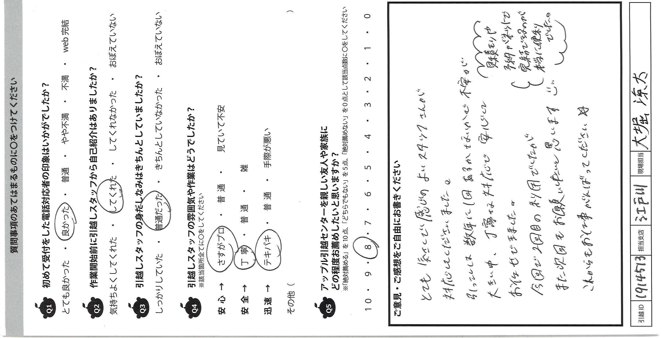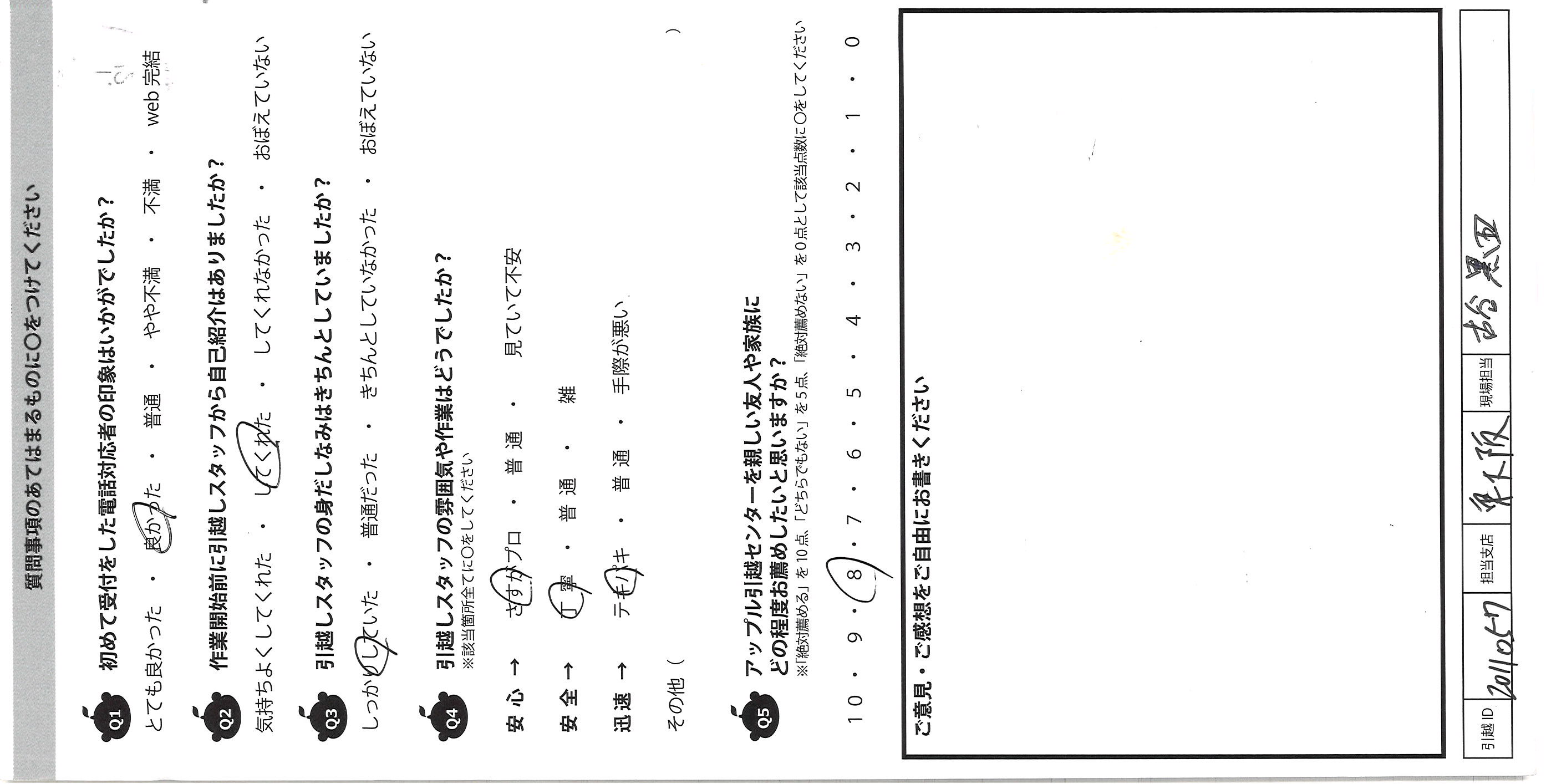 アップル引越センターでは、面映いお褒めの言葉も、胸に突き刺さるお叱りのコメントも、