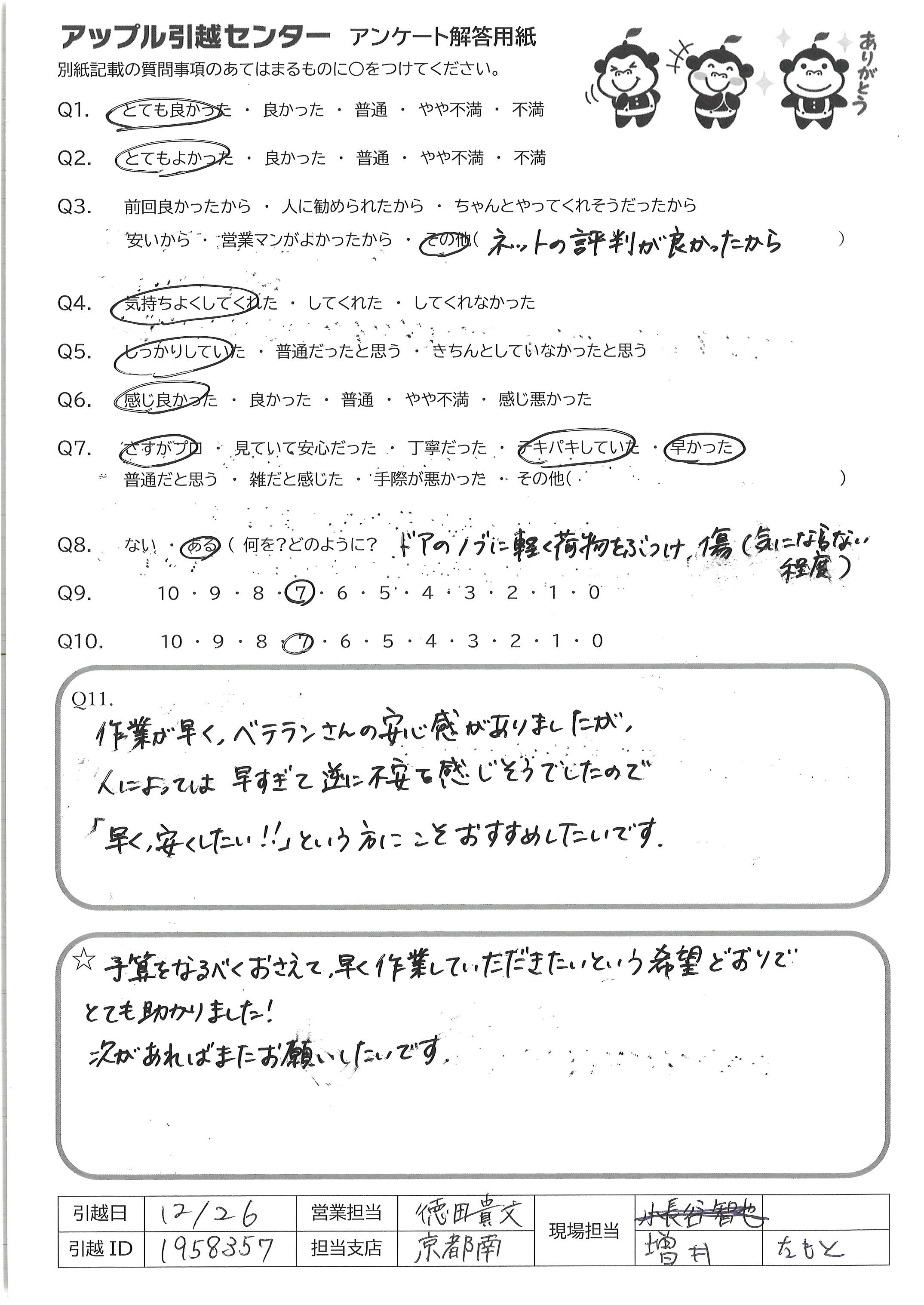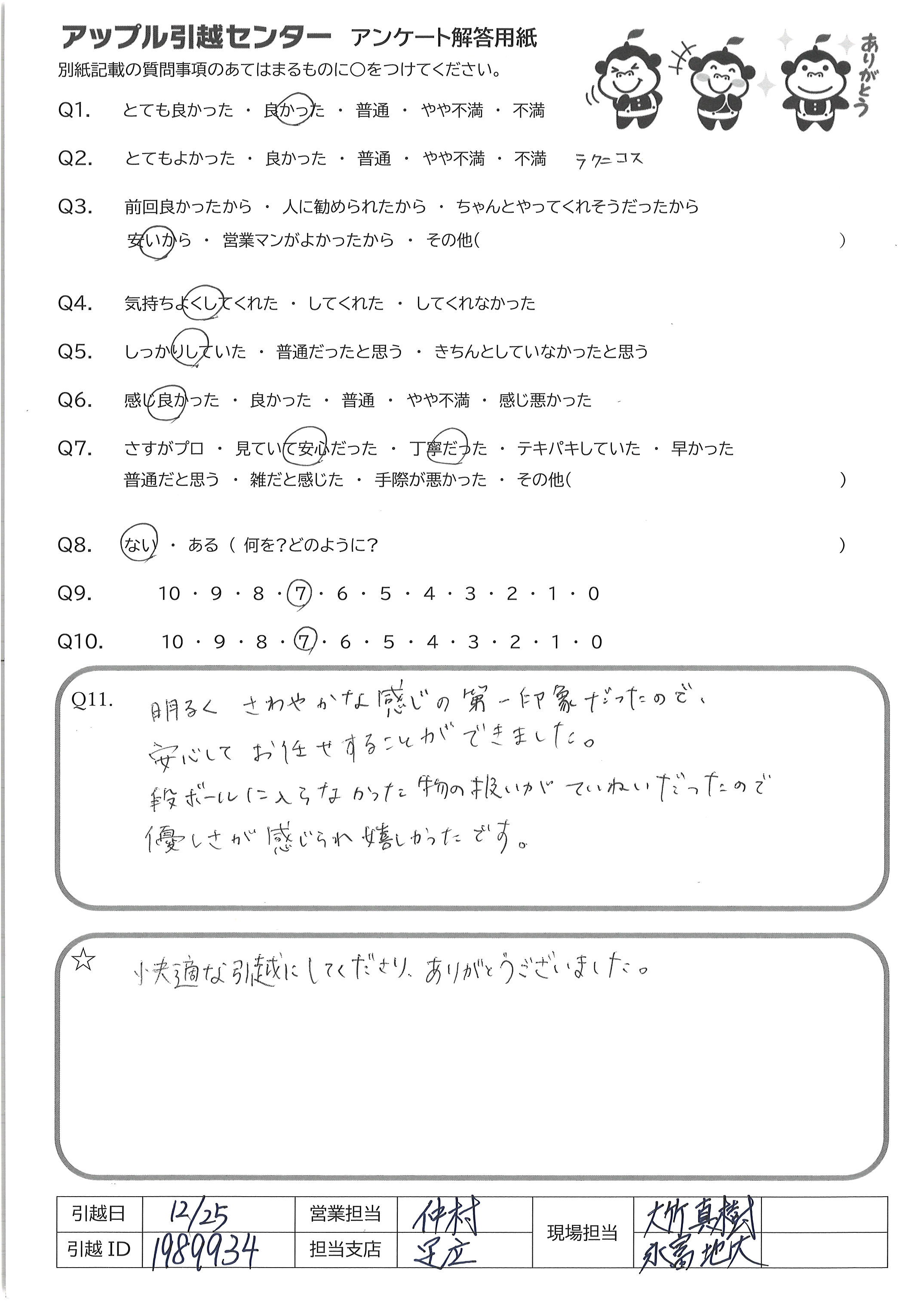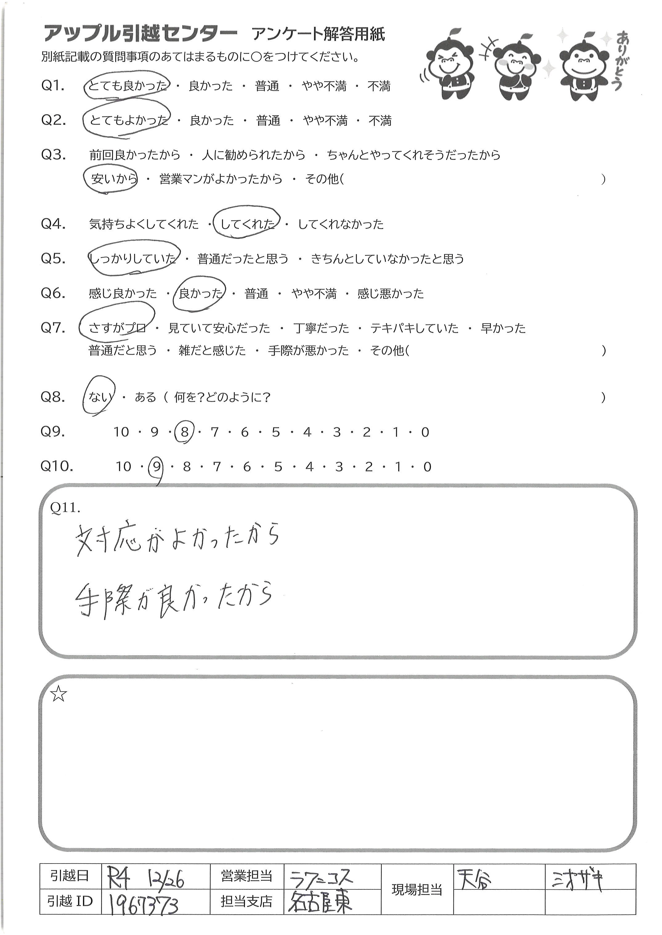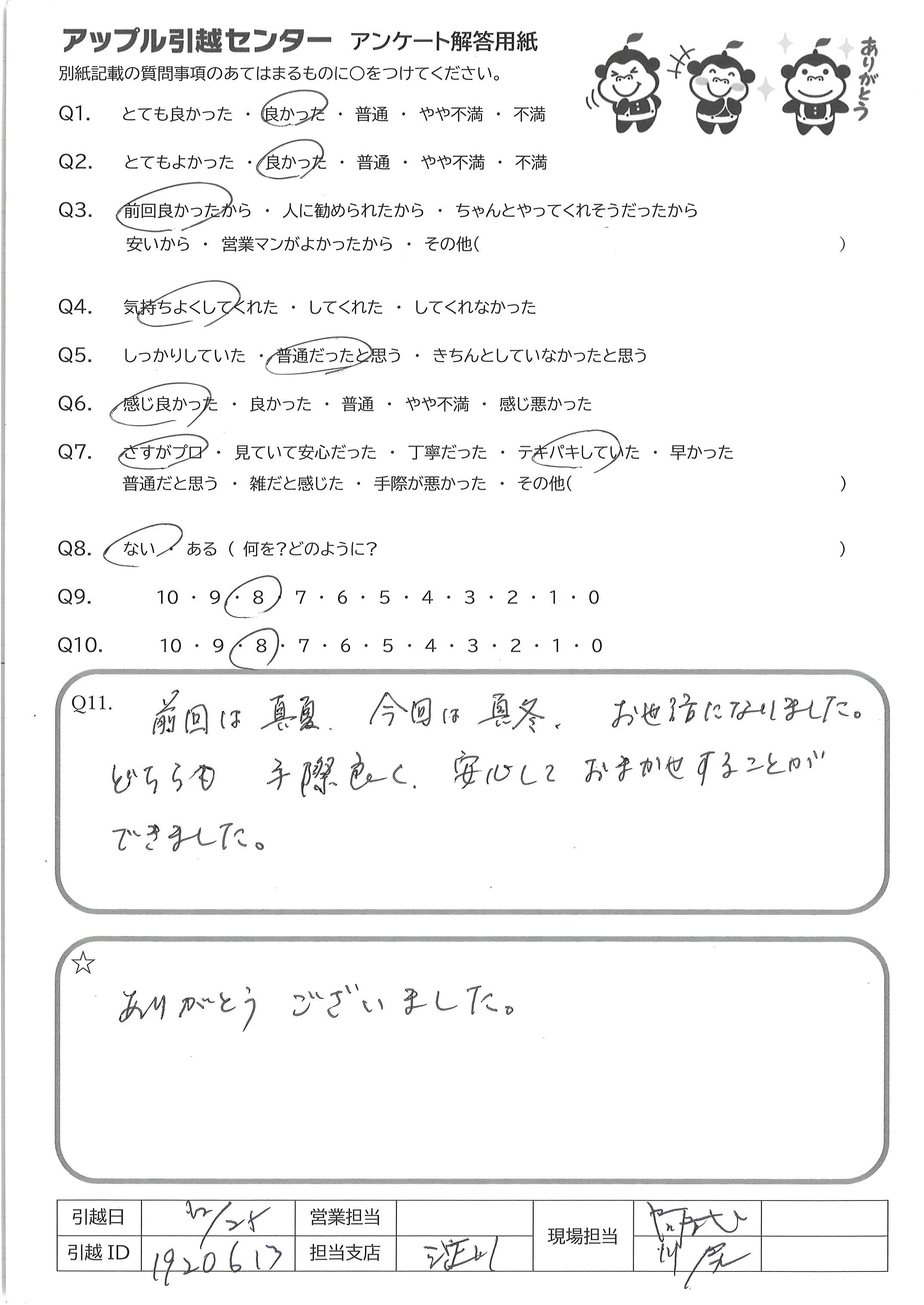 A.快適な引越にしてくださりありがとうございました