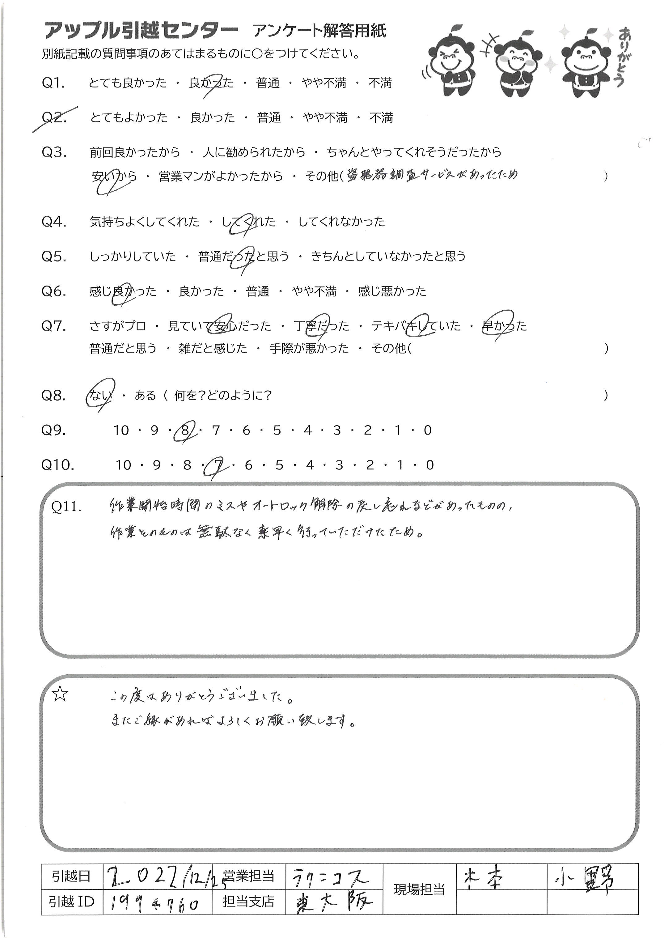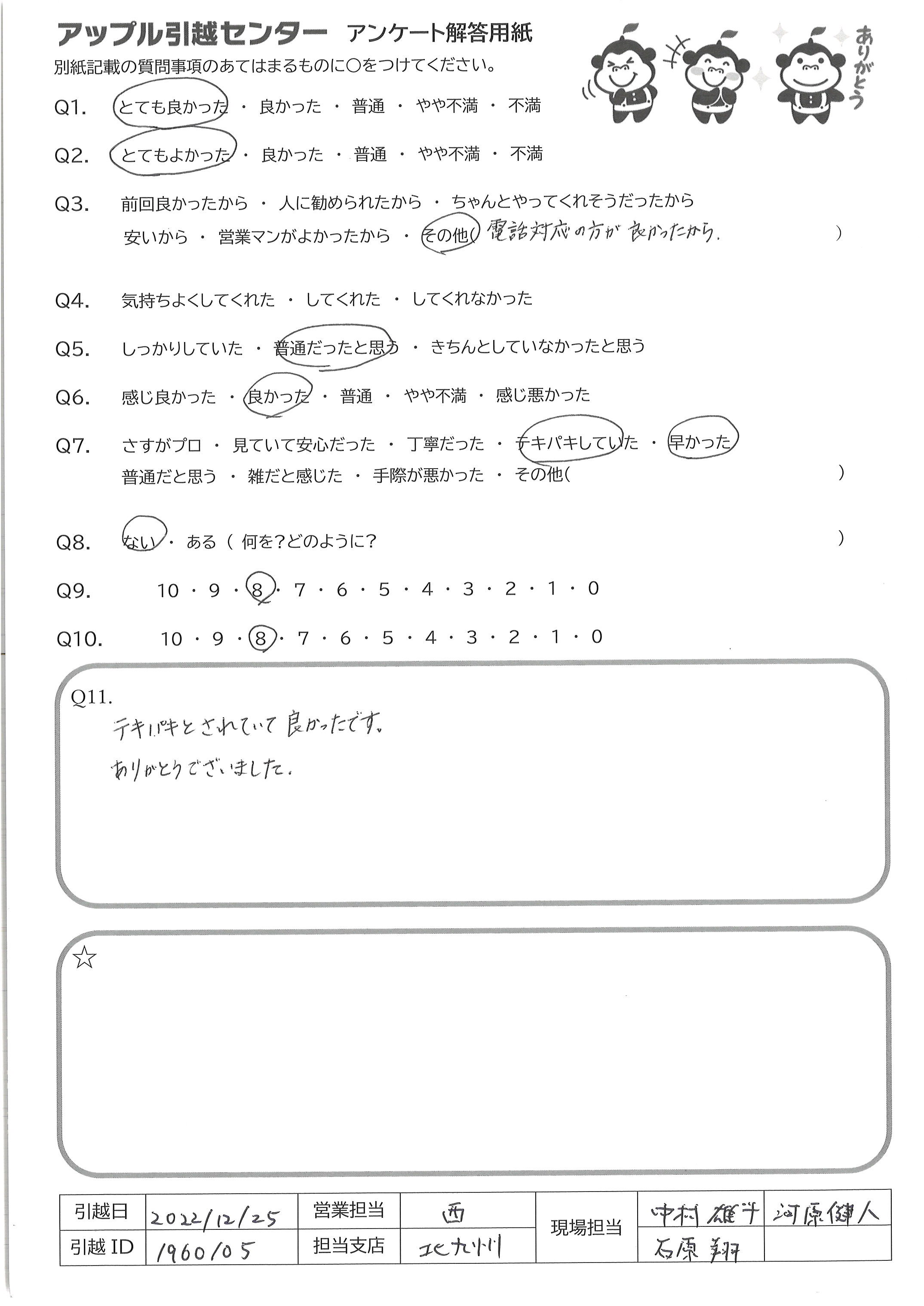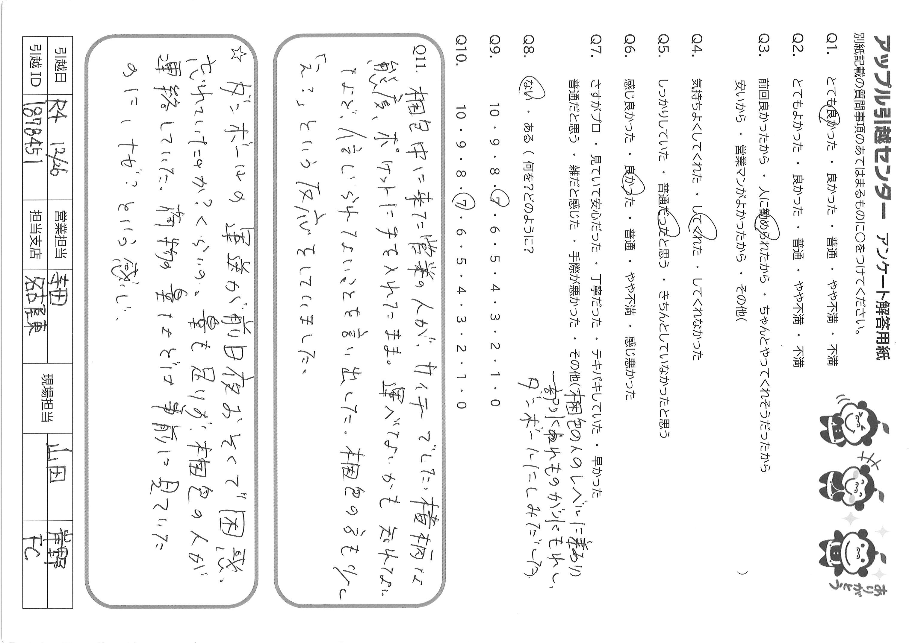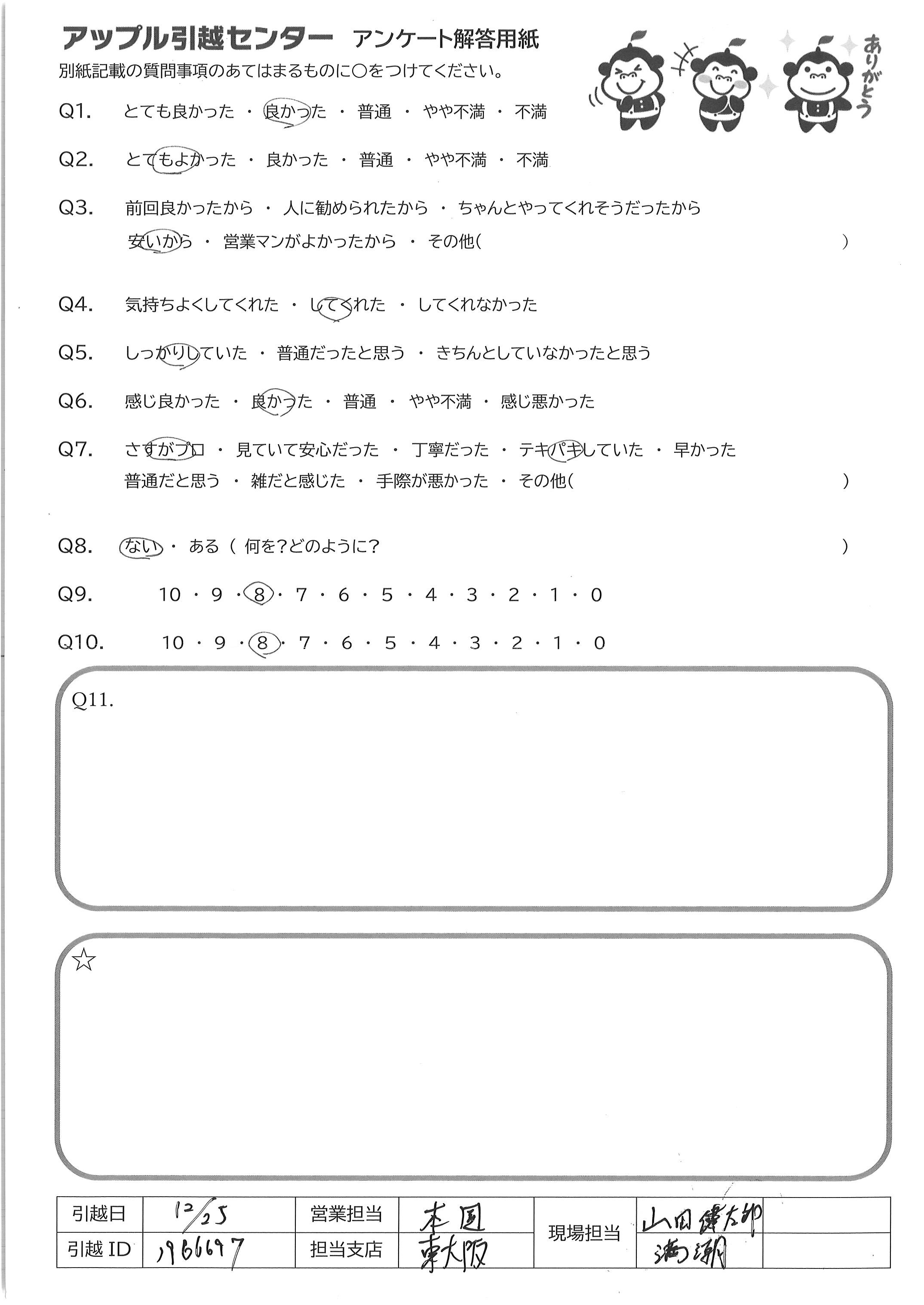 A.快適な引越にしてくださりありがとうございました