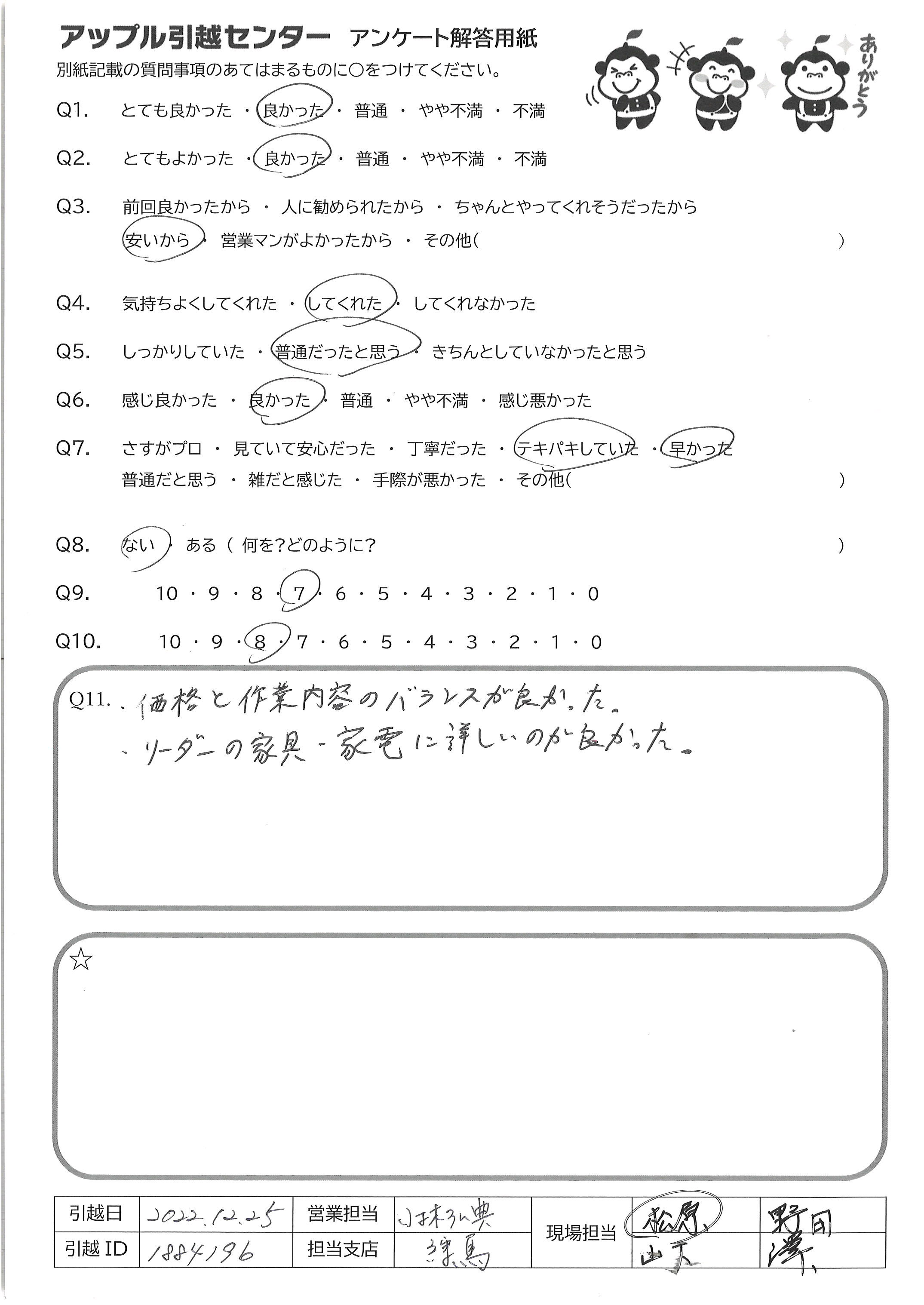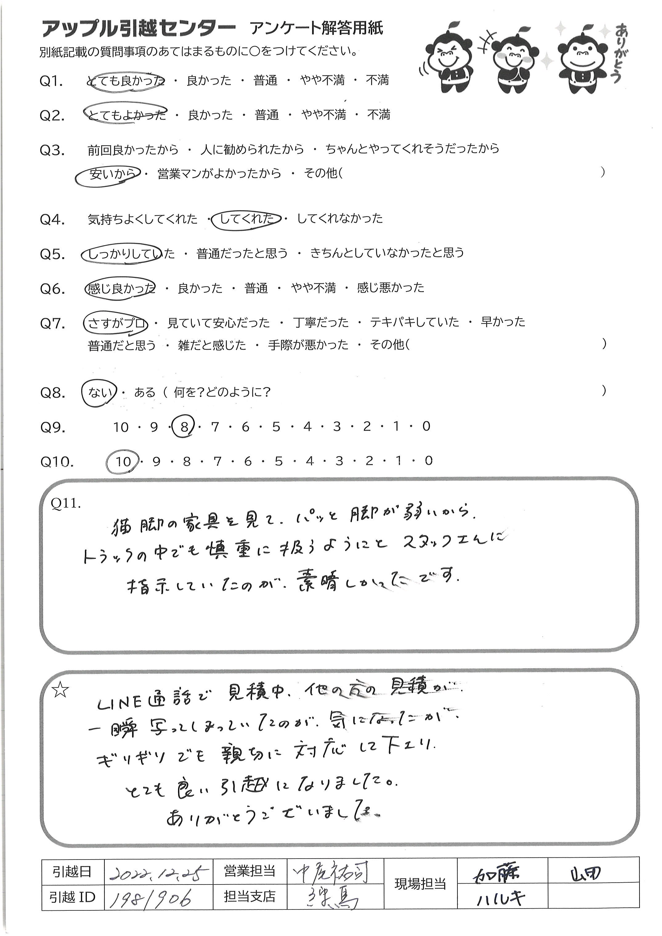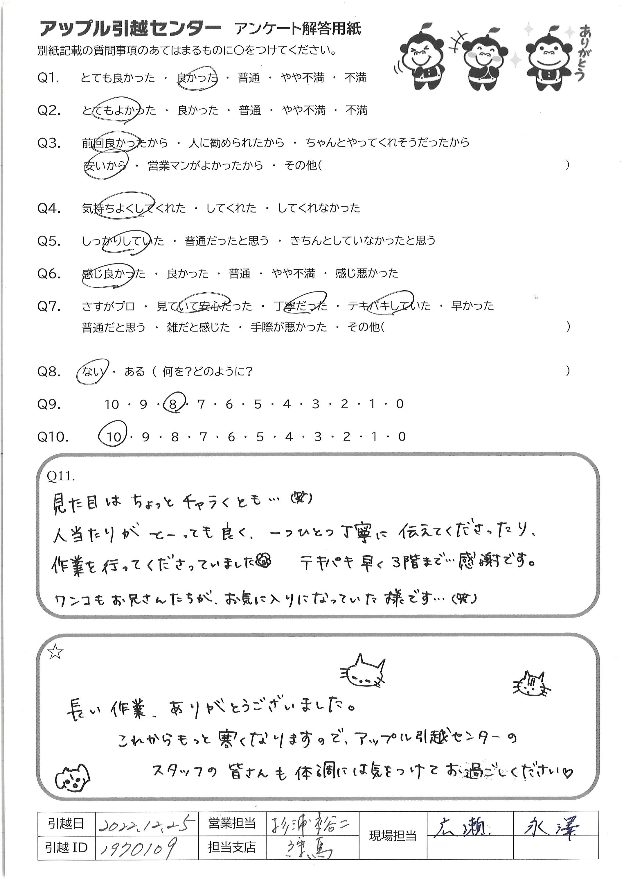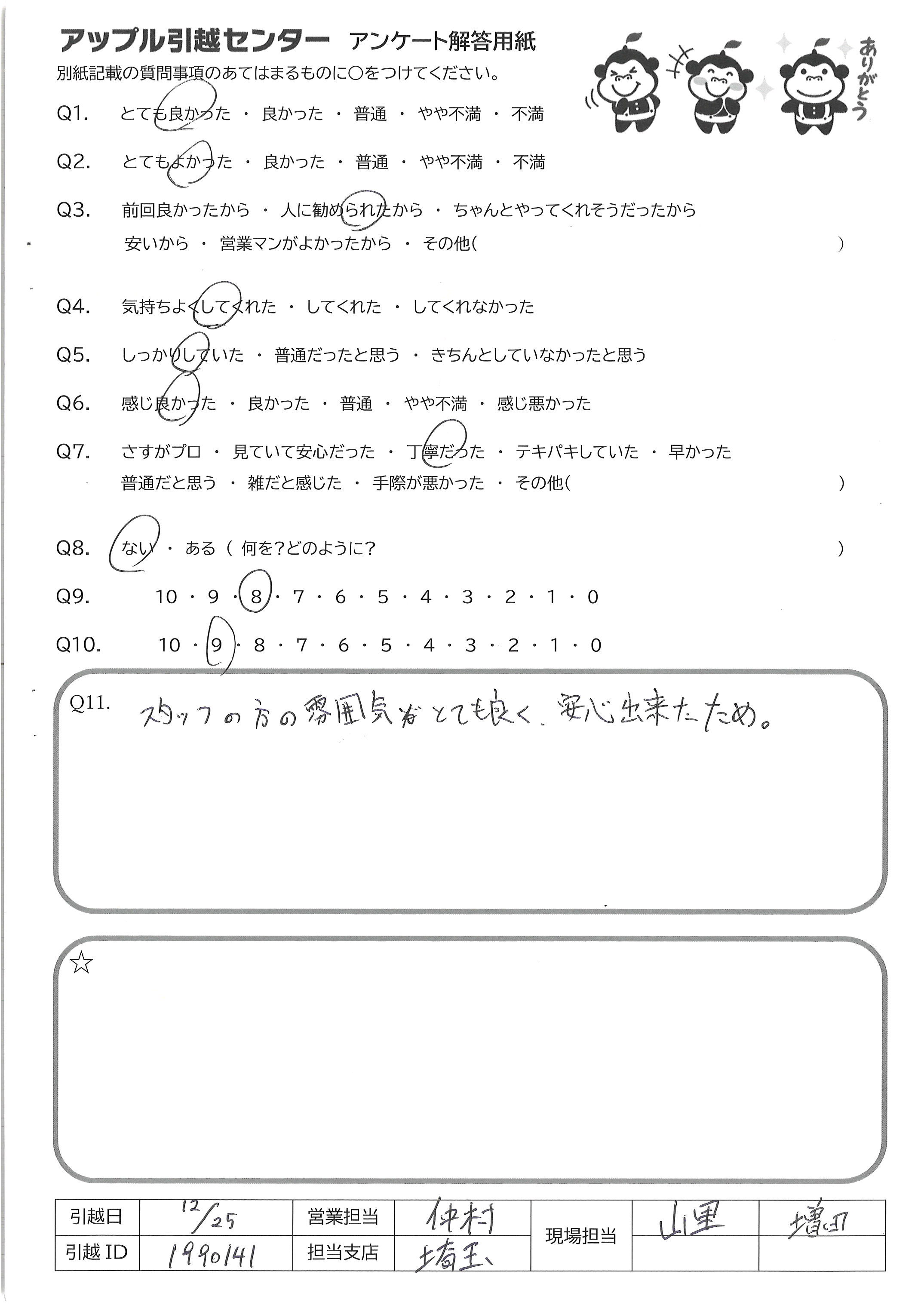 A.快適な引越にしてくださりありがとうございました