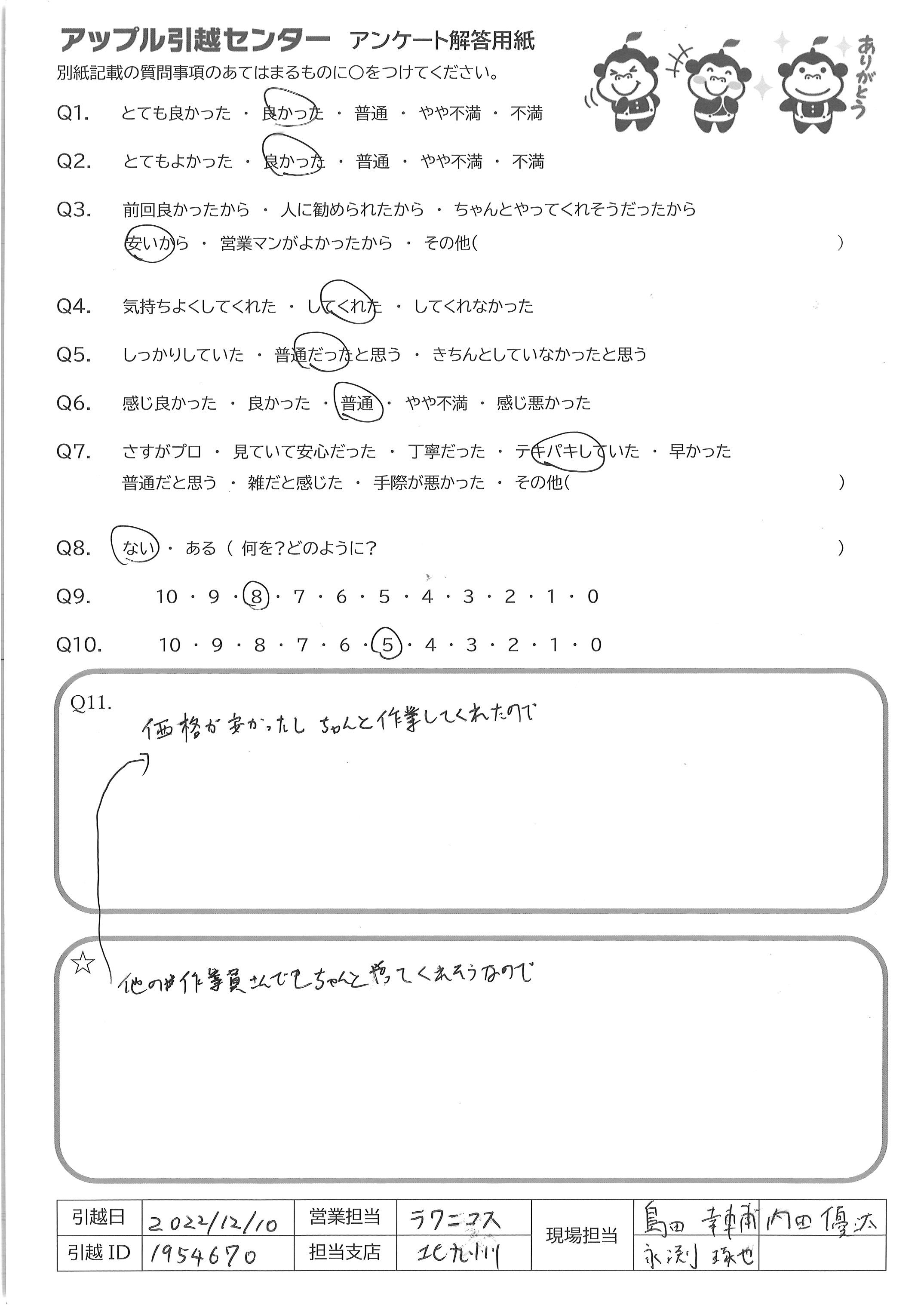 引越し日:2022年12月10日 エリア:福岡県北九州市小倉北区