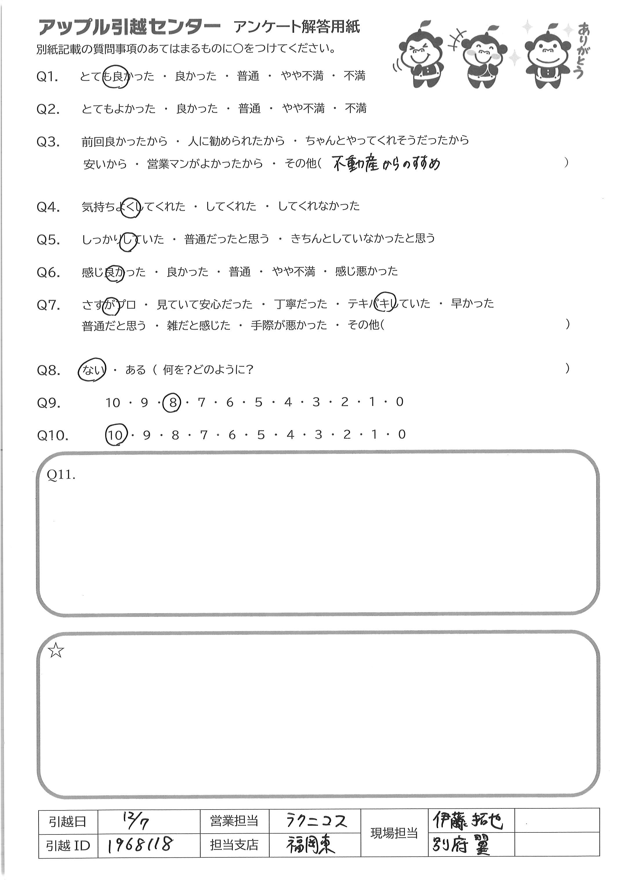 引越し日:2022年12月10日 エリア:福岡県福岡市南区