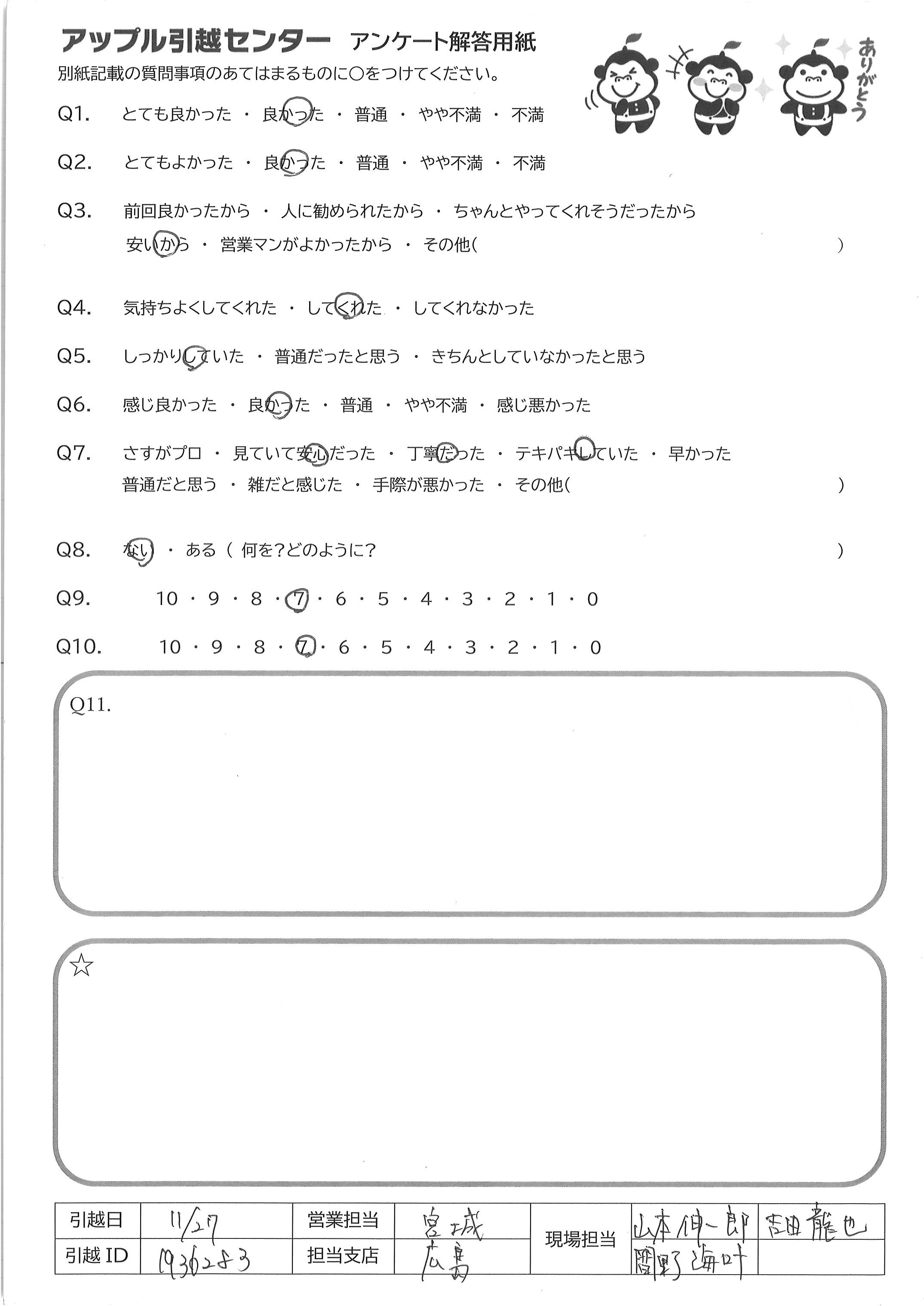 引越し日:2022年11月27日 エリア:広島県広島市中区