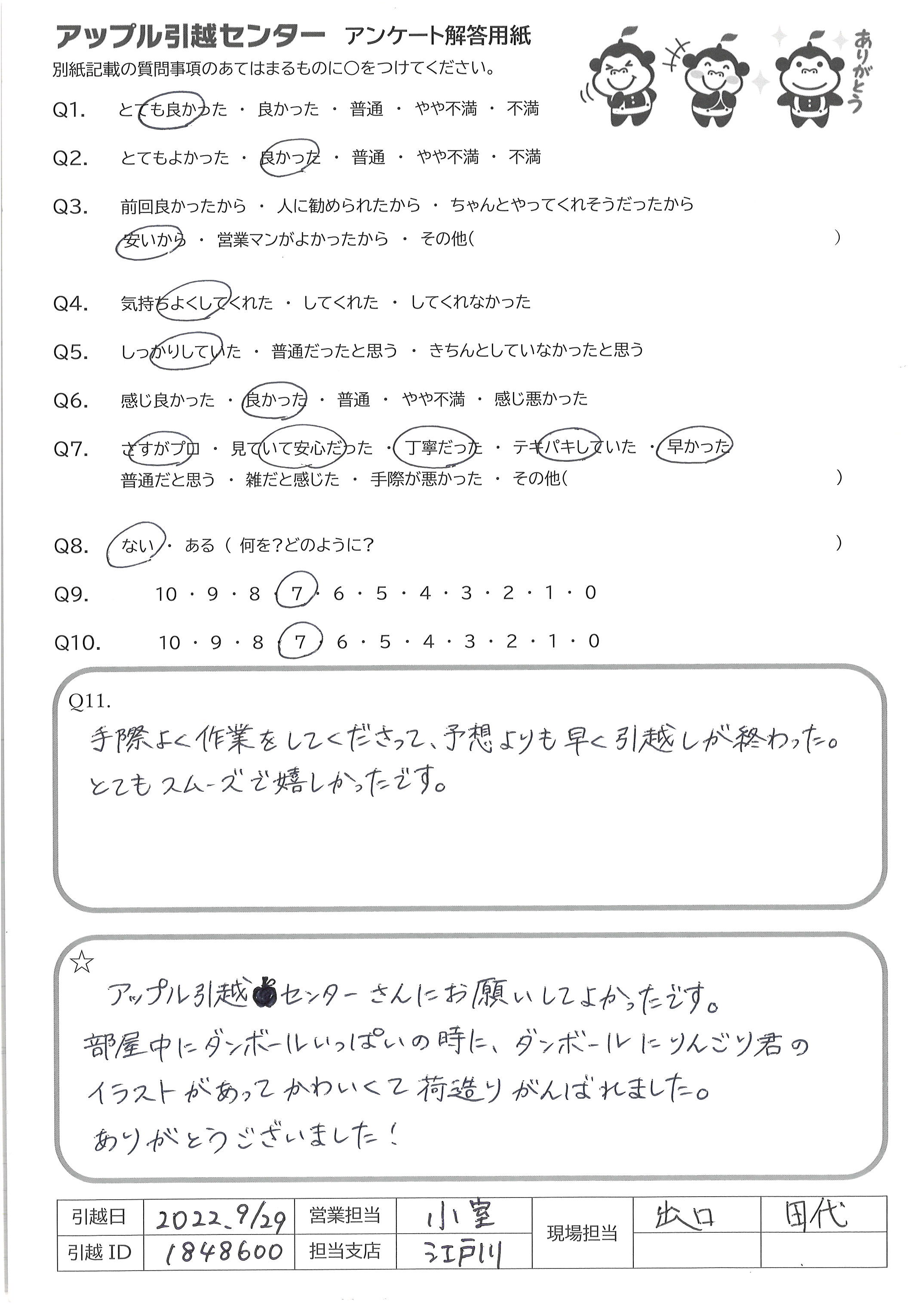 引越し日:2022年09月29日 エリア:東京都江戸川区