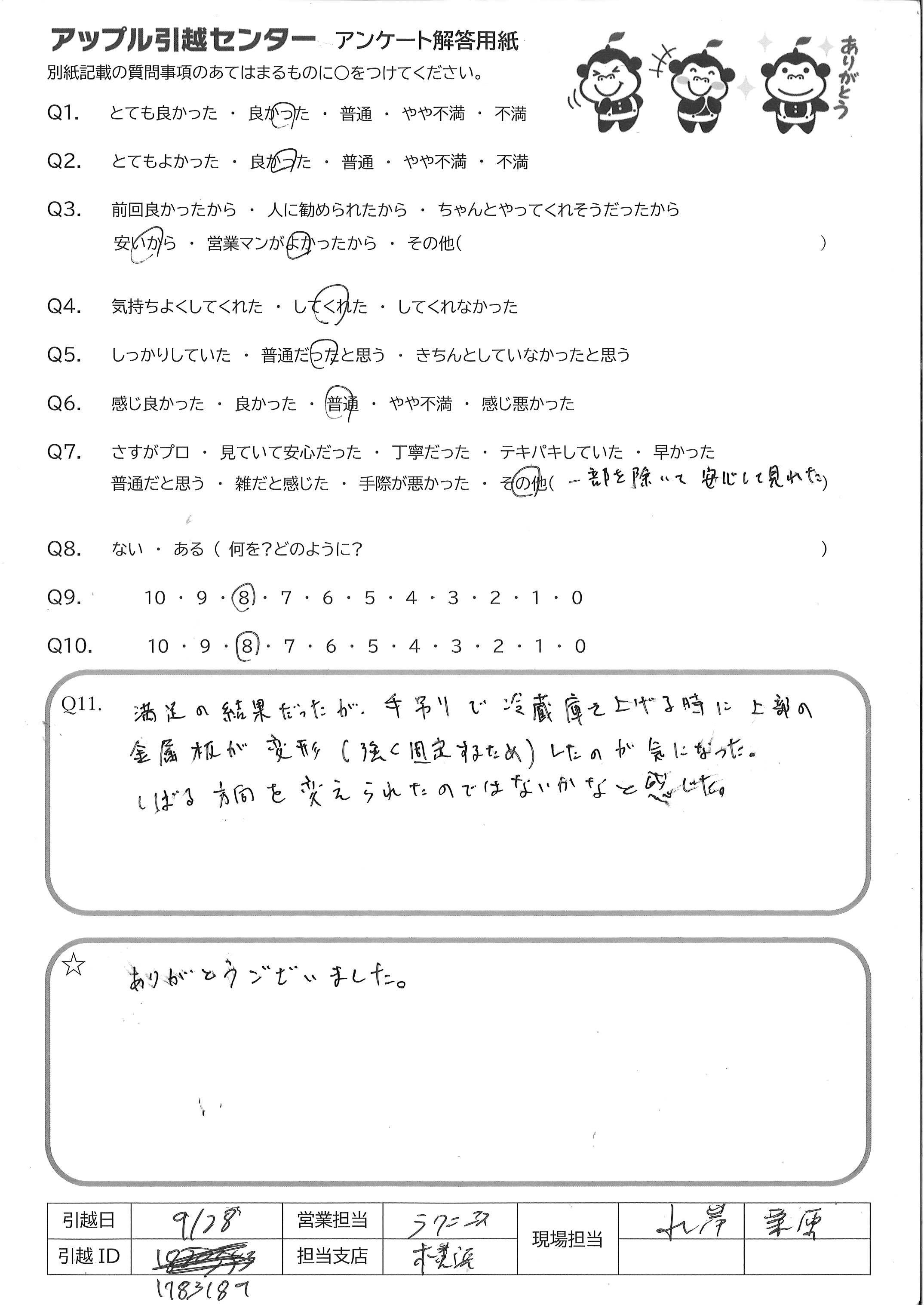 引越し日:2022年09月28日 エリア:神奈川県横浜市神奈川区