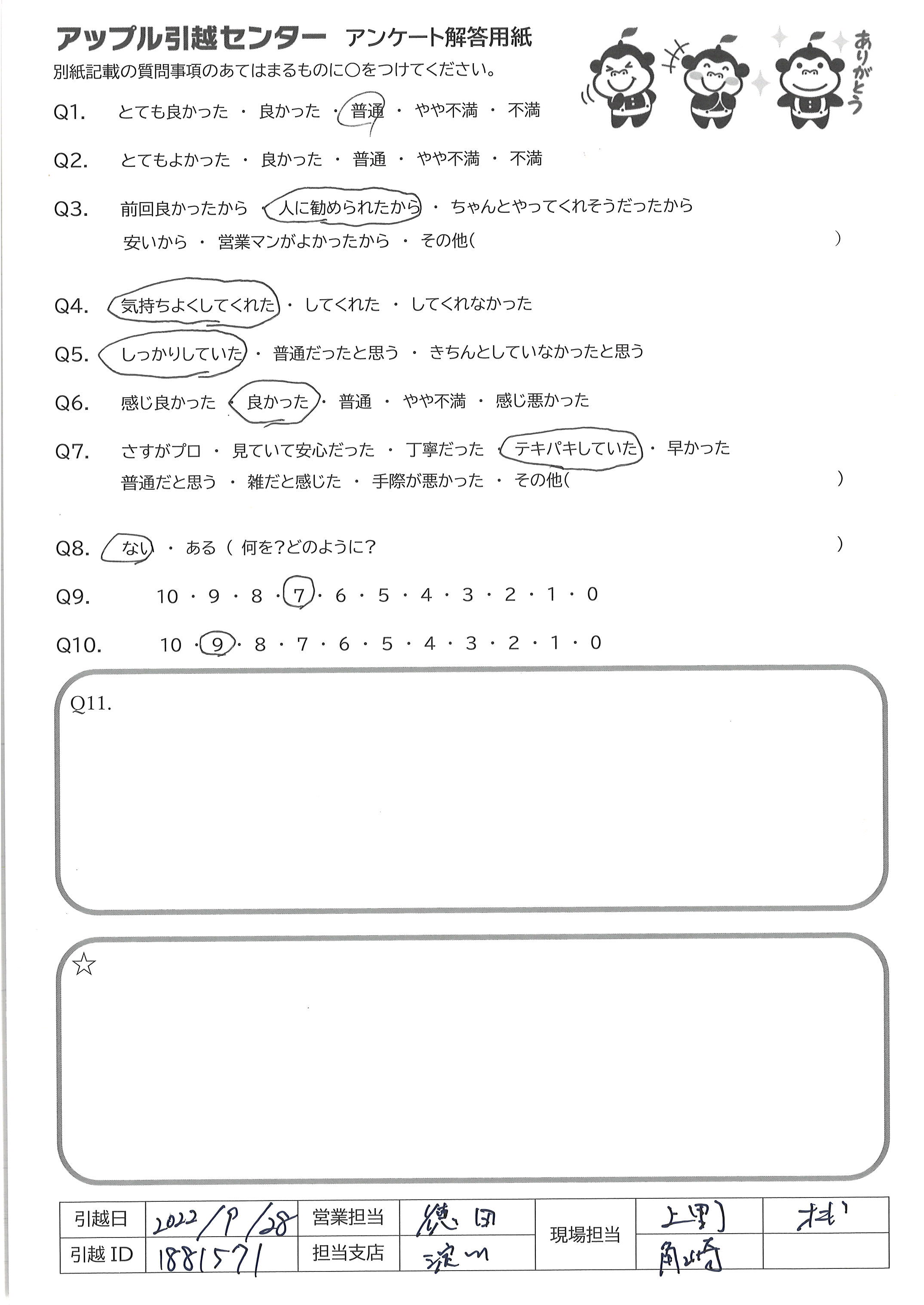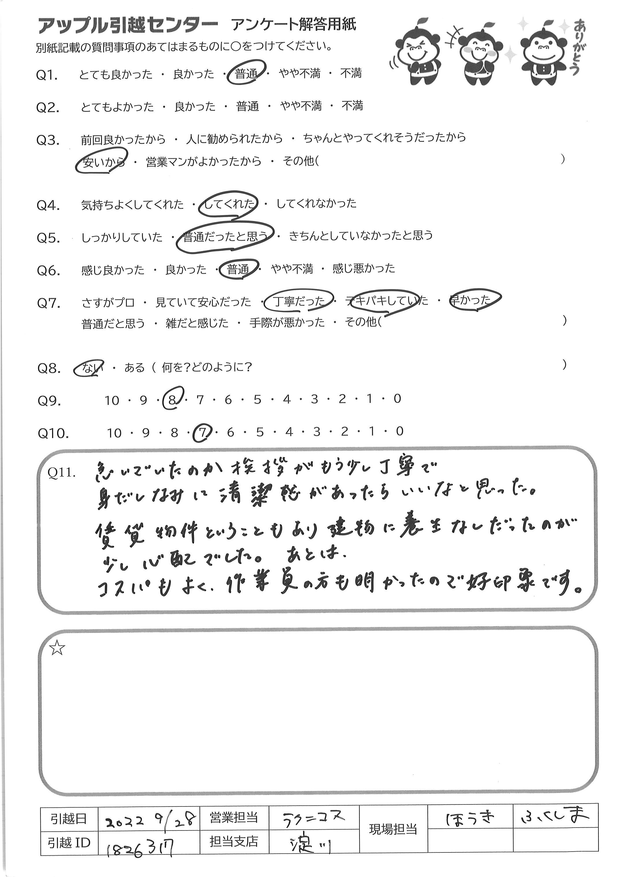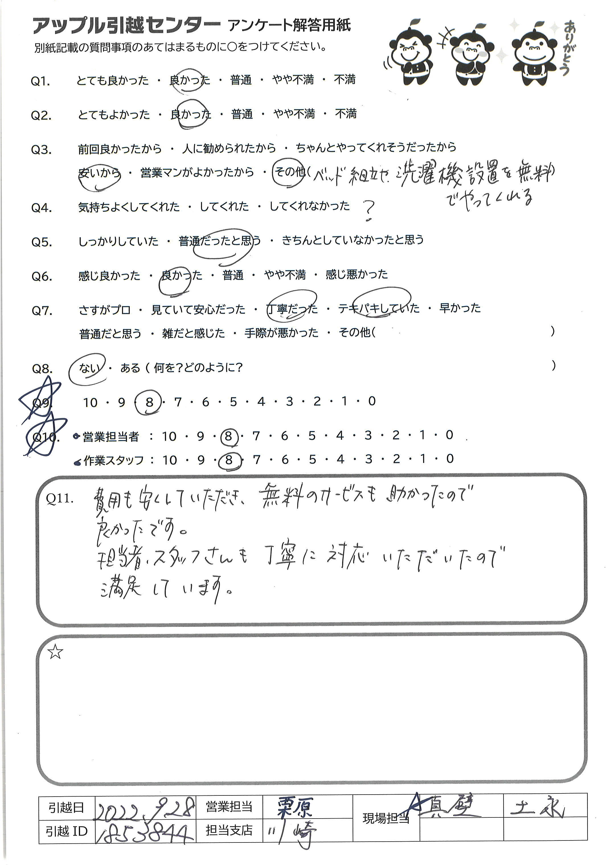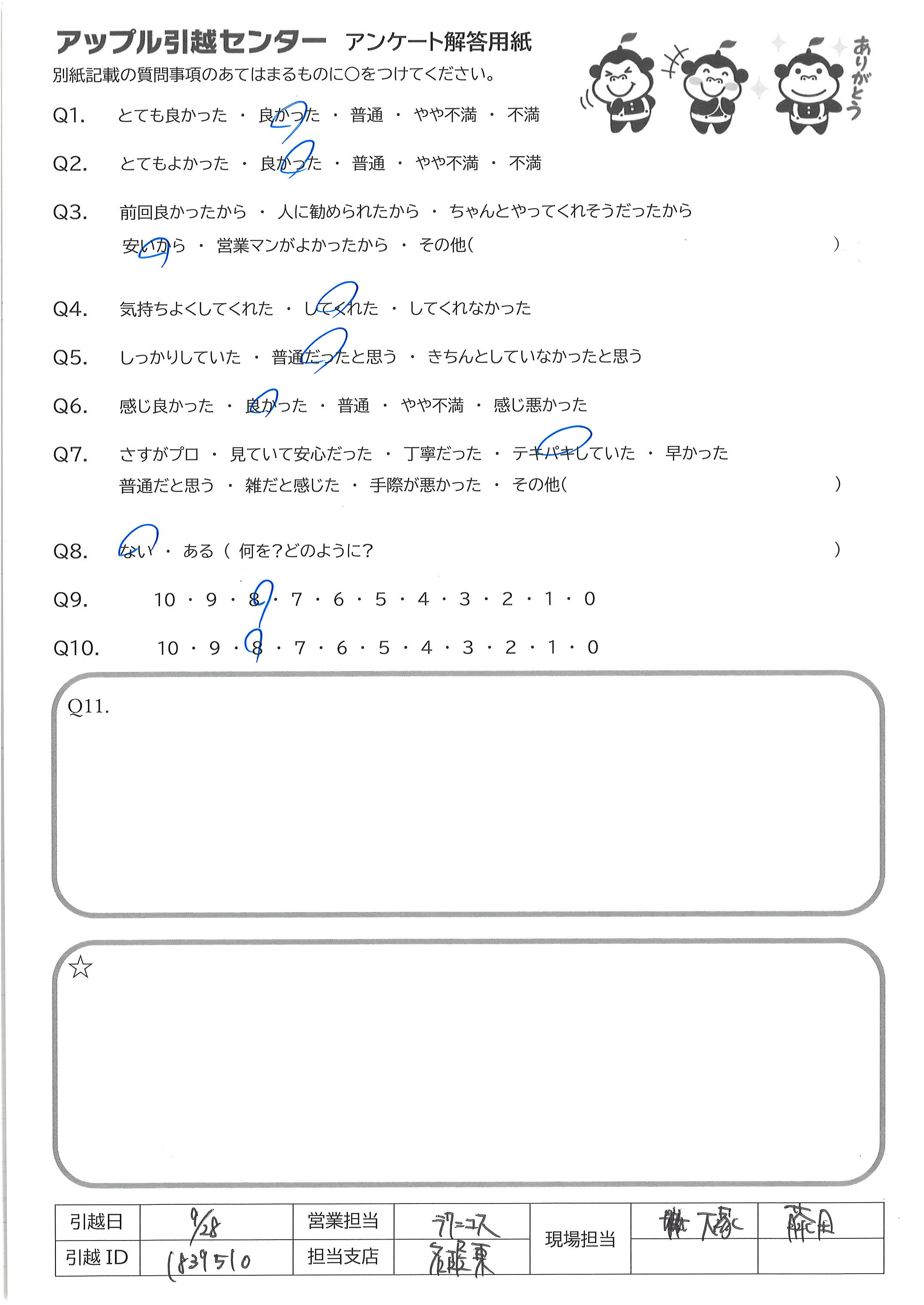 A.とても気持ちよく引越しできました。 ありがとうございました。