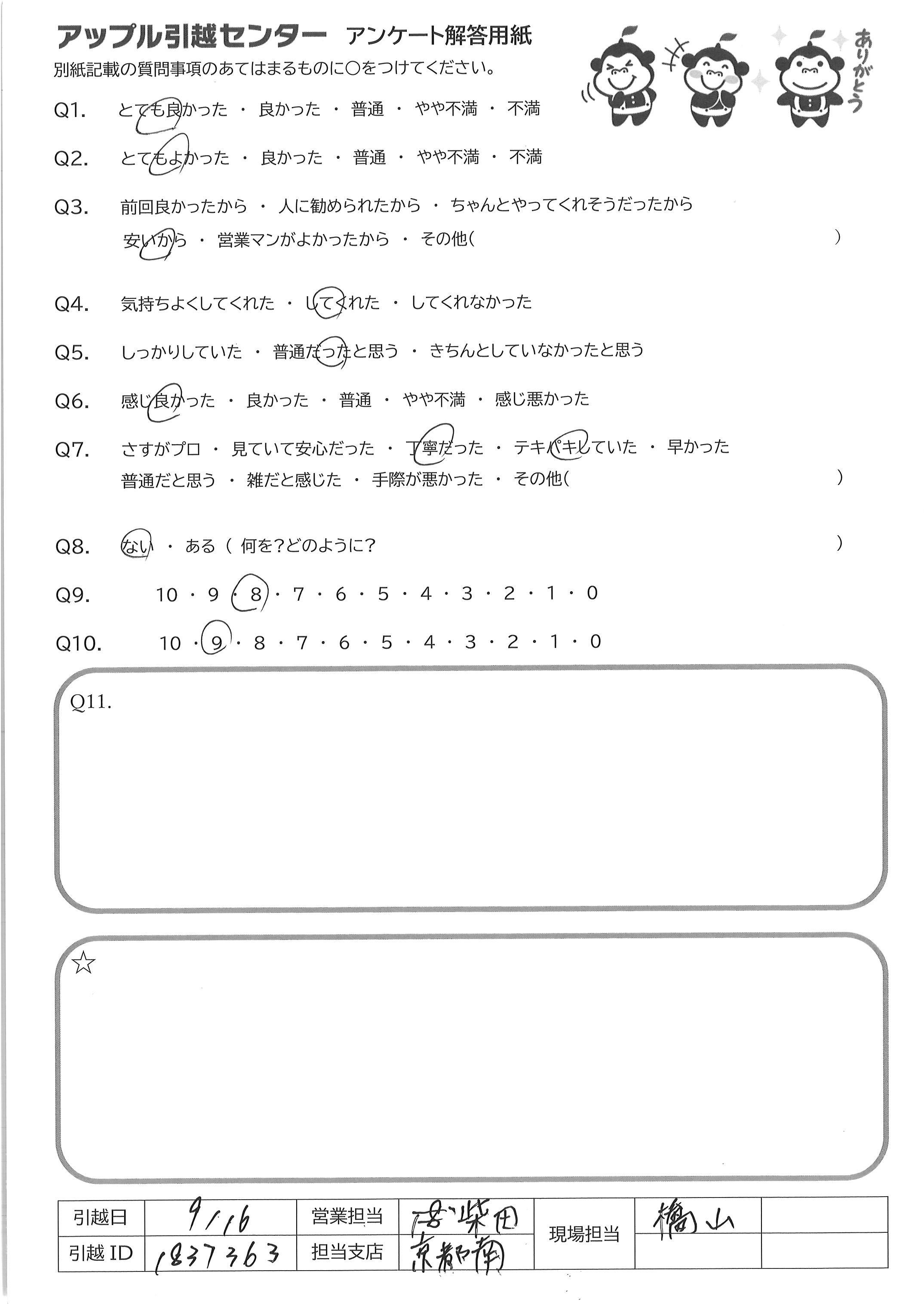 引越し日:2022年09月16日 エリア:京都府京都市西京区