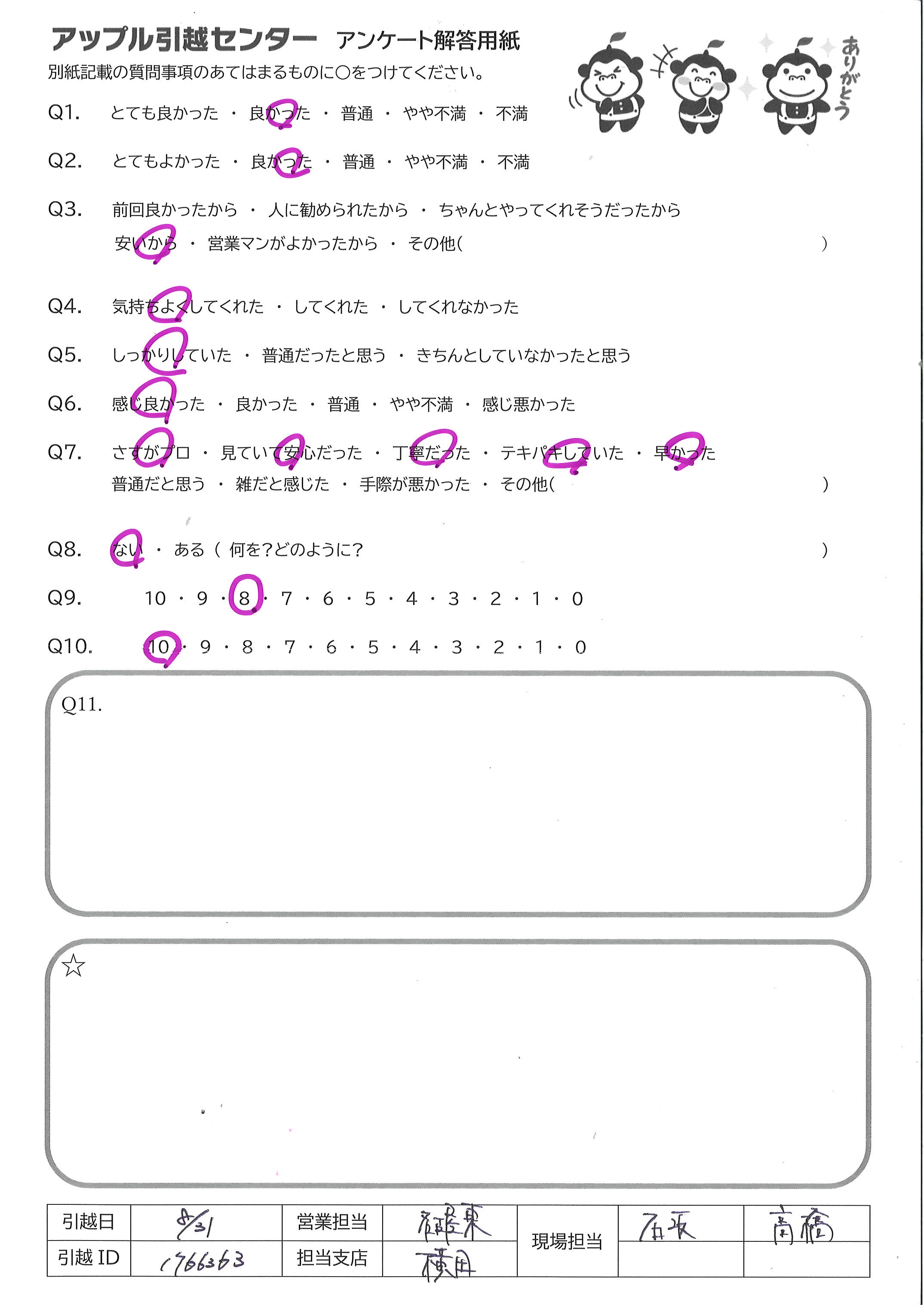 アップル引越センターでは、面映いお褒めの言葉も、胸に突き刺さるお叱りのコメントも、