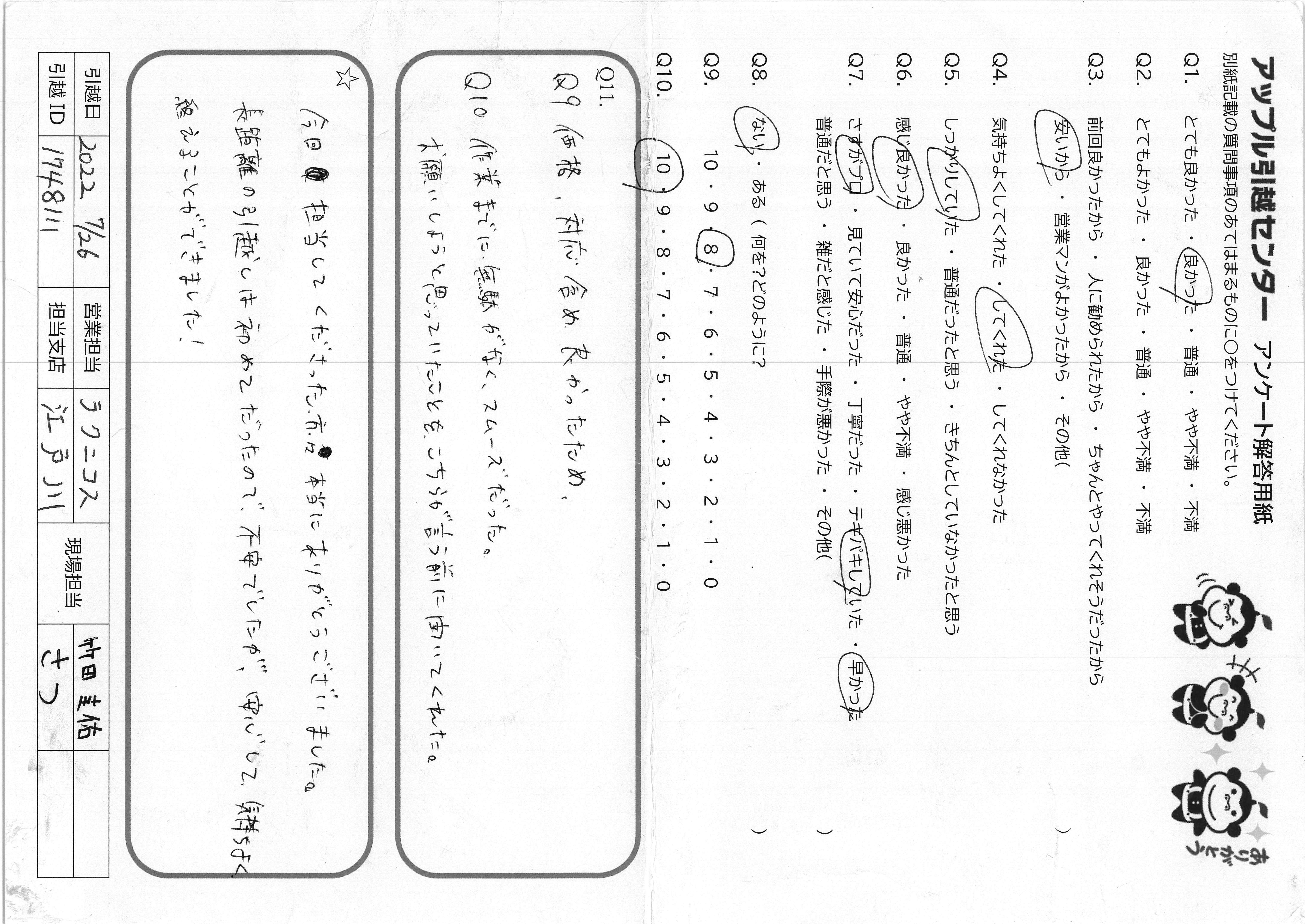 引越し日:2022年07月26日 エリア:東京都江戸川区