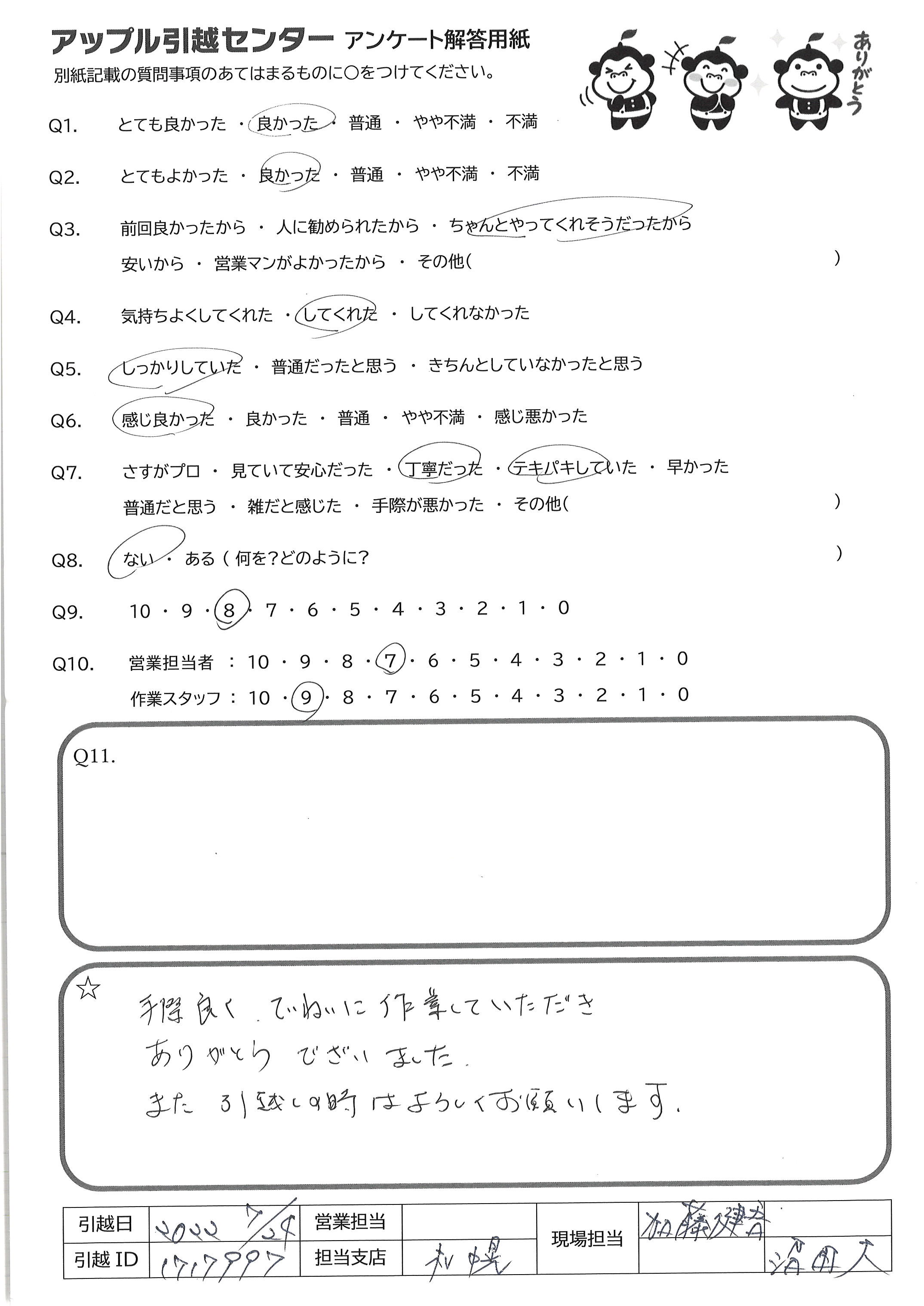 A.手際良くていねいに作業していただき ありがとうございまいた また引越しの時はよろしくお願いします