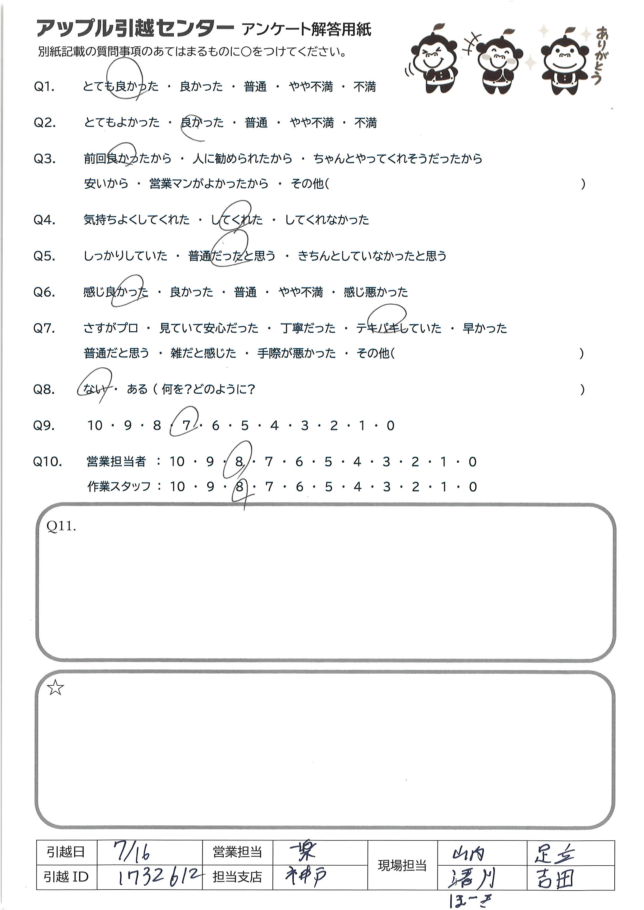 引越し日:2022年07月16日 エリア:兵庫県神戸市灘区