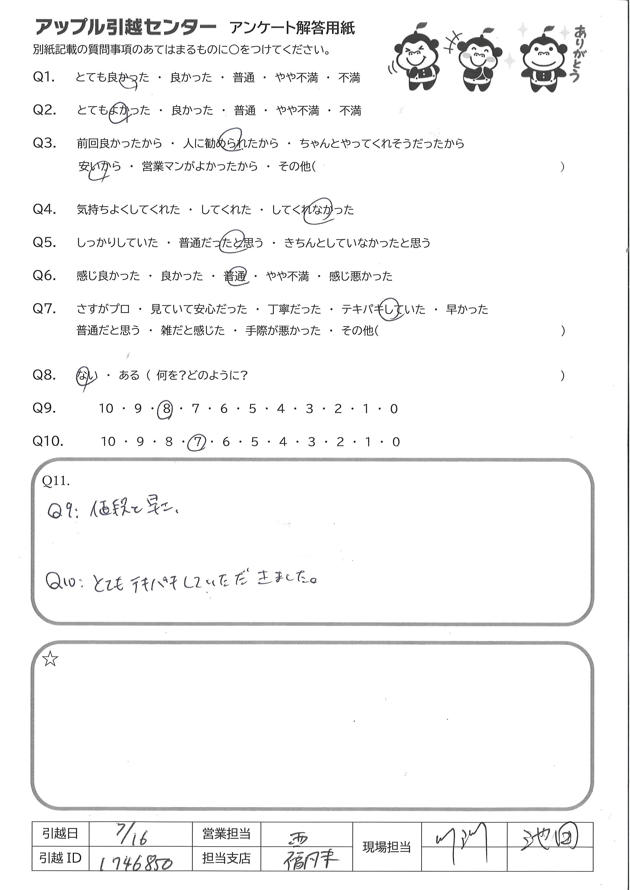 A.Q9:値段と早さ Q:とてもテキパキしていただきました