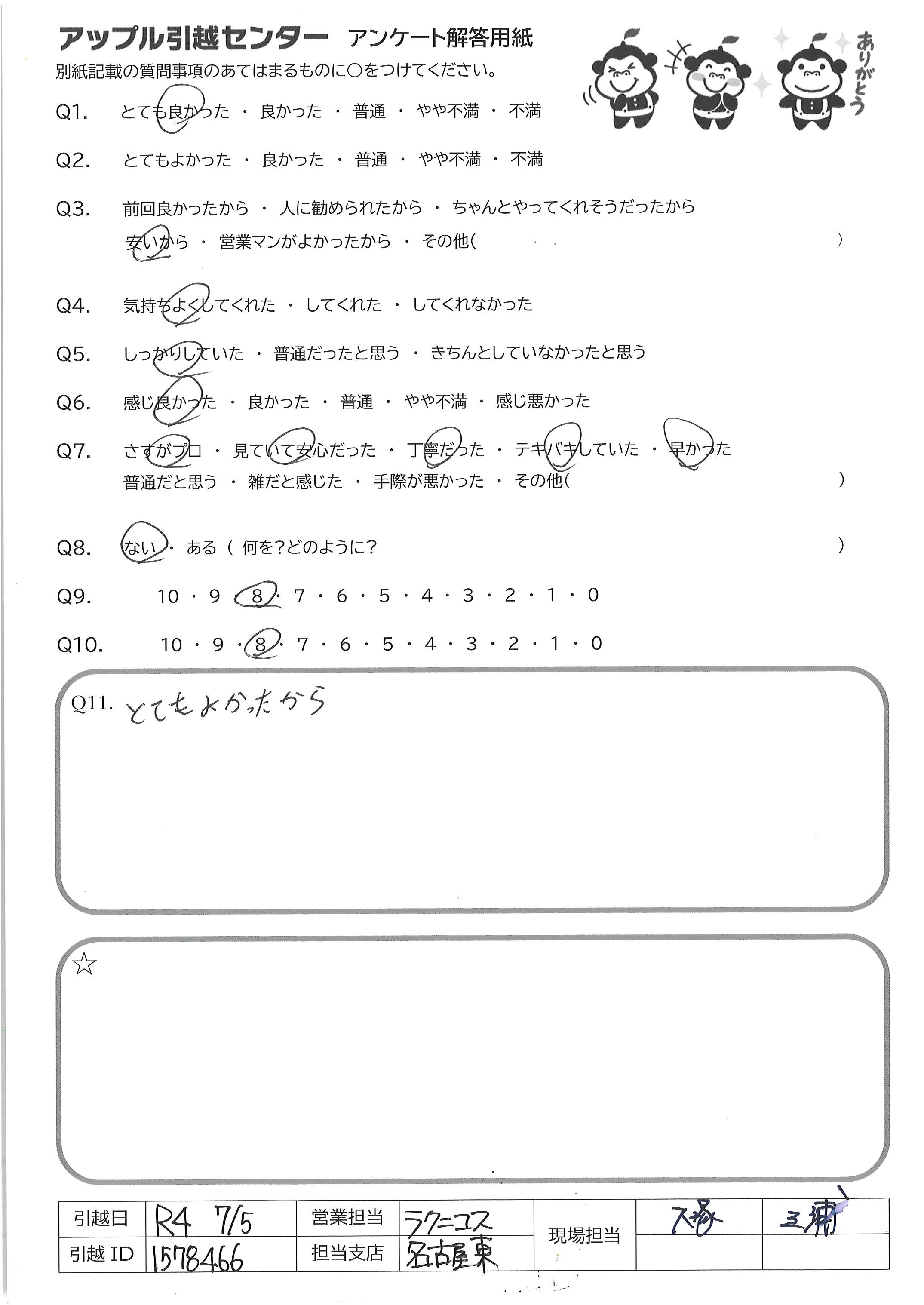 アップル引越センターでは、面映いお褒めの言葉も、胸に突き刺さるお叱りのコメントも、