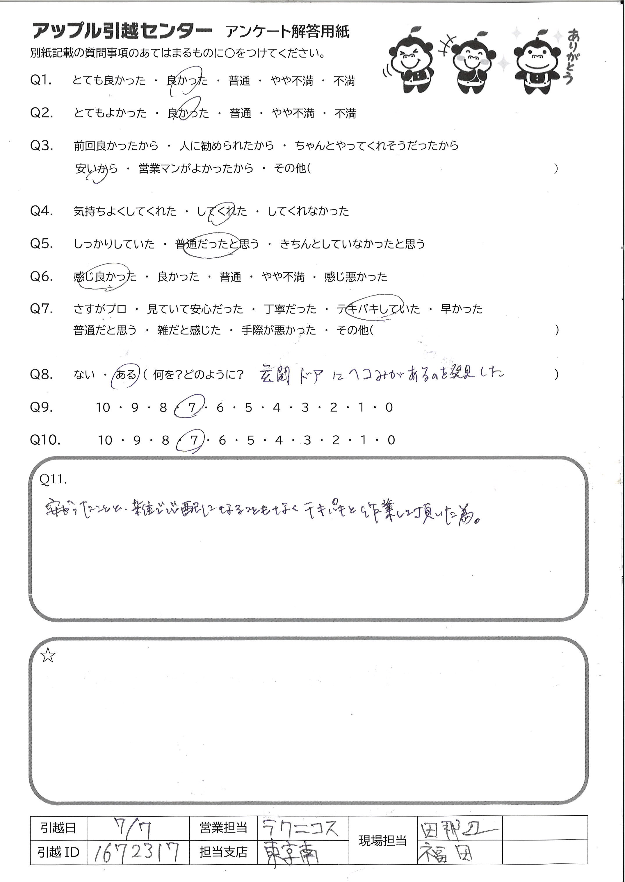 A.・とても対応が良かったから ・安くで引越しが出来たから